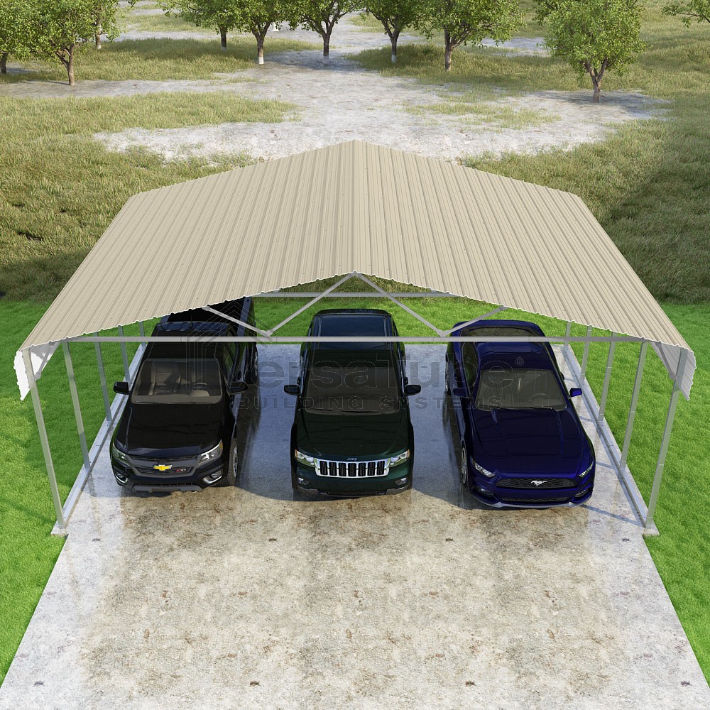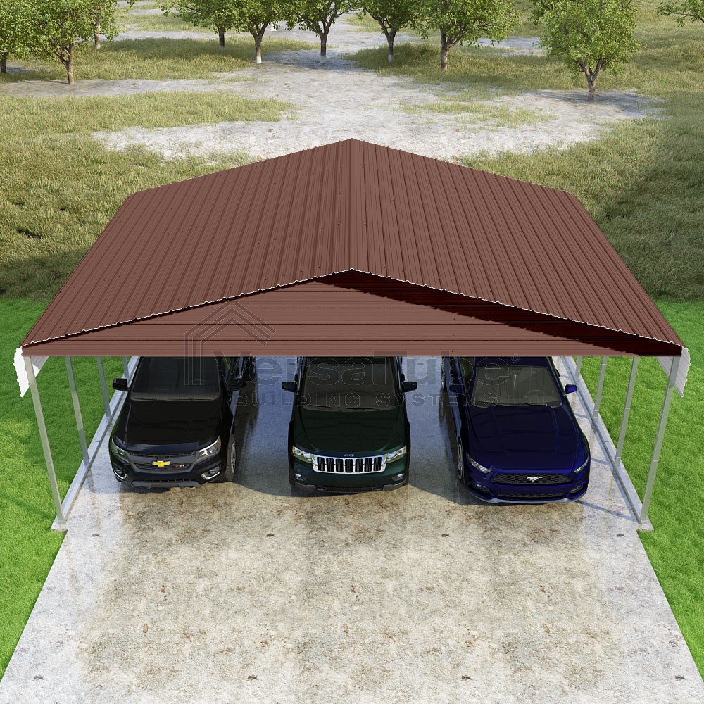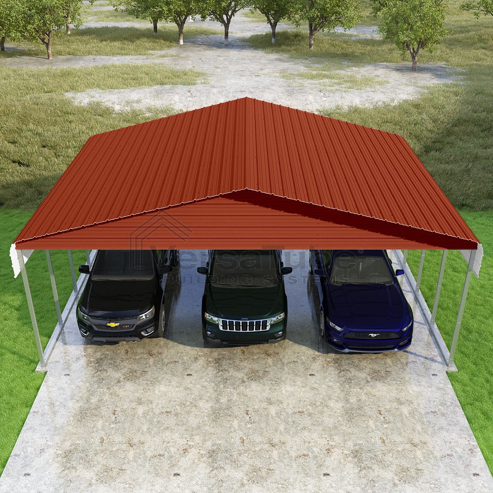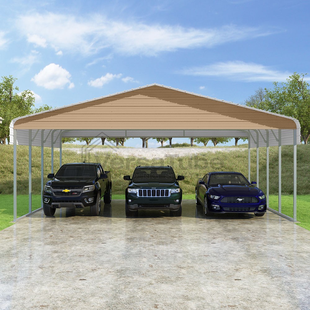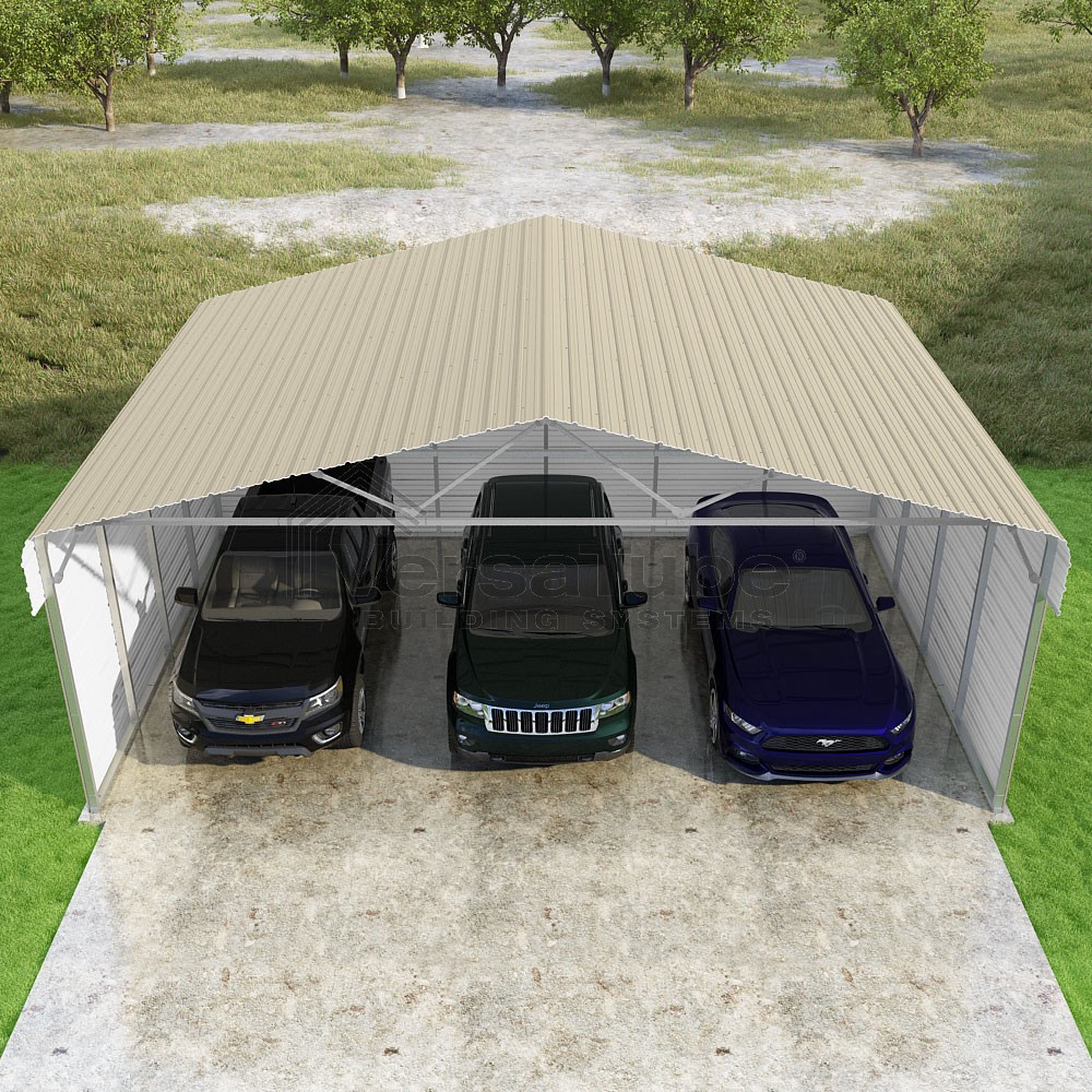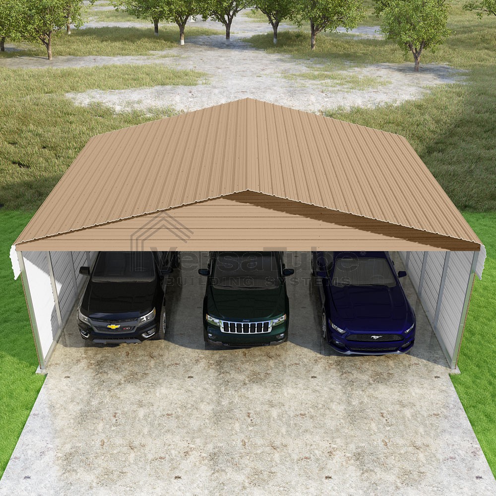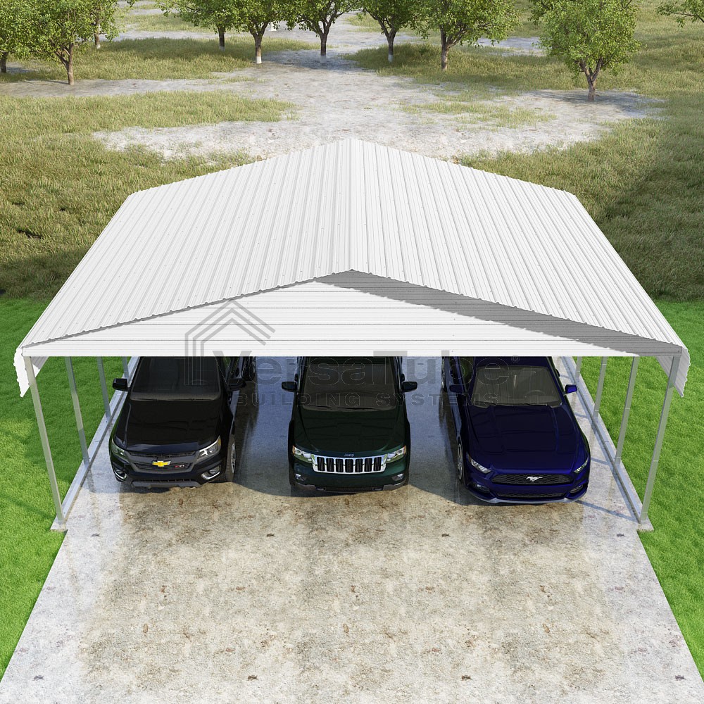 Classic Series DIY carport kit features horizontal application of sheet metal panels with the extra protection of rounded eaves.