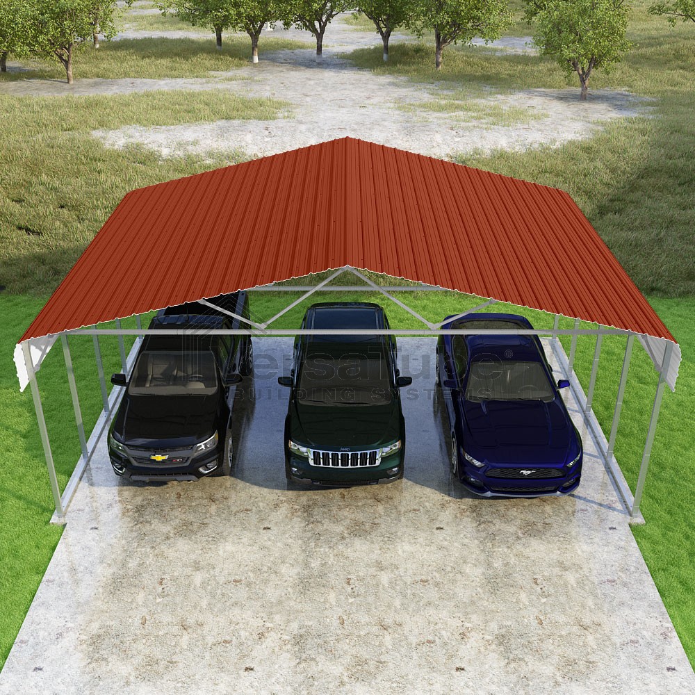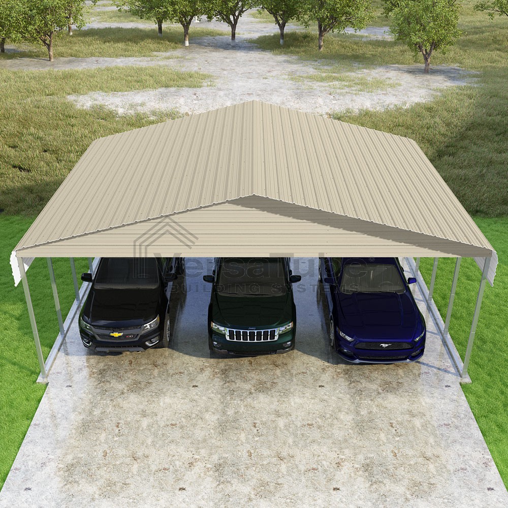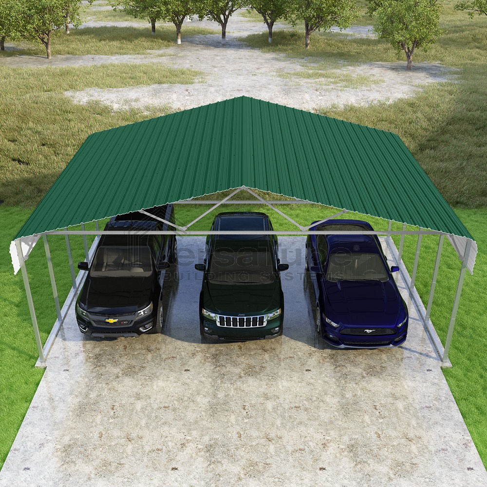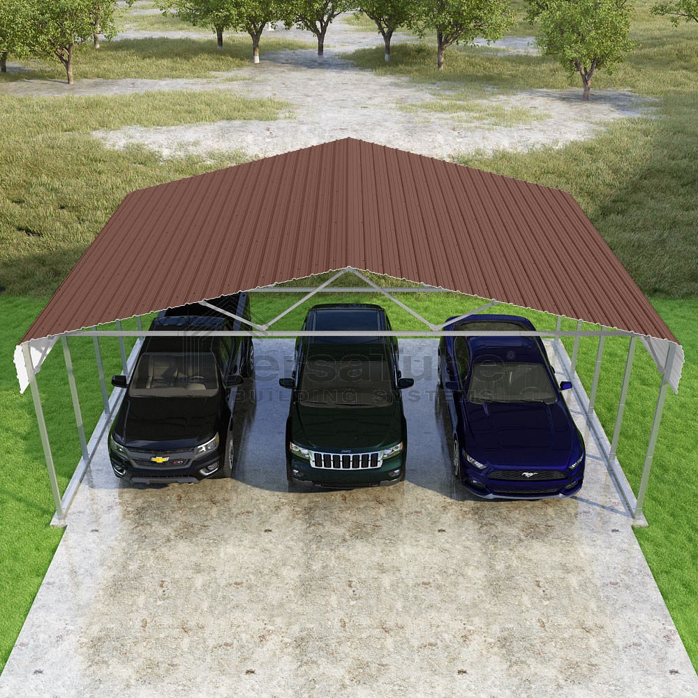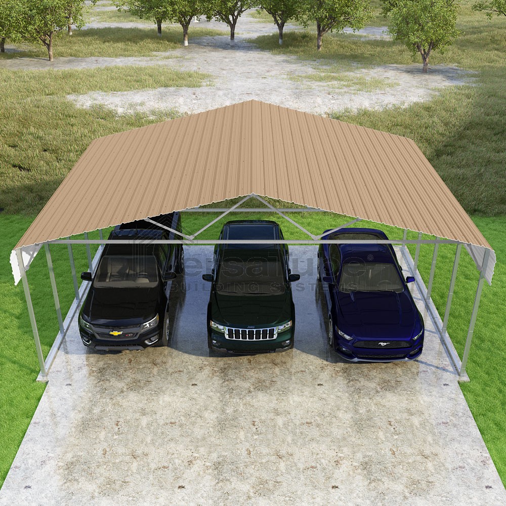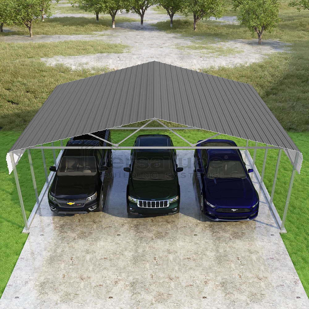 Classic Series DIY carport kit features horizontal application of sheet metal panels with the extra protection of rounded eaves.