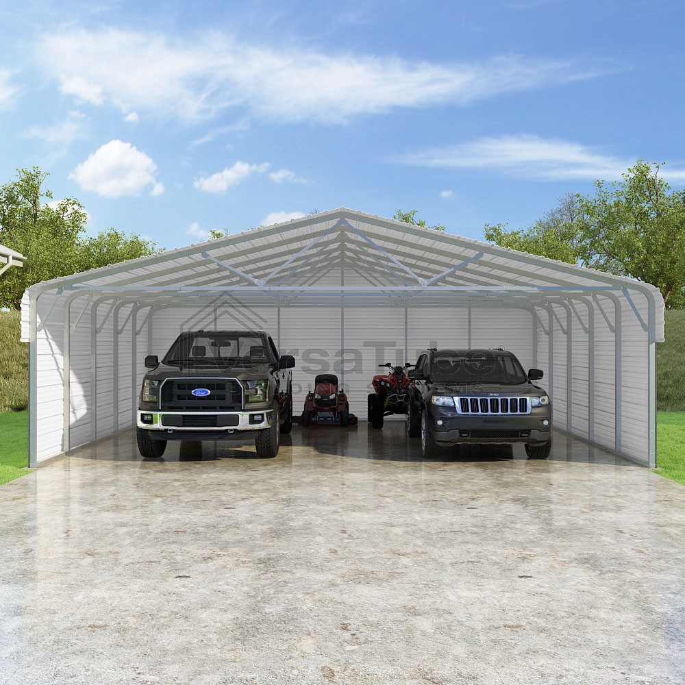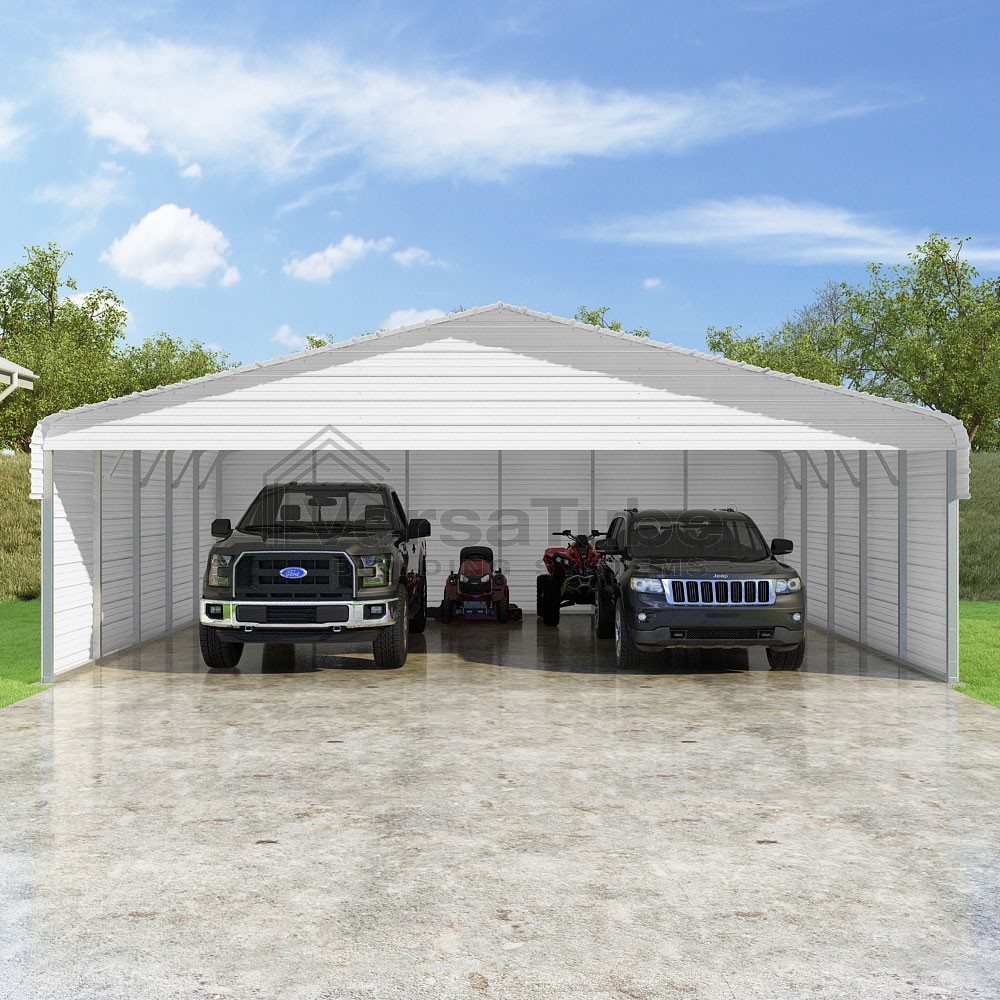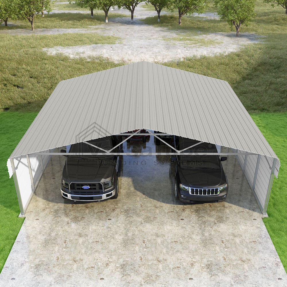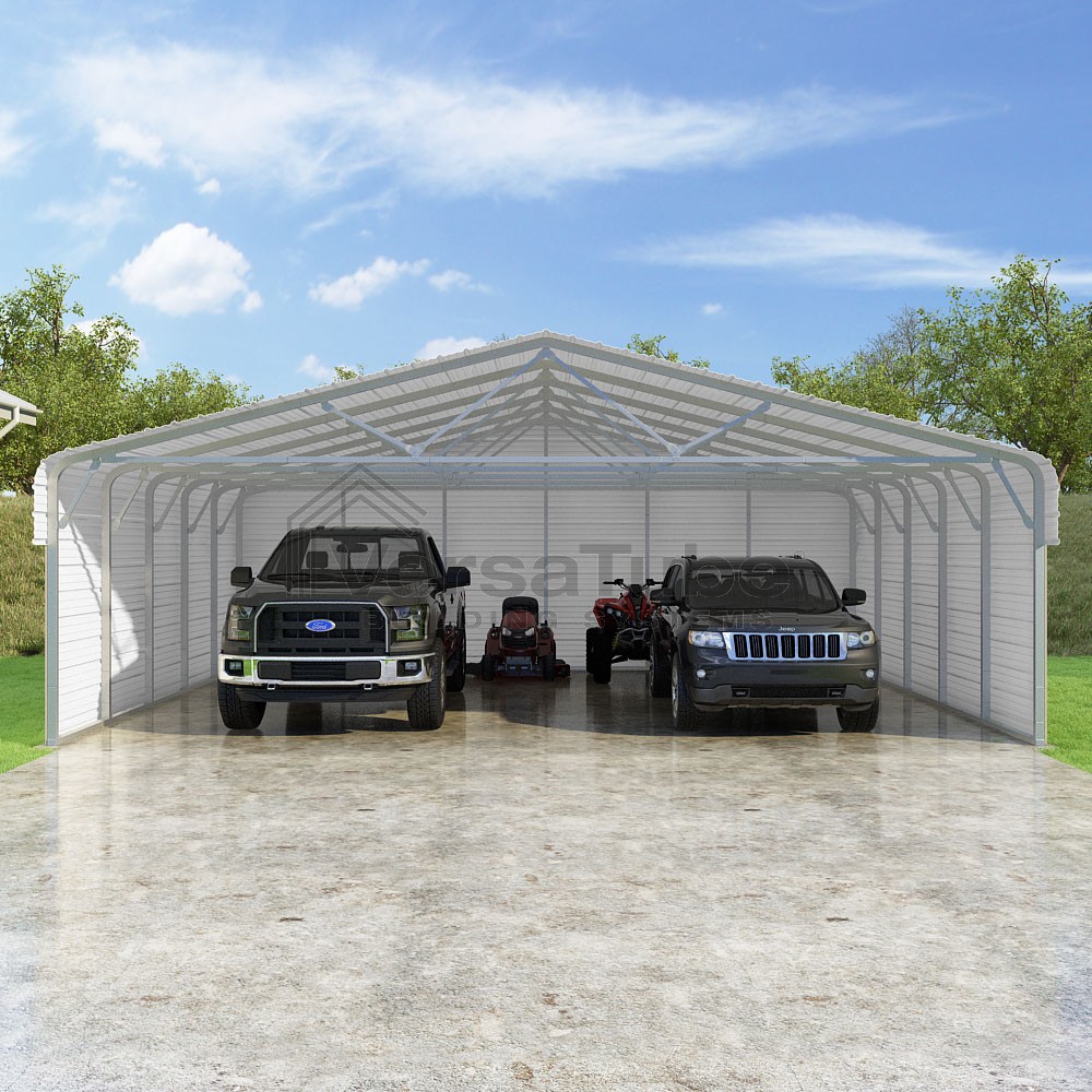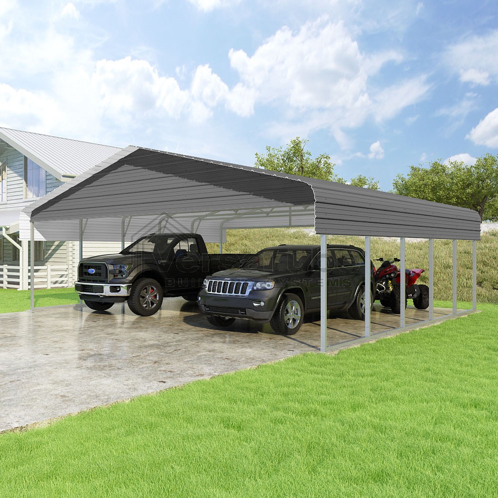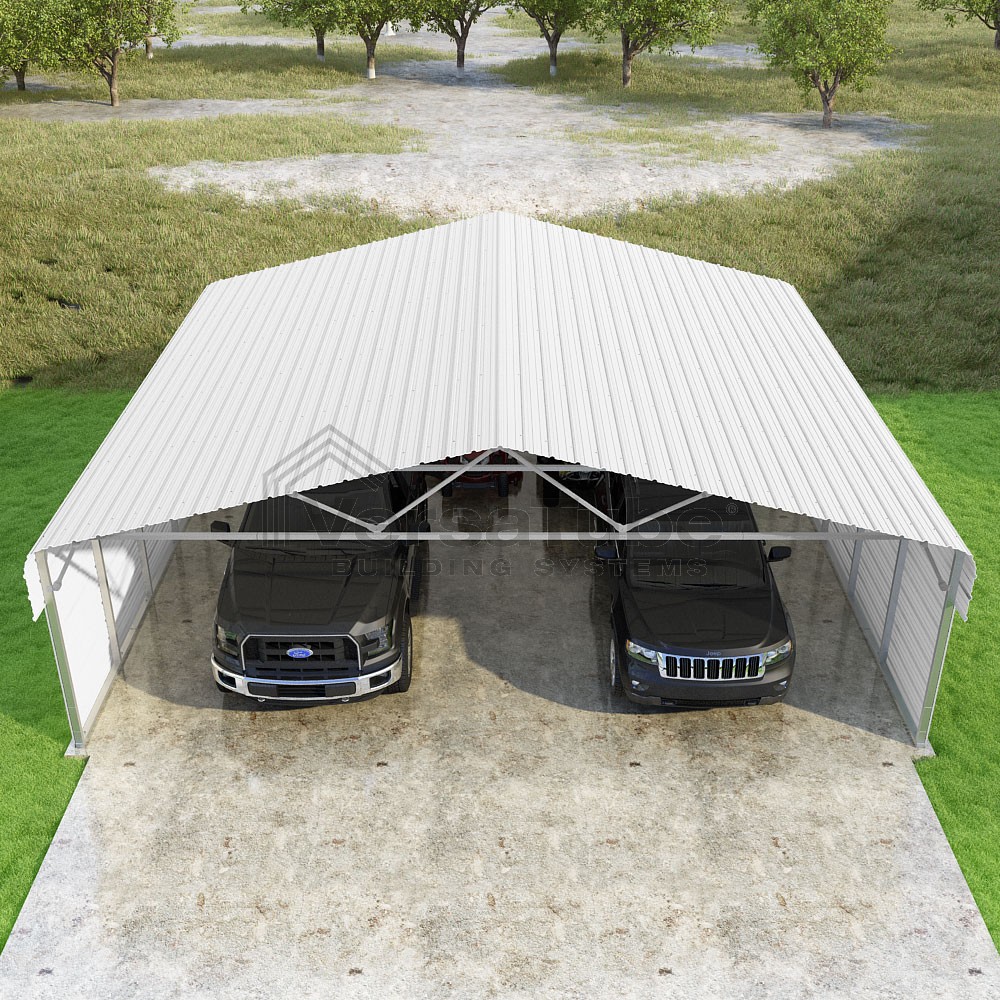 Classic Series DIY carport kit features horizontal application of sheet metal panels with the extra protection of rounded eaves.