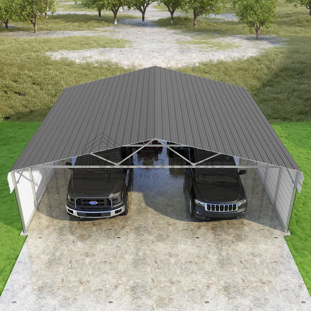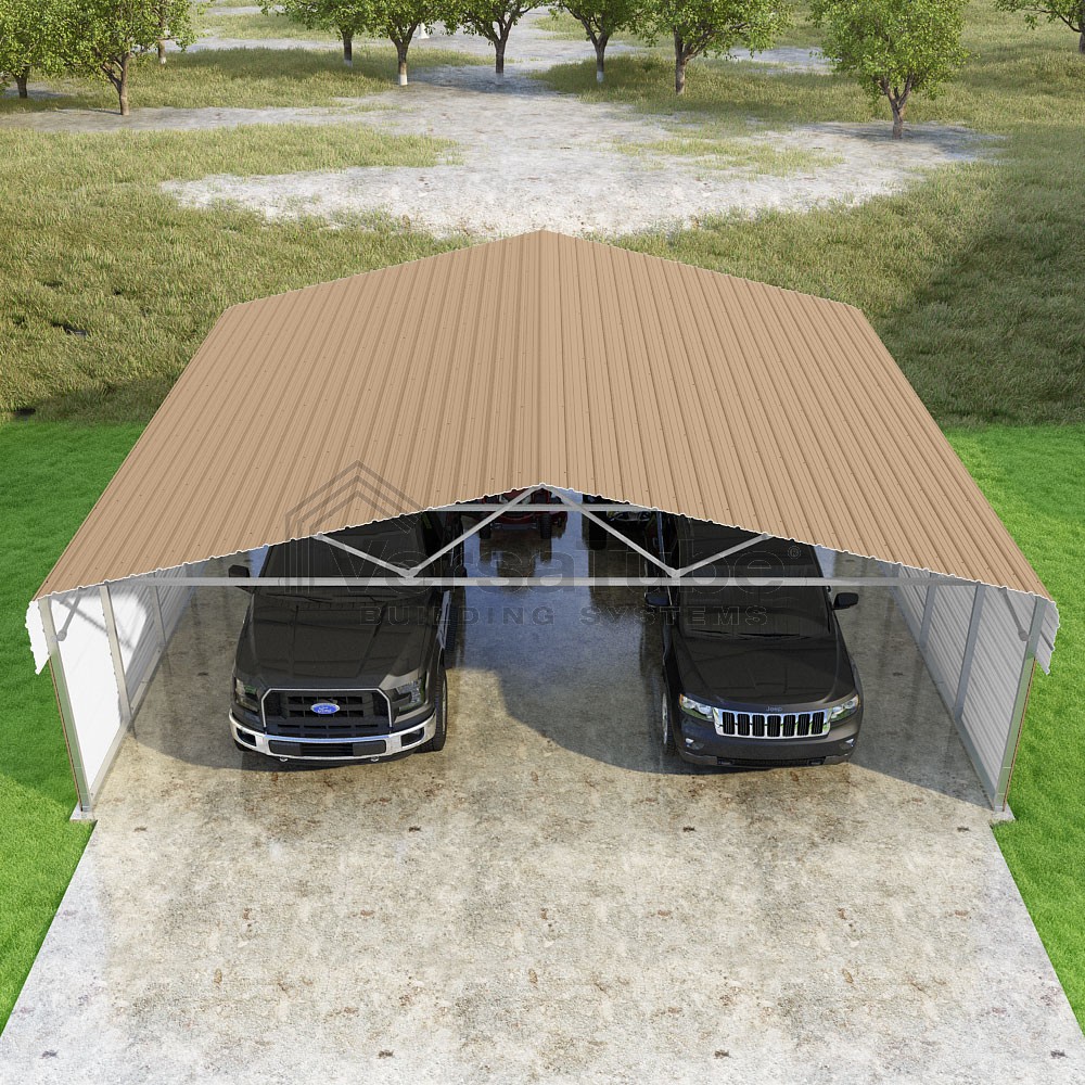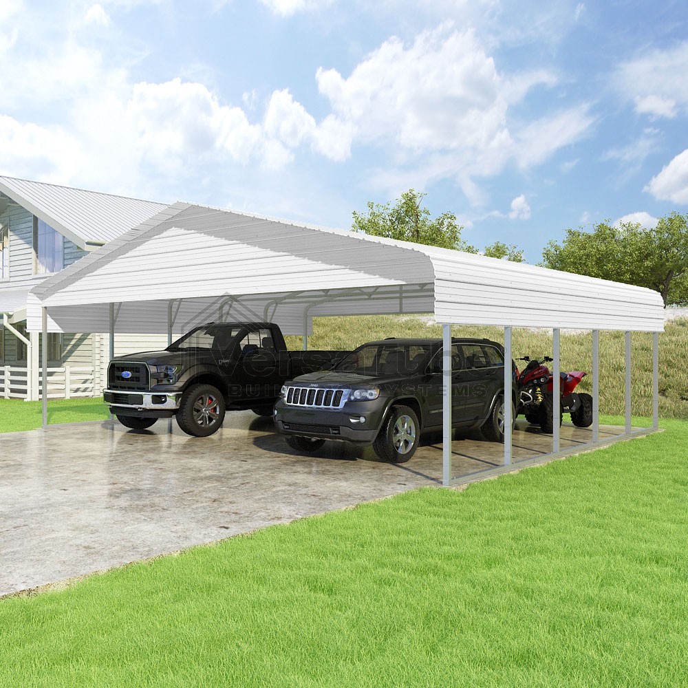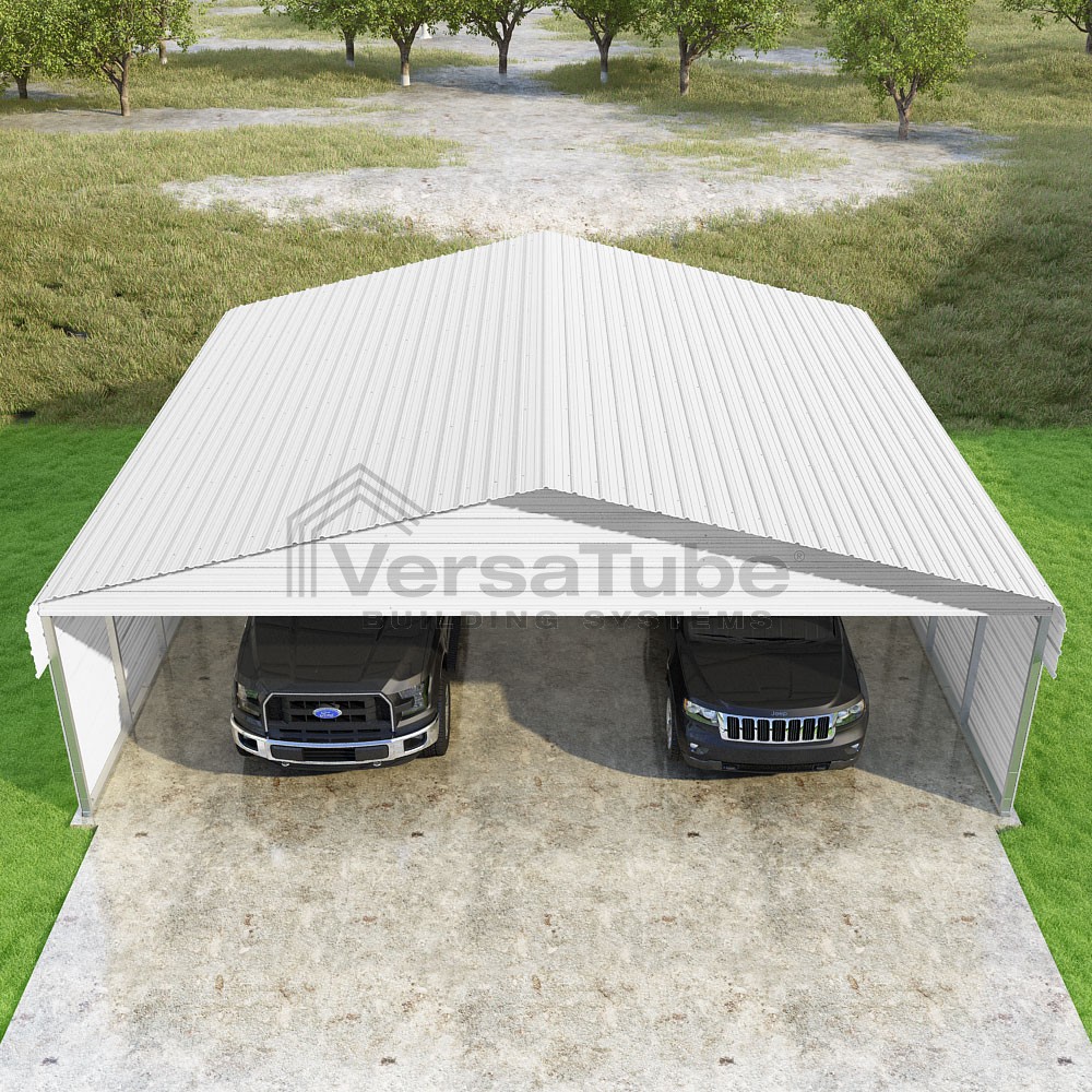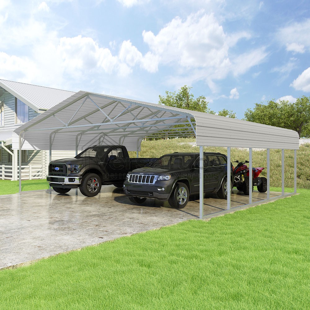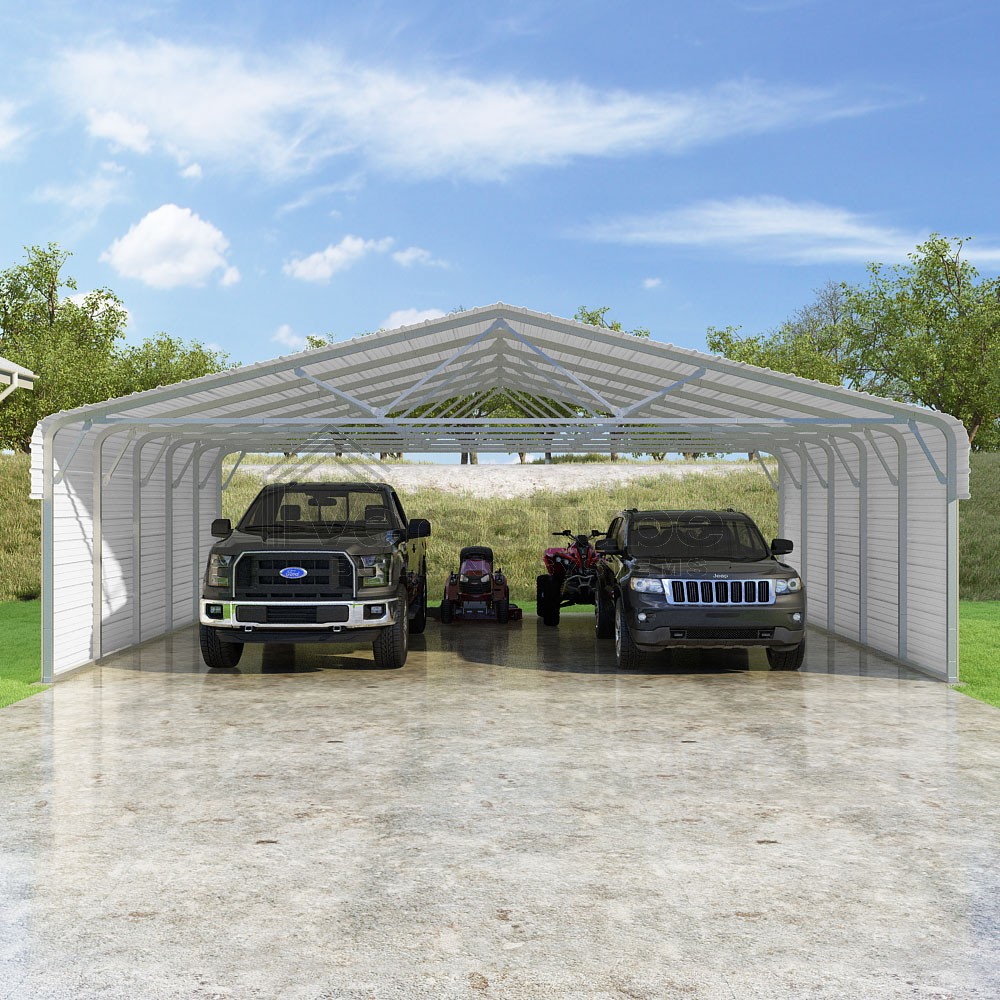 Classic Series DIY carport kit features horizontal application of sheet metal panels with the extra protection of rounded eaves.