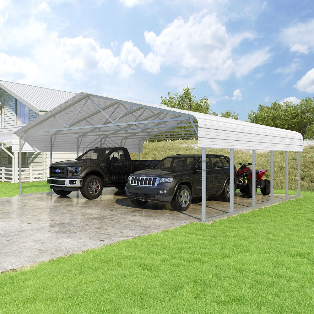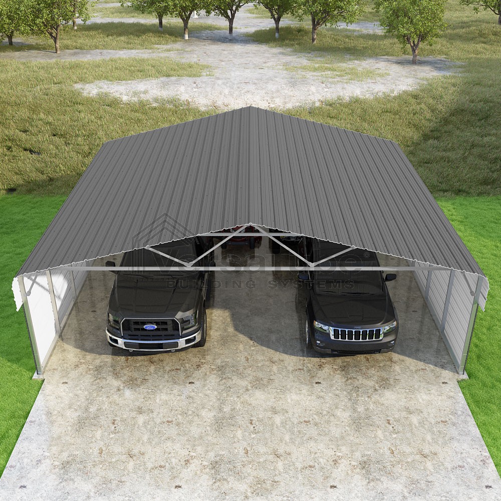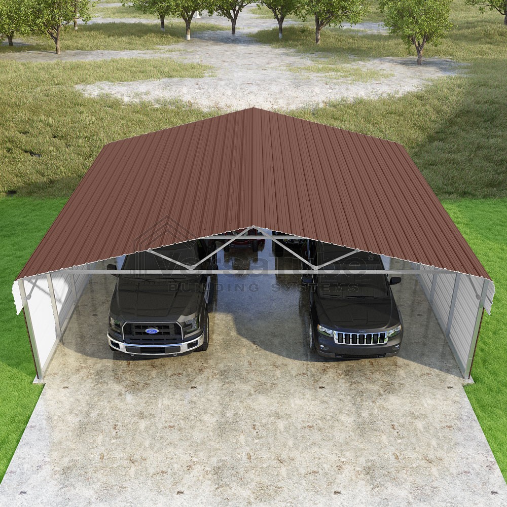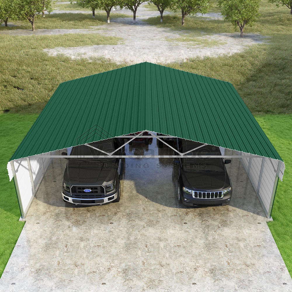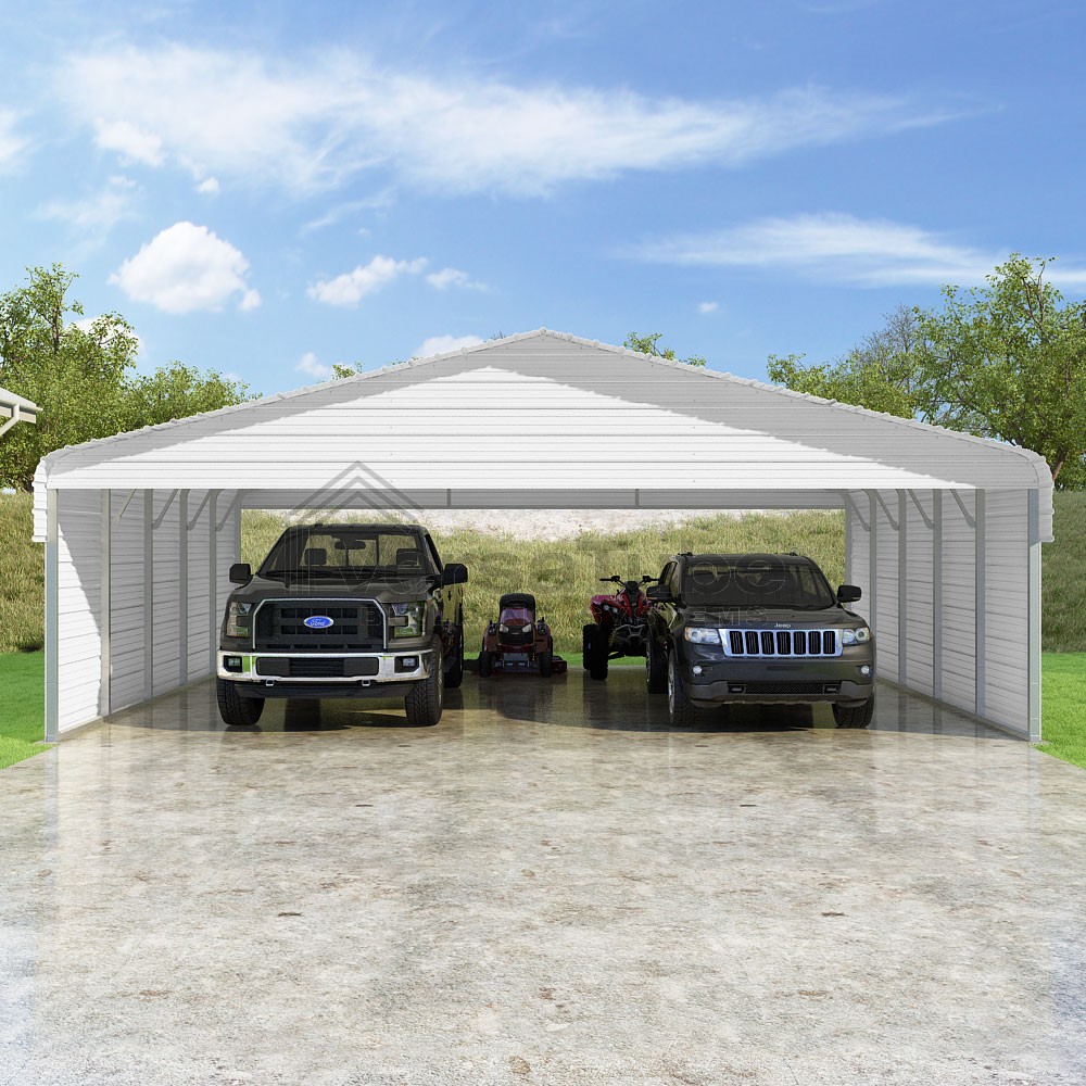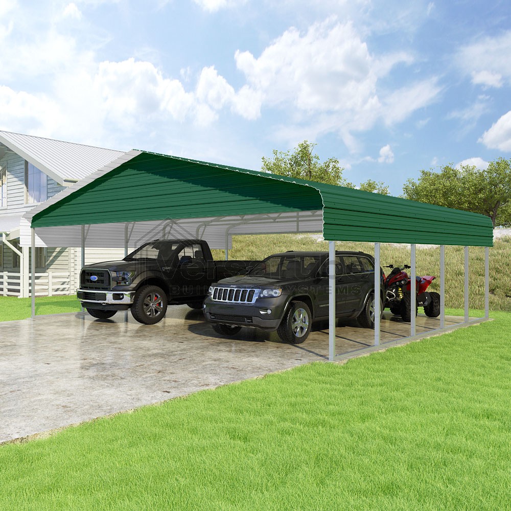 Classic Series DIY carport kit features horizontal application of sheet metal panels with the extra protection of rounded eaves.