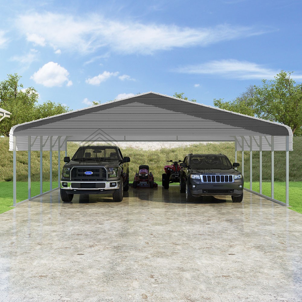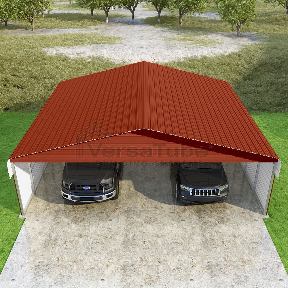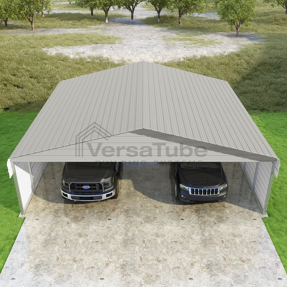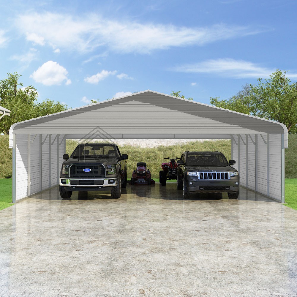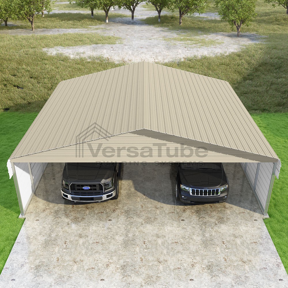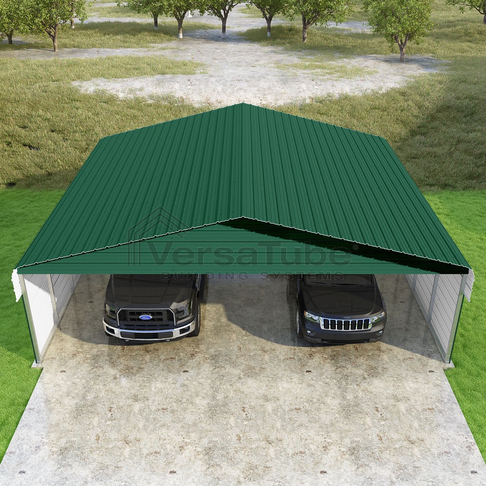Classic Series DIY carport kit features horizontal application of sheet metal panels with the extra protection of rounded eaves.