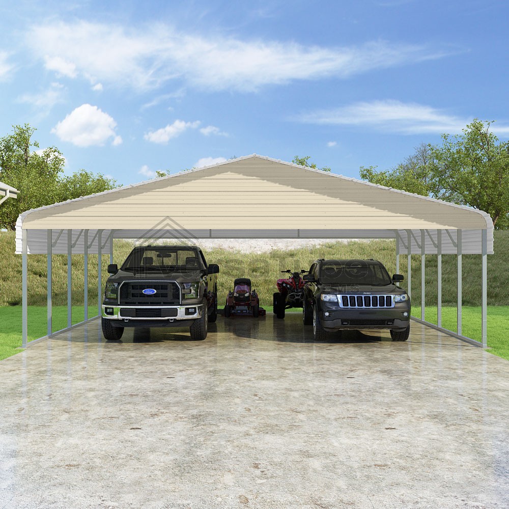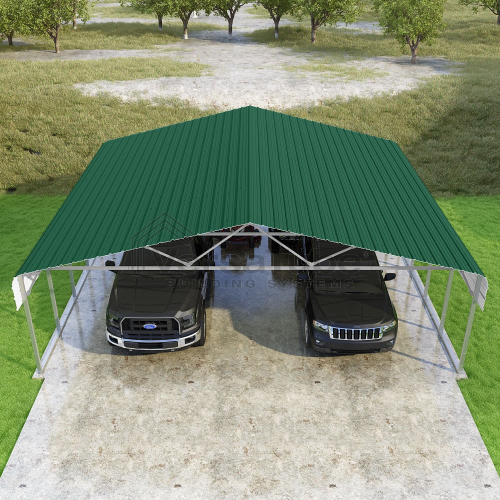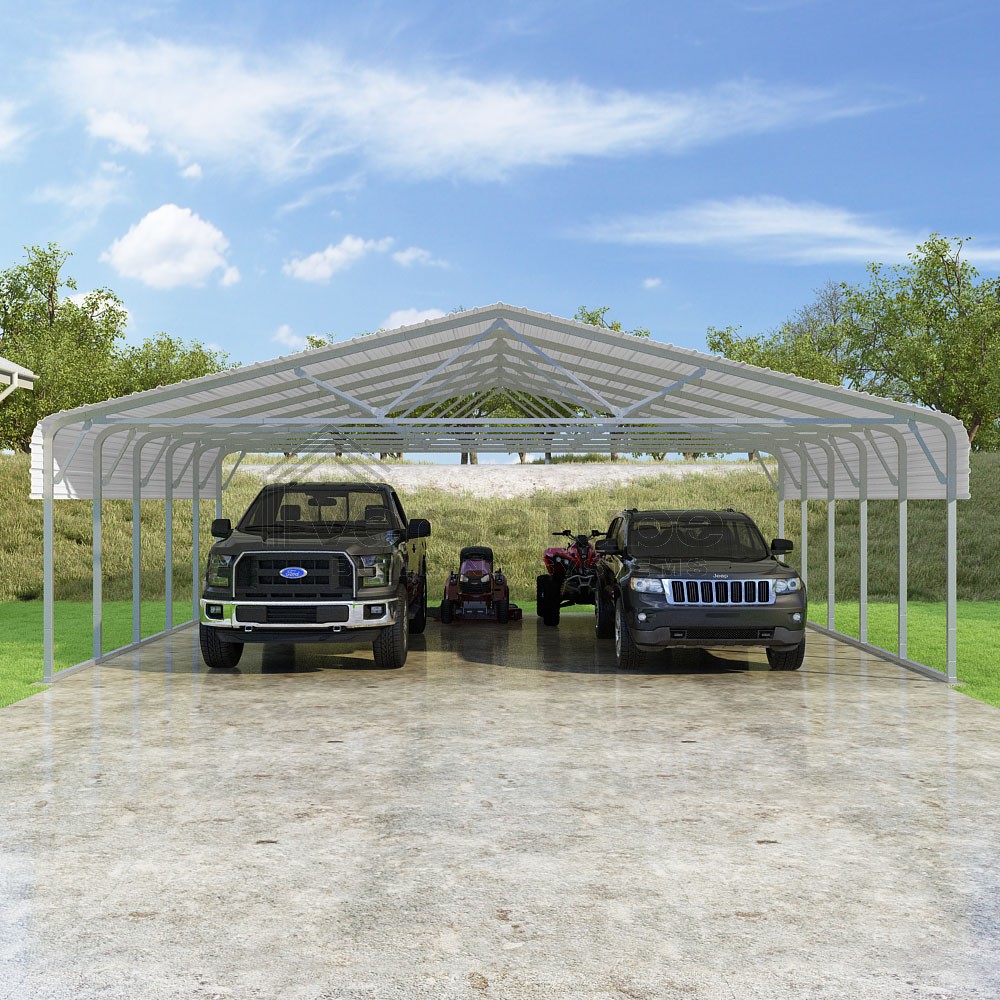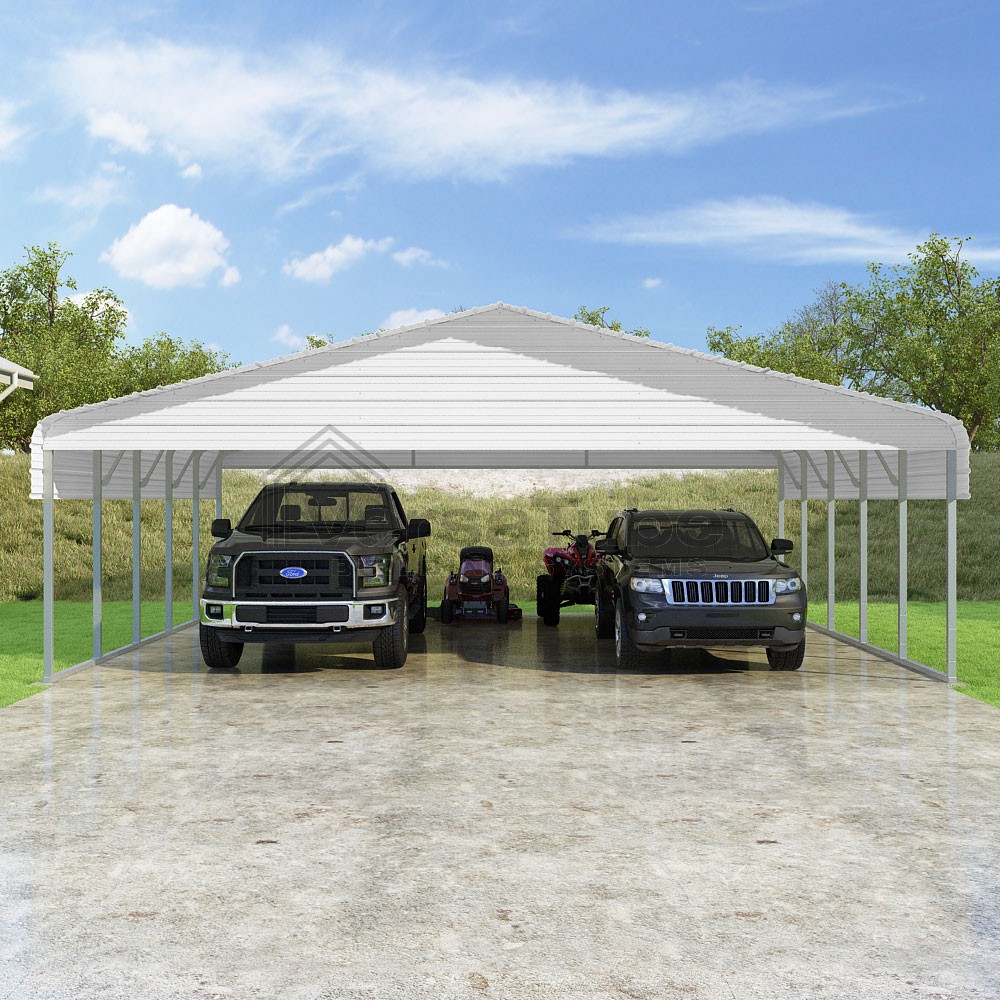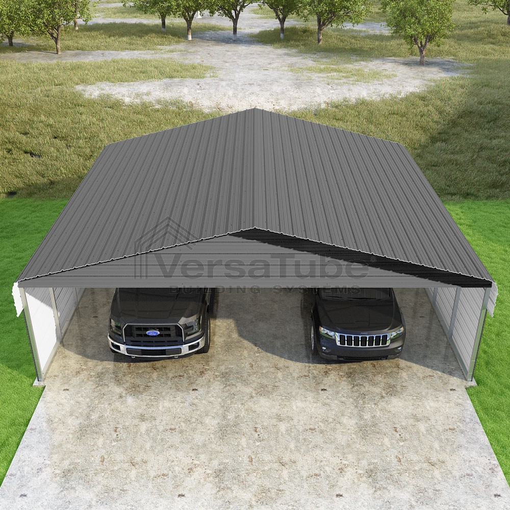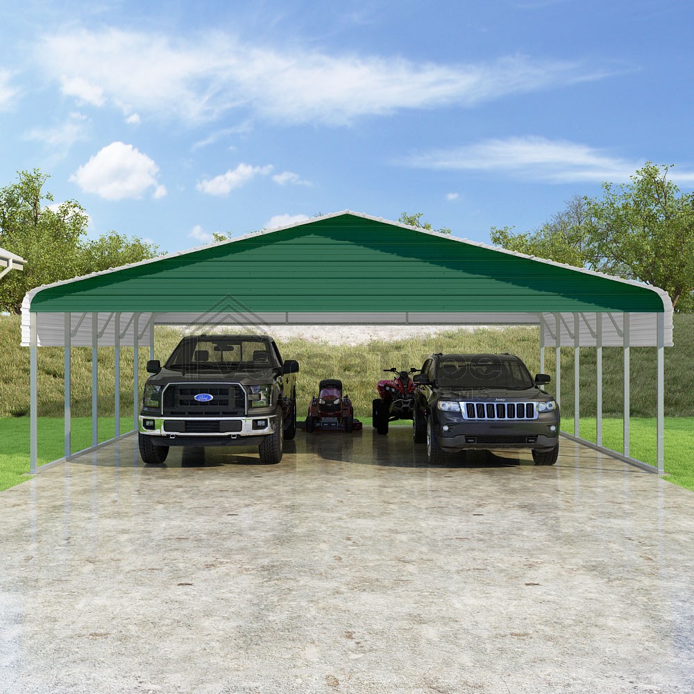Classic Series DIY carport kit features horizontal application of sheet metal panels with the extra protection of rounded eaves.