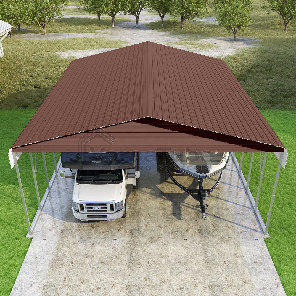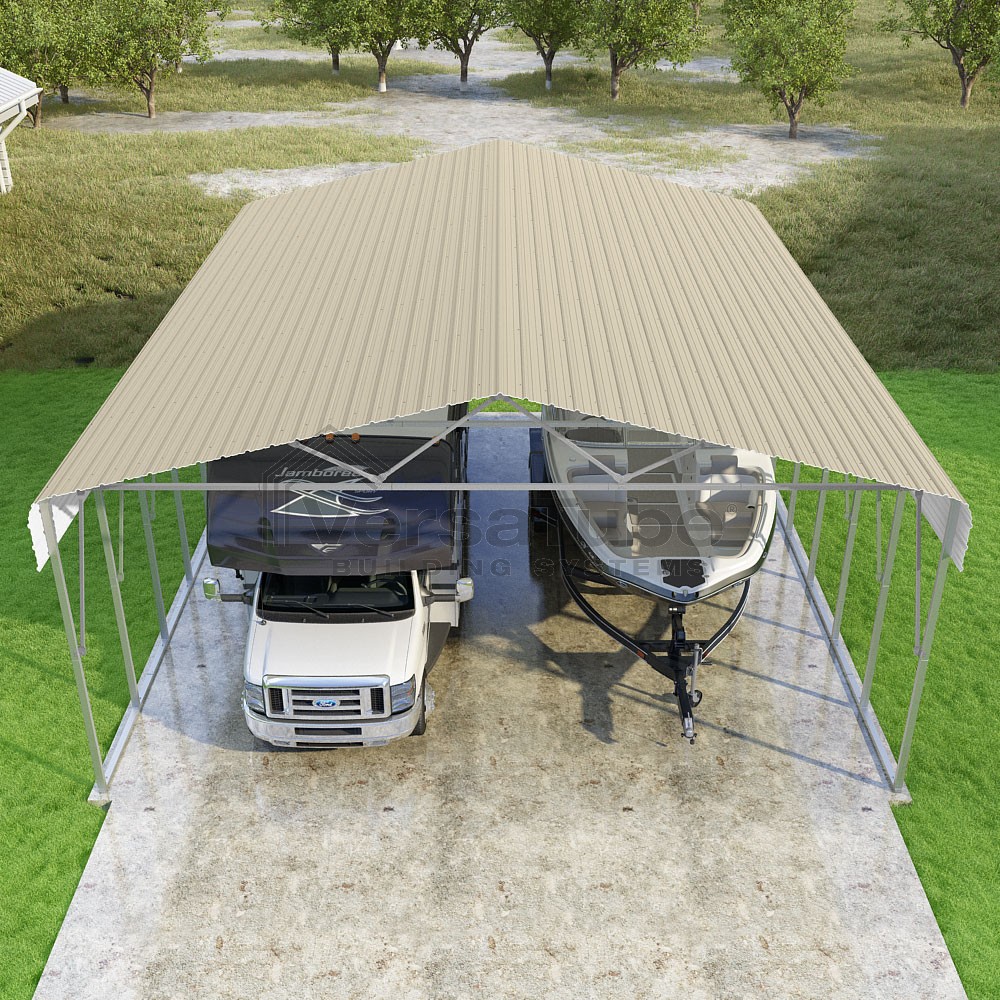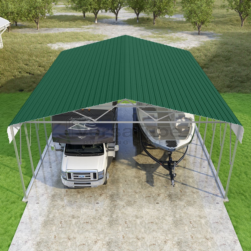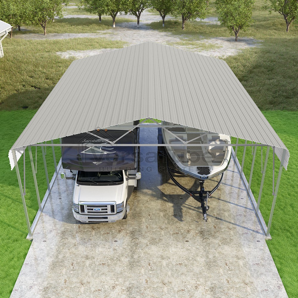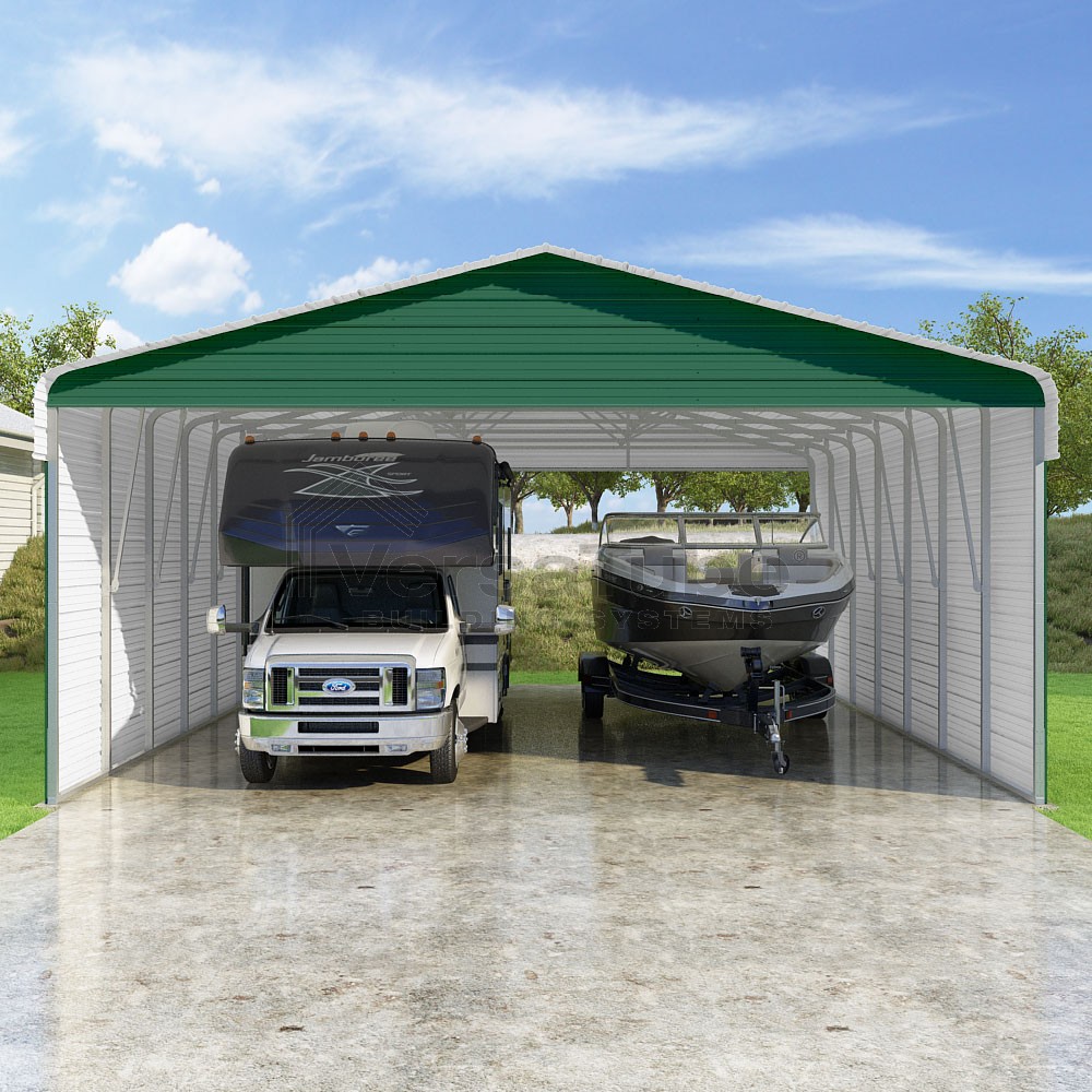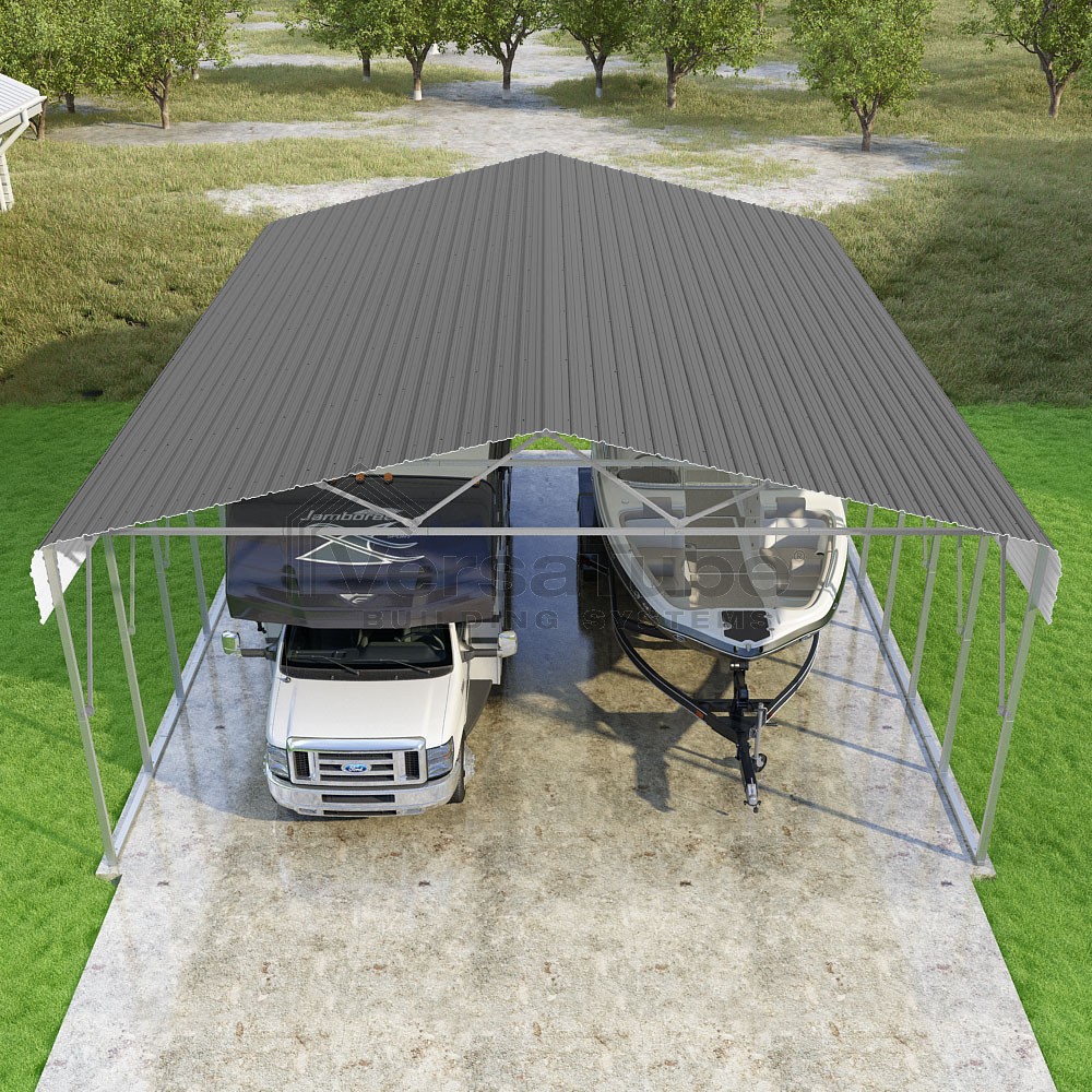 Classic Series DIY carport kit features horizontal application of sheet metal panels with the extra protection of rounded eaves.