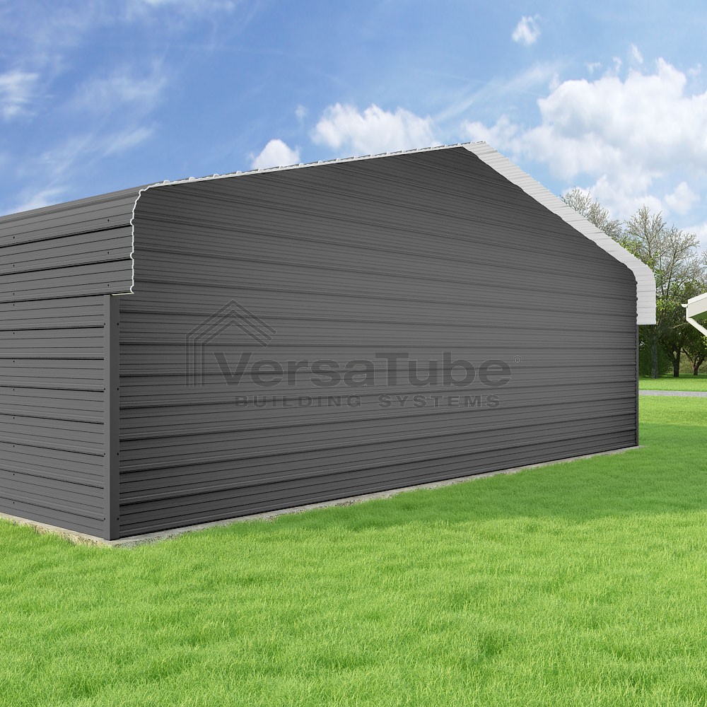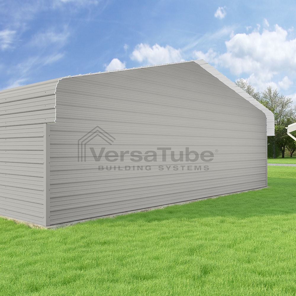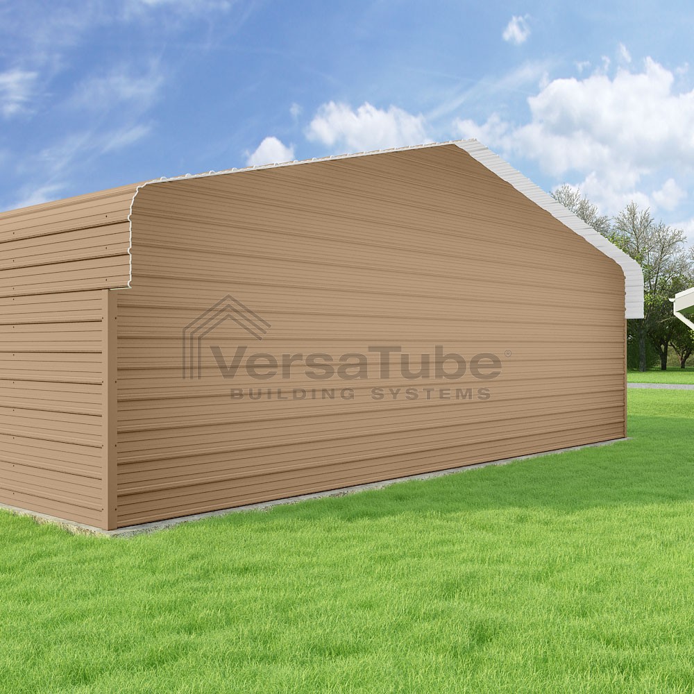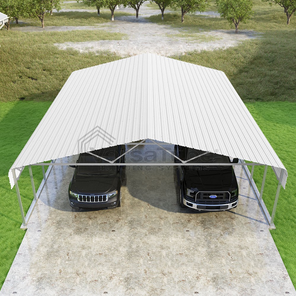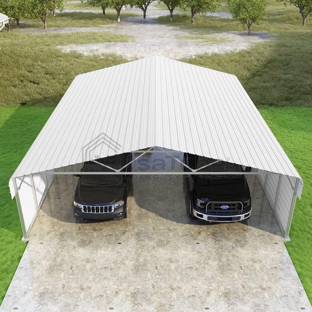 Classic Series DIY carport kit features horizontal application of sheet metal panels with the extra protection of rounded eaves.