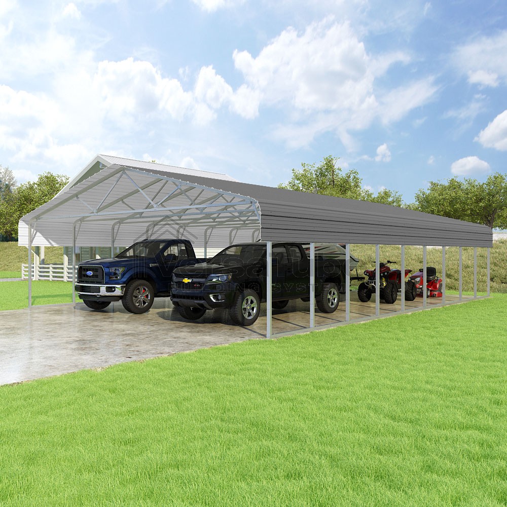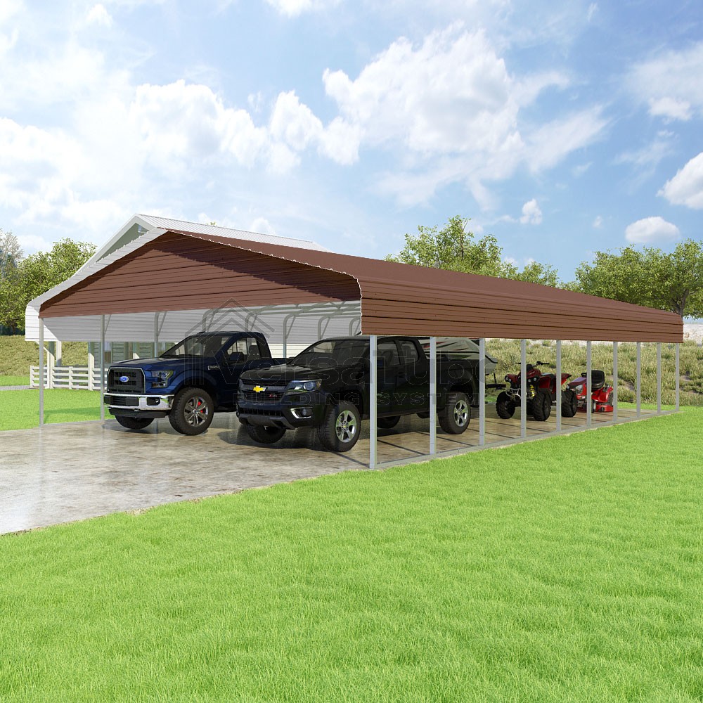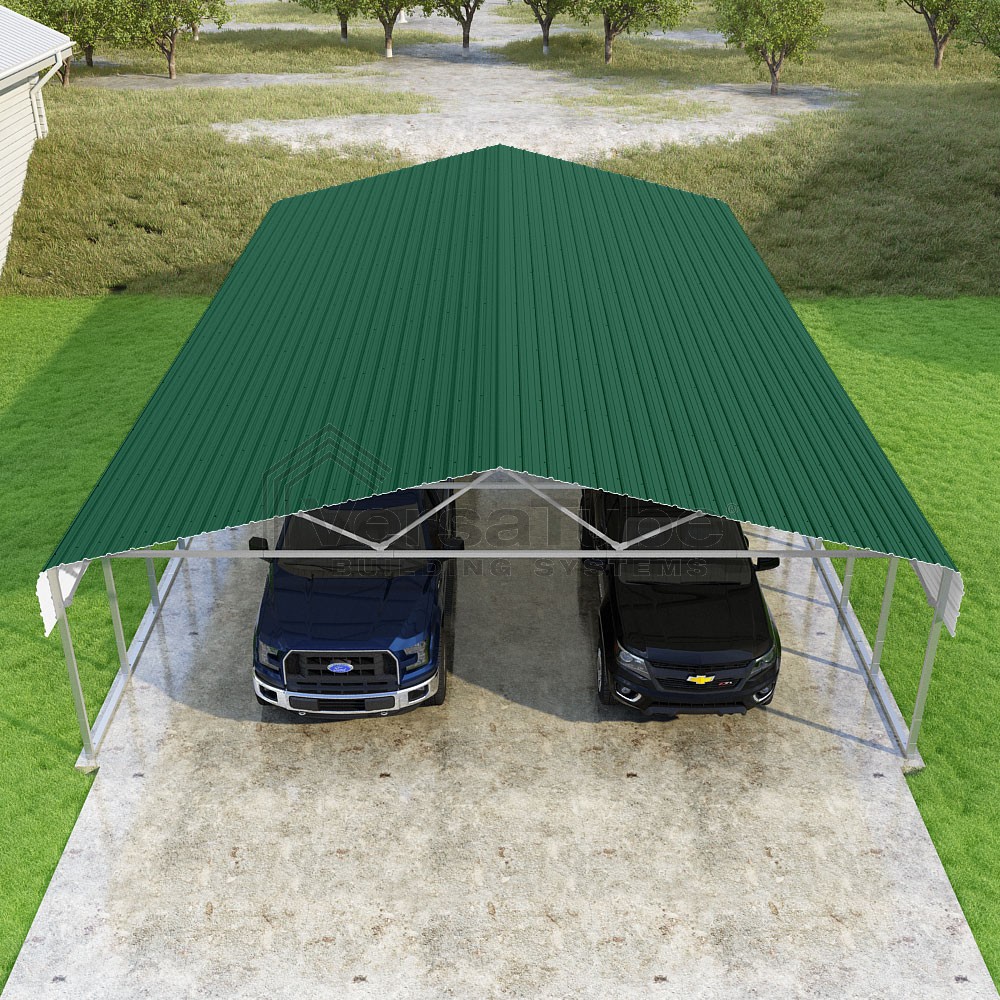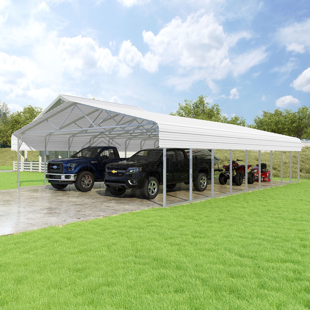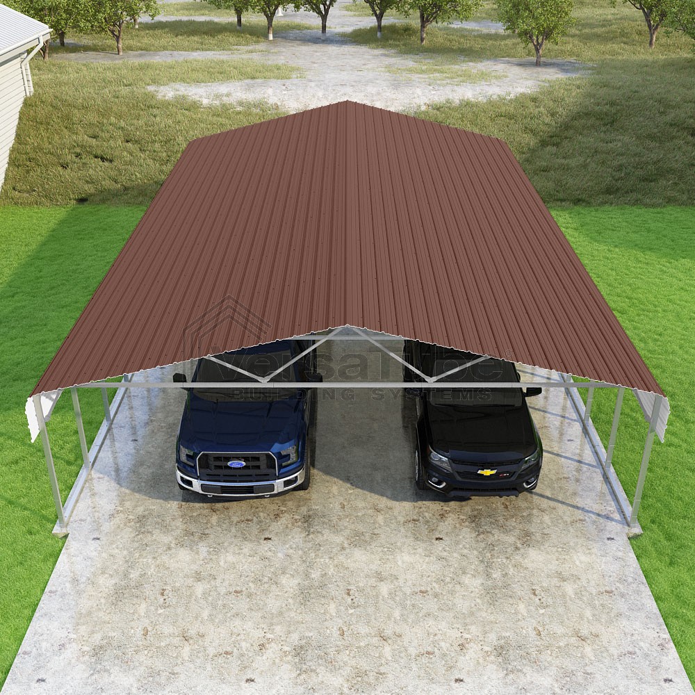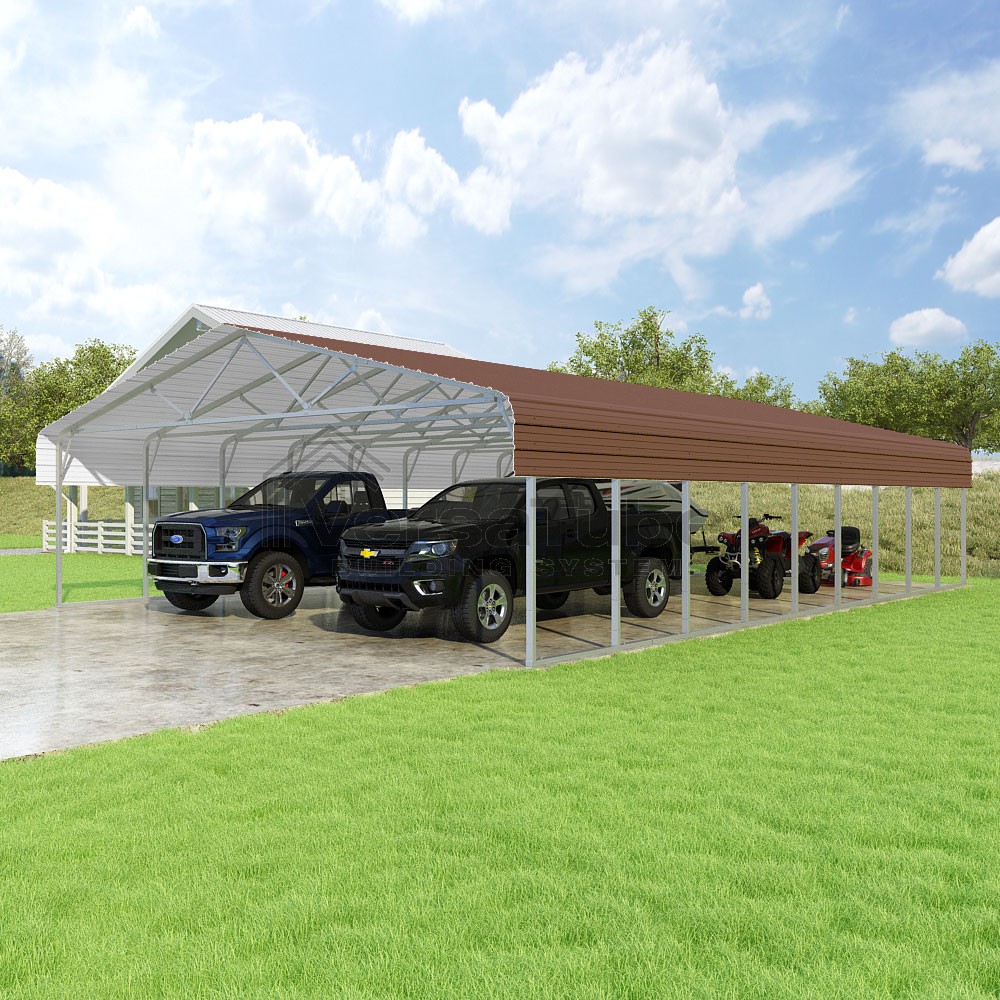 Classic Series DIY carport kit features horizontal application of sheet metal panels with the extra protection of rounded eaves.