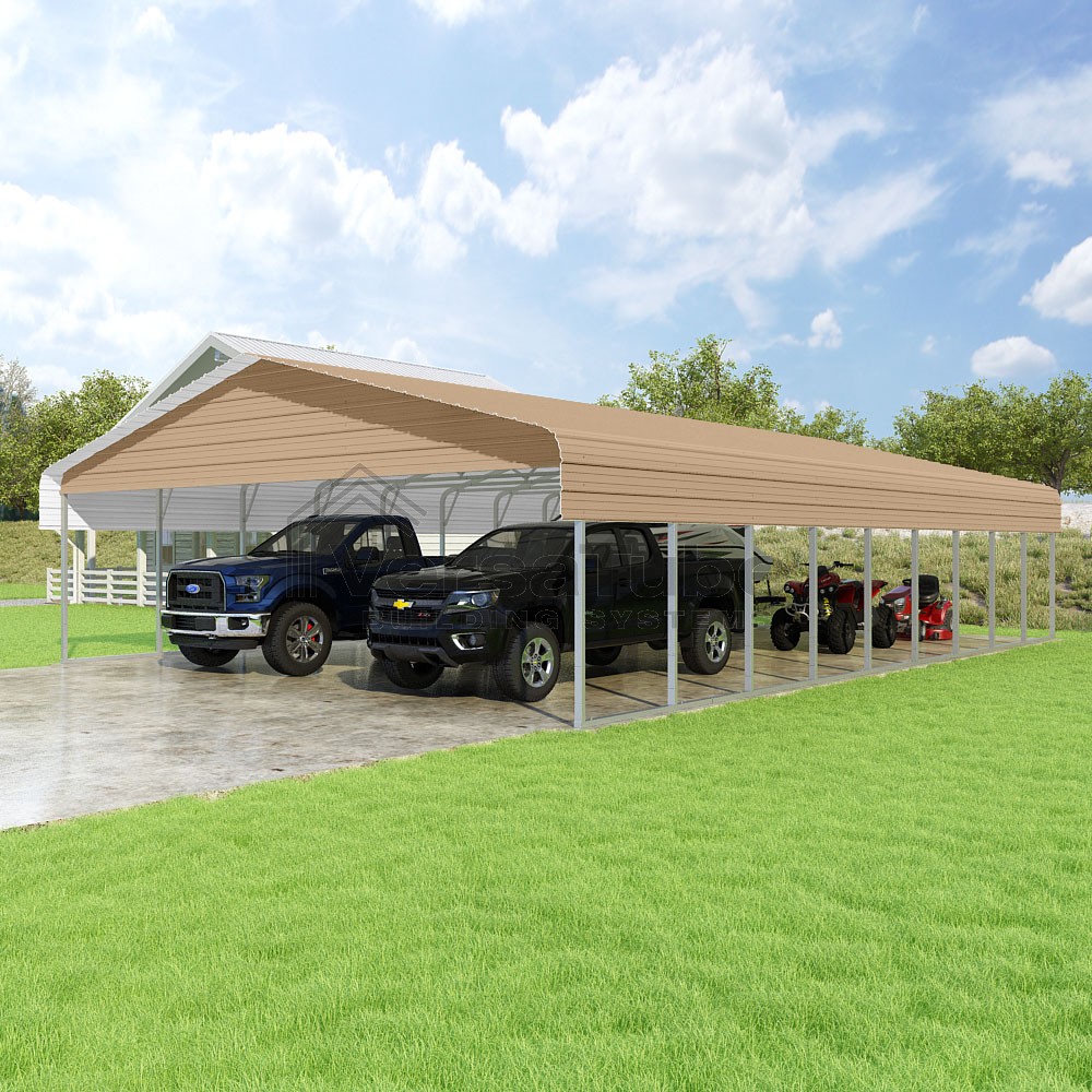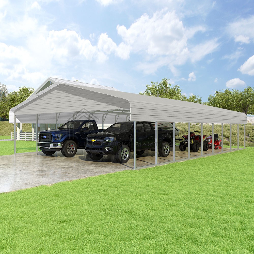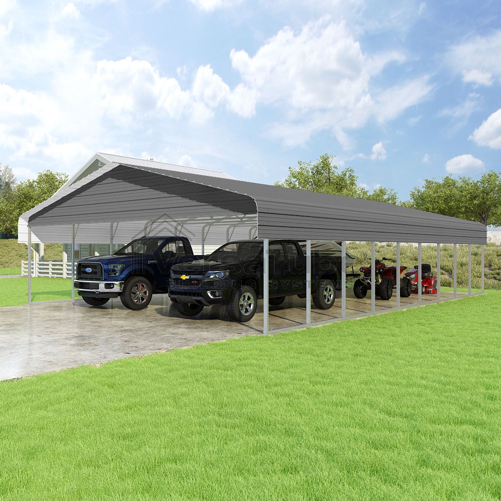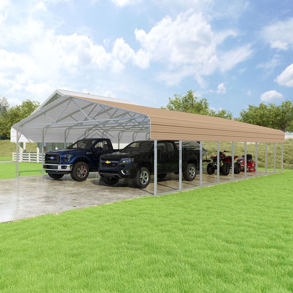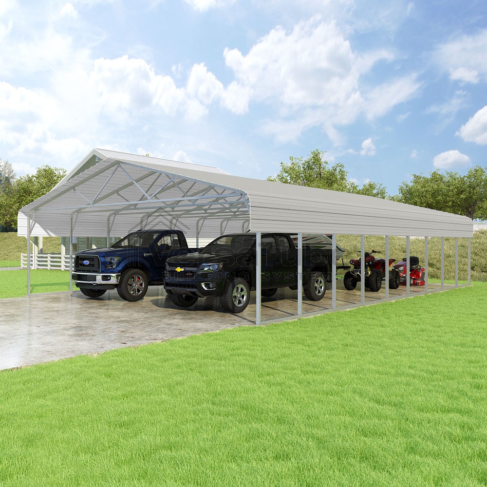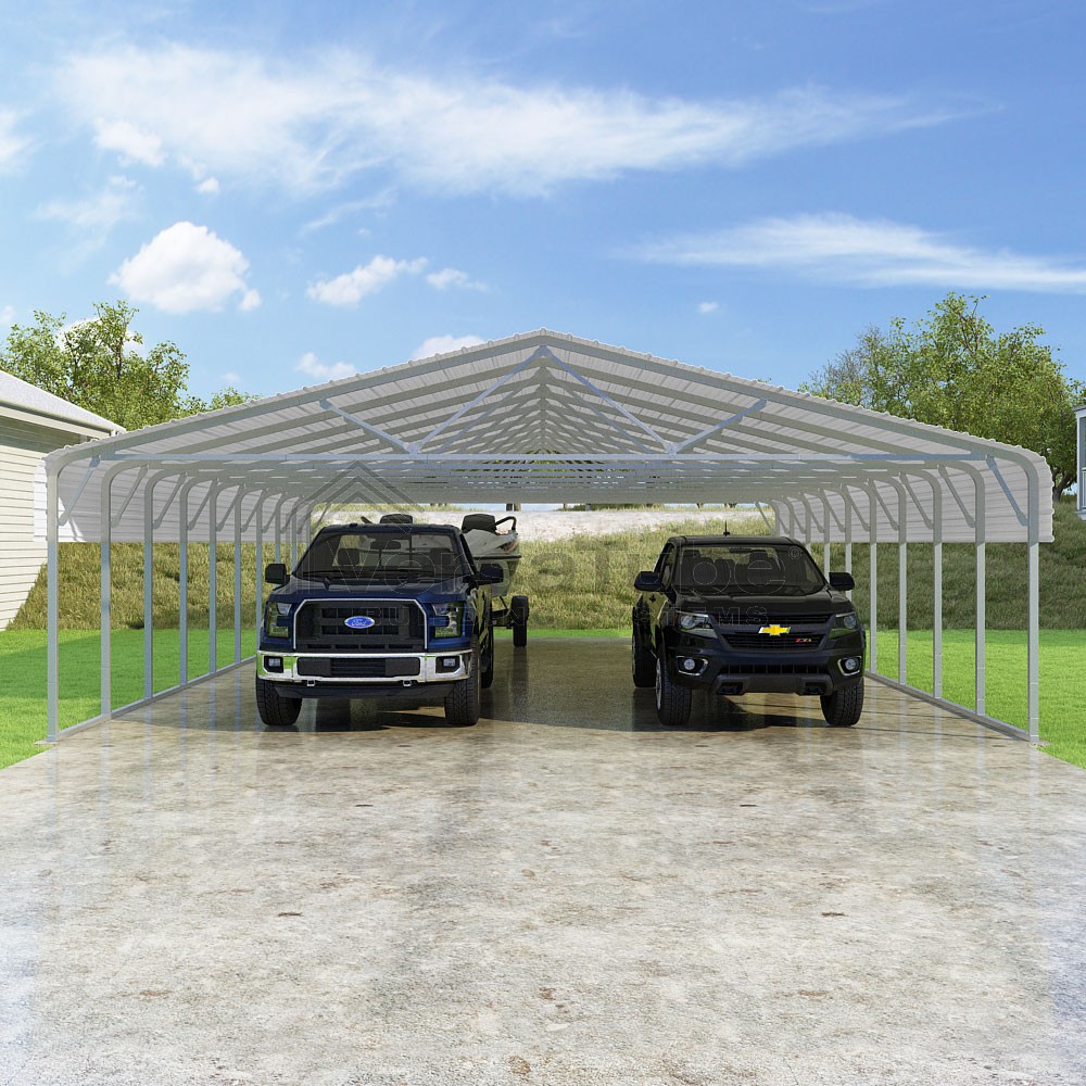 Classic Series DIY carport kit features horizontal application of sheet metal panels with the extra protection of rounded eaves.