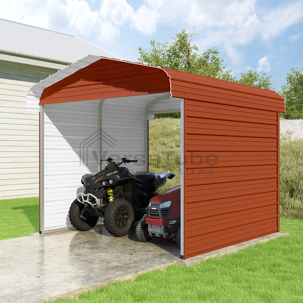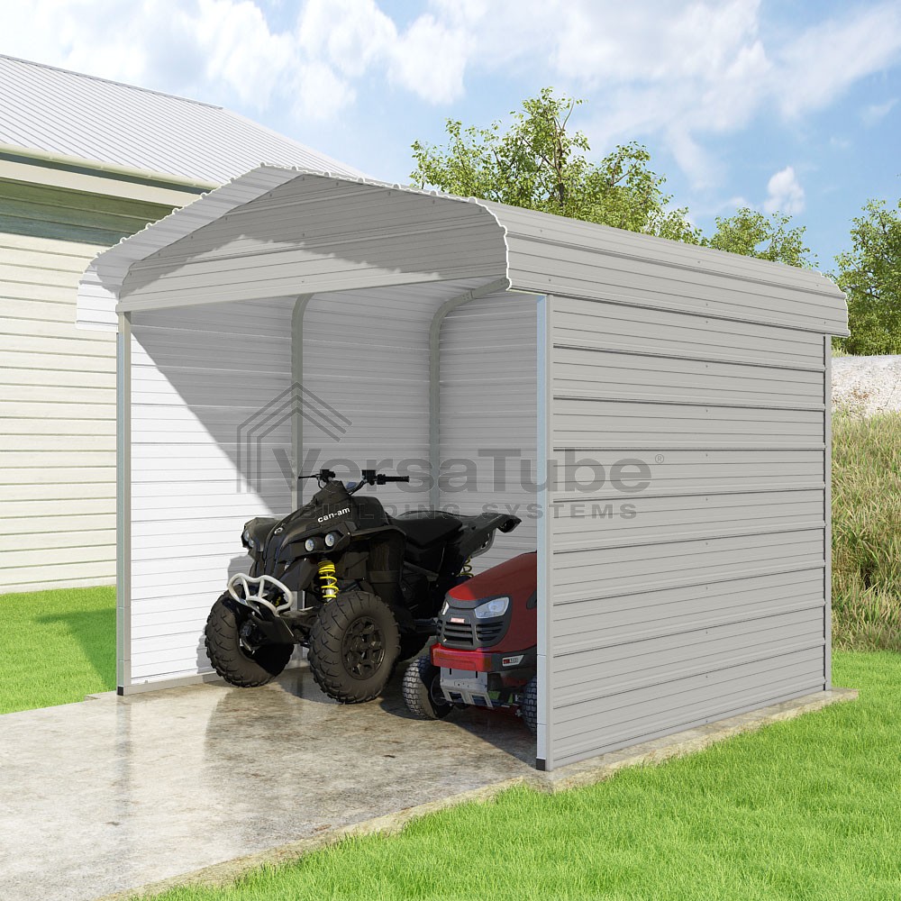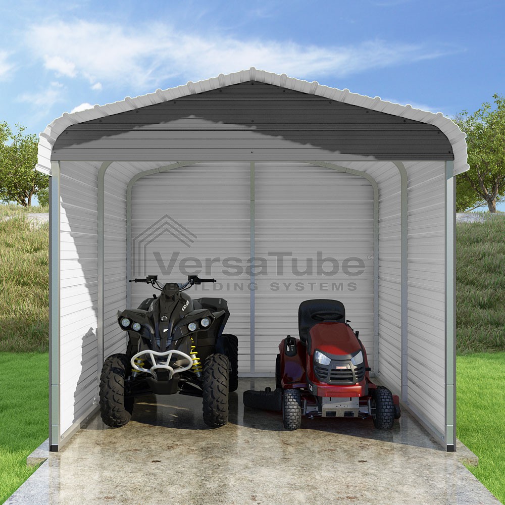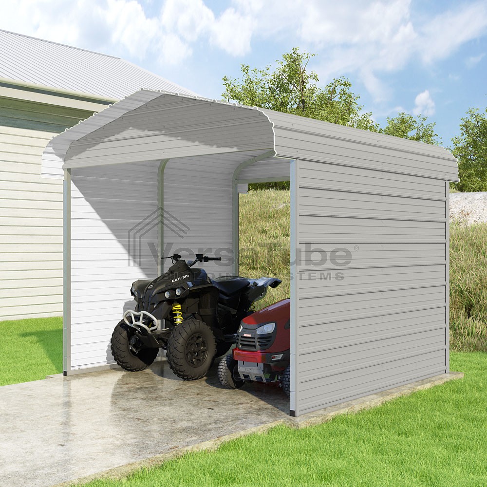 Classic Series DIY carport kit features horizontal application of sheet metal panels with the extra protection of rounded eaves.