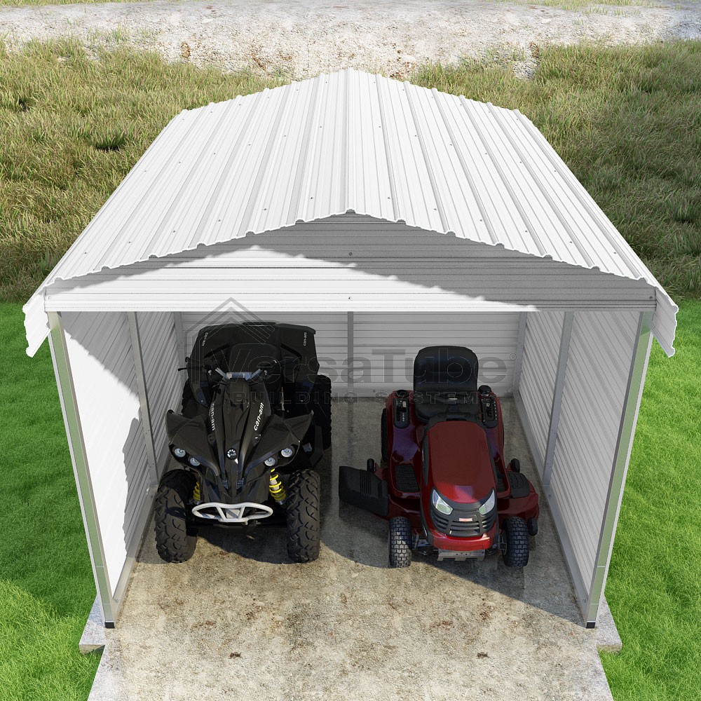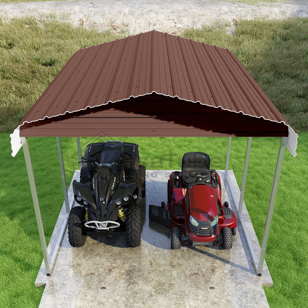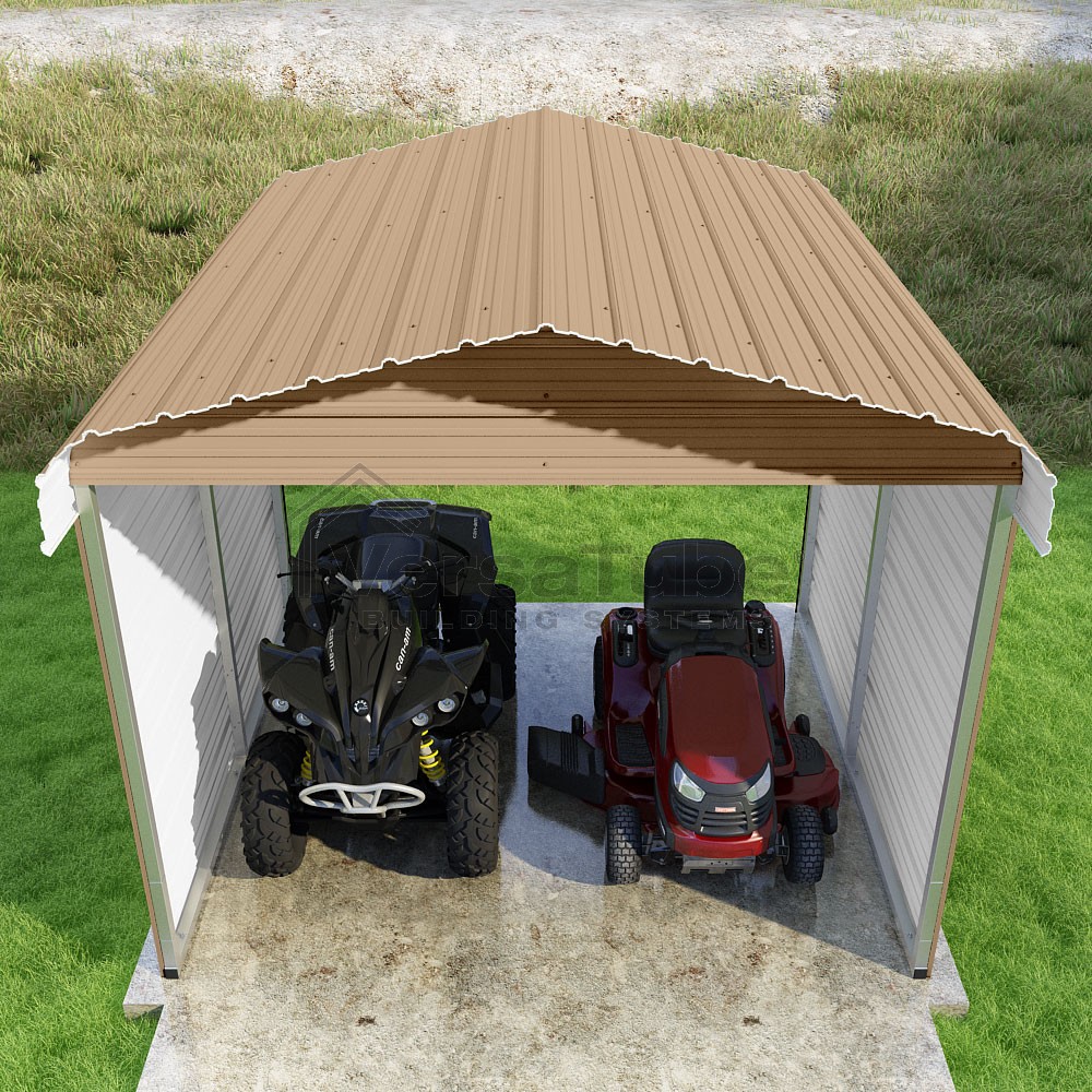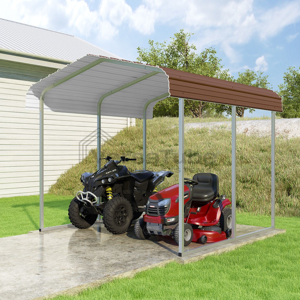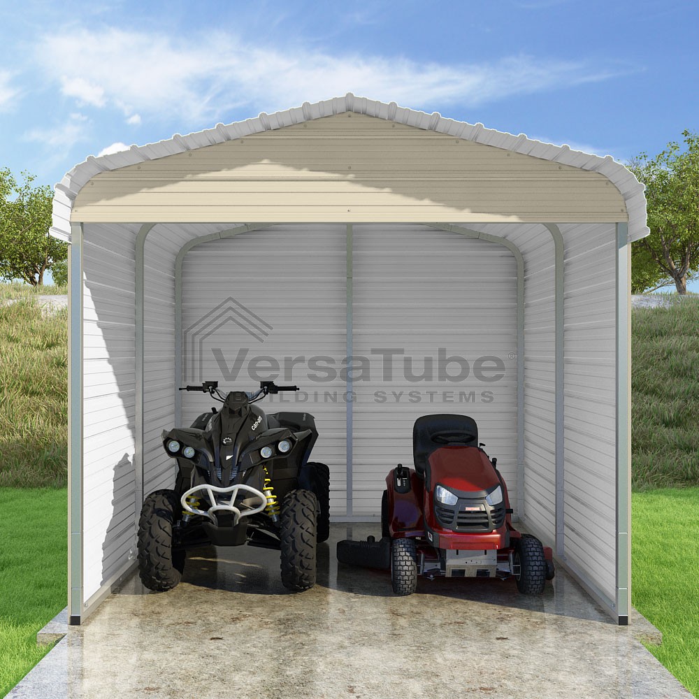 Classic Series DIY carport kit features horizontal application of sheet metal panels with the extra protection of rounded eaves.