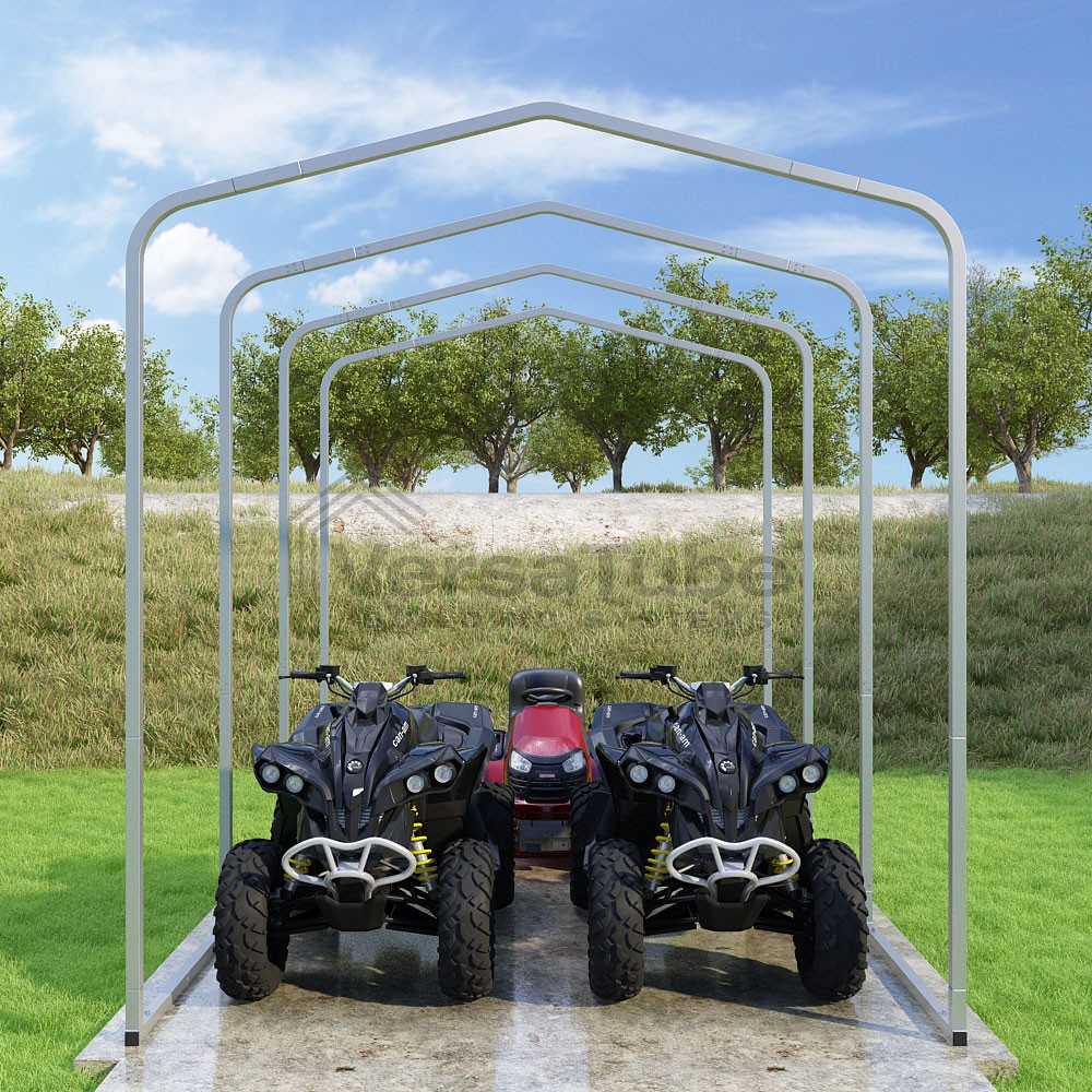 Classic Series DIY carport frame kit is designed for horizontal sheet metal application, resulting in a more cost-effective shelter or canopy solution. The rounded bends allow the sheet metal to naturally roll over the sides ensuring additional protection from elements entering from the sides.