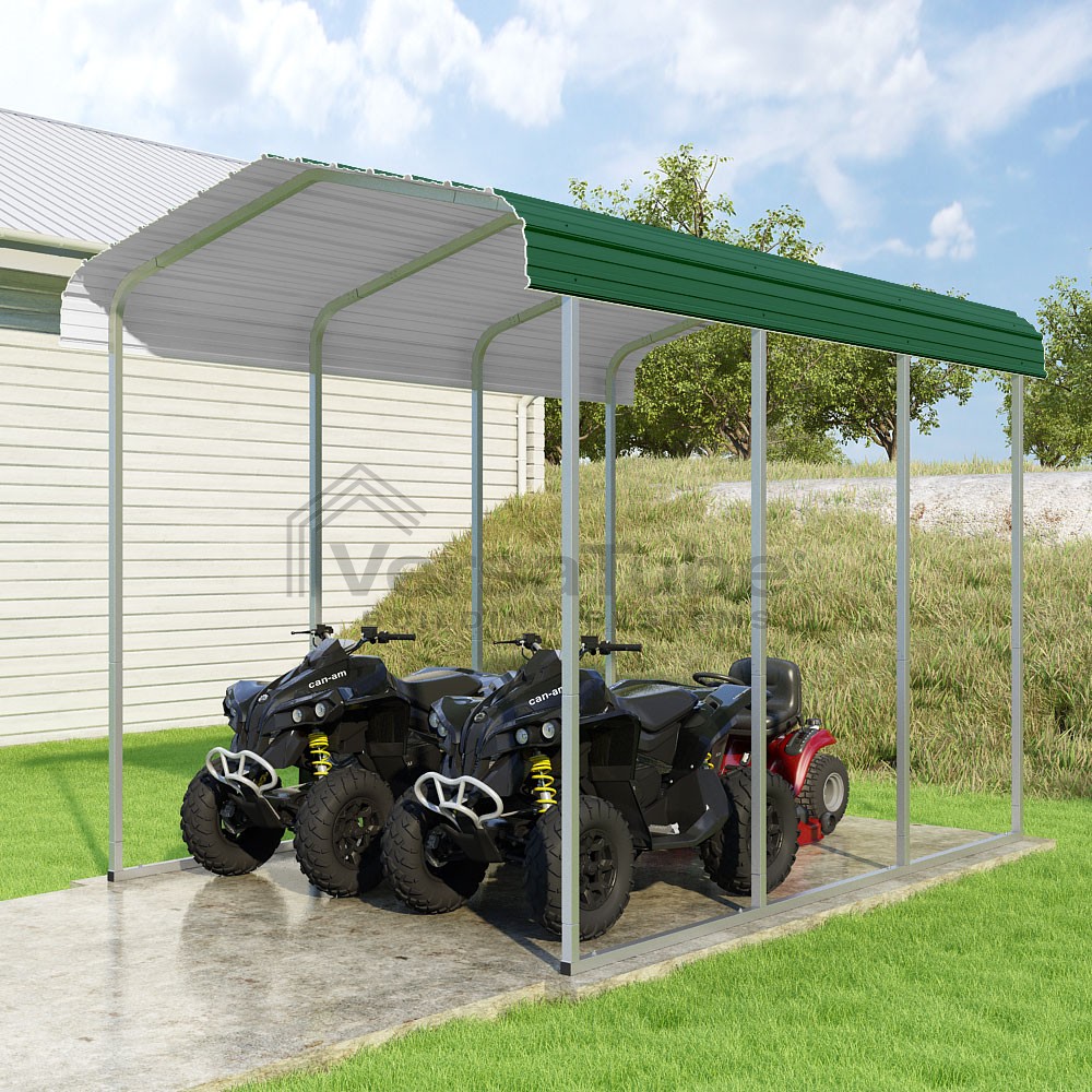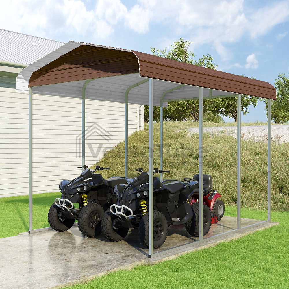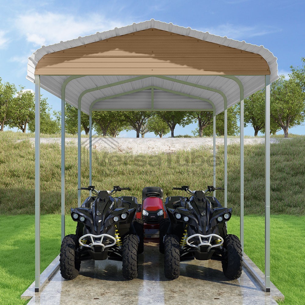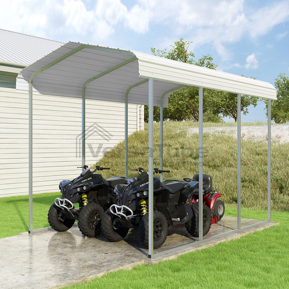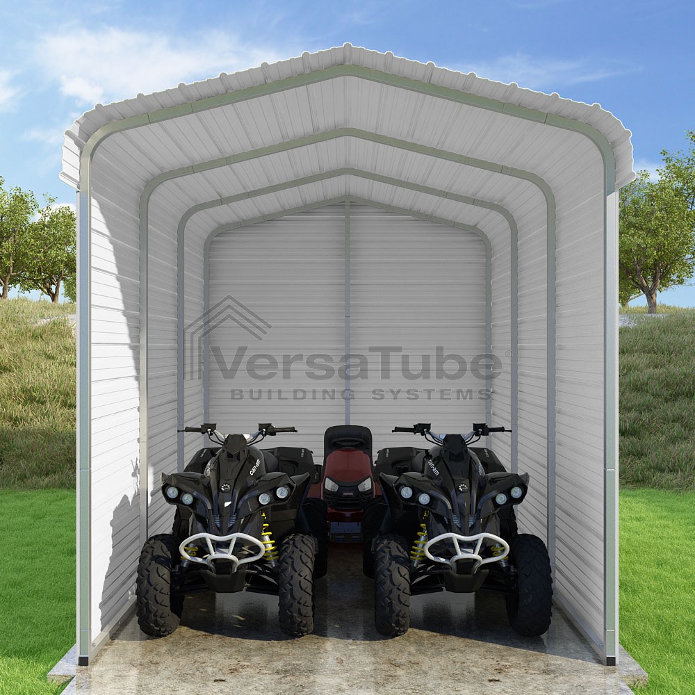 Classic Series DIY carport kit features horizontal application of sheet metal panels with the extra protection of rounded eaves.