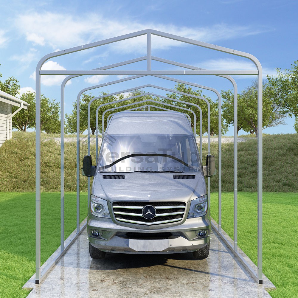 Classic Series DIY carport frame kit is designed for horizontal sheet metal application, resulting in a more cost-effective shelter or canopy solution. The rounded bends allow the sheet metal to naturally roll over the sides ensuring additional protection from elements entering from the sides.