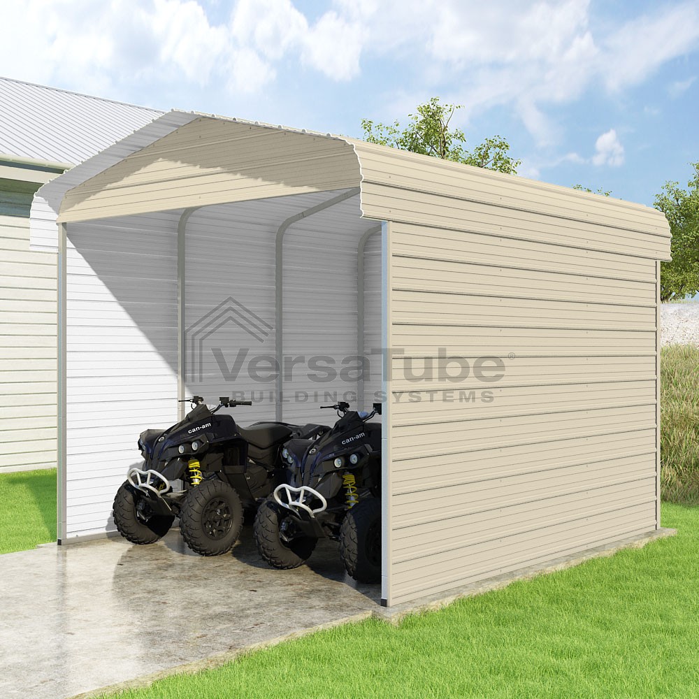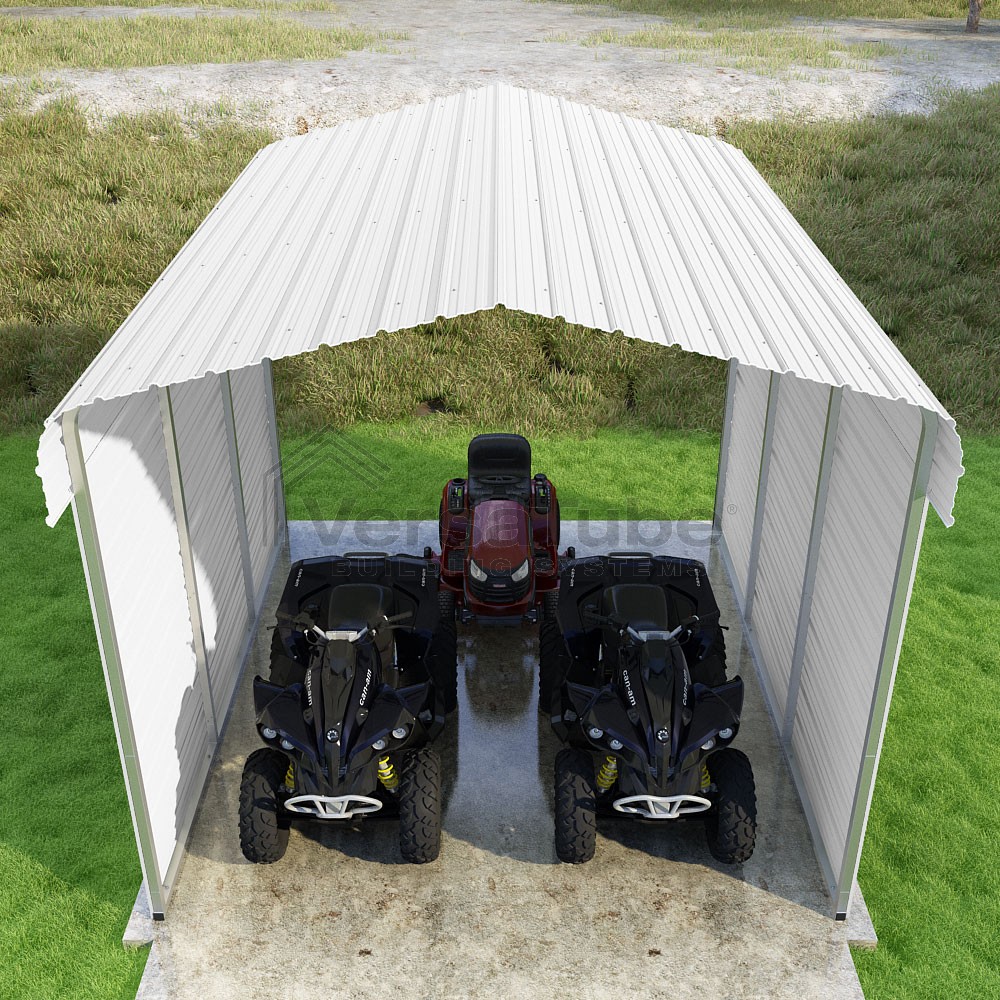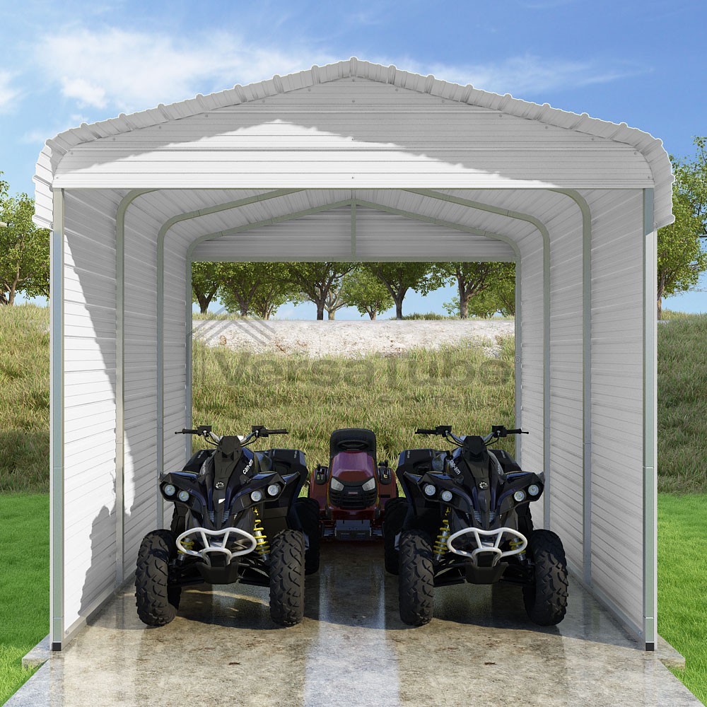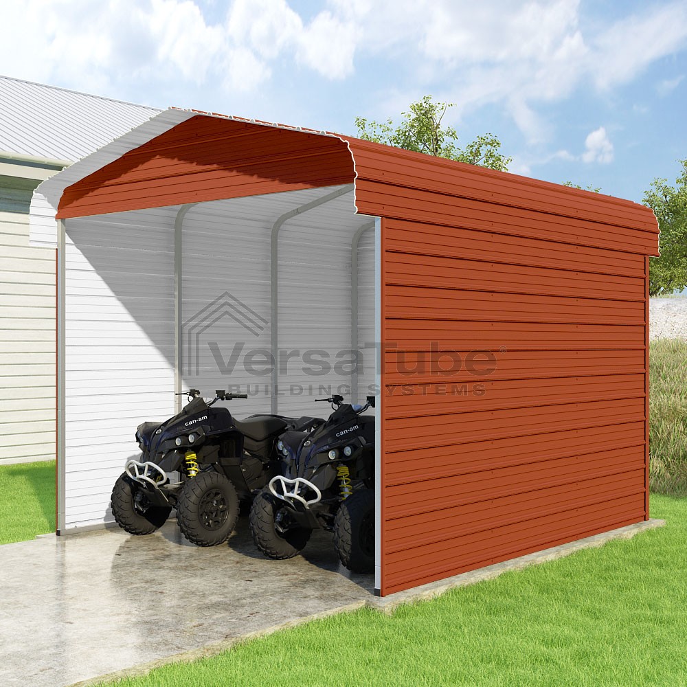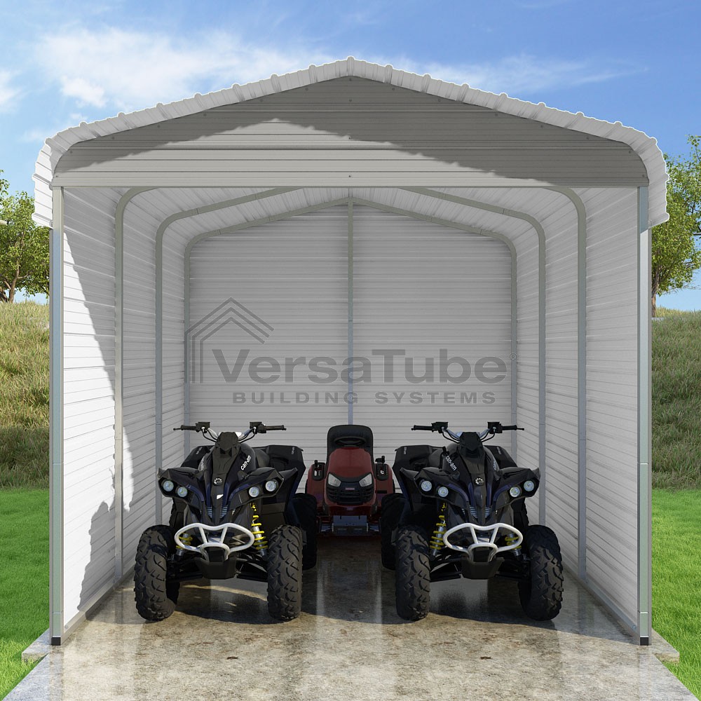 Classic Series DIY carport kit features horizontal application of sheet metal panels with the extra protection of rounded eaves.