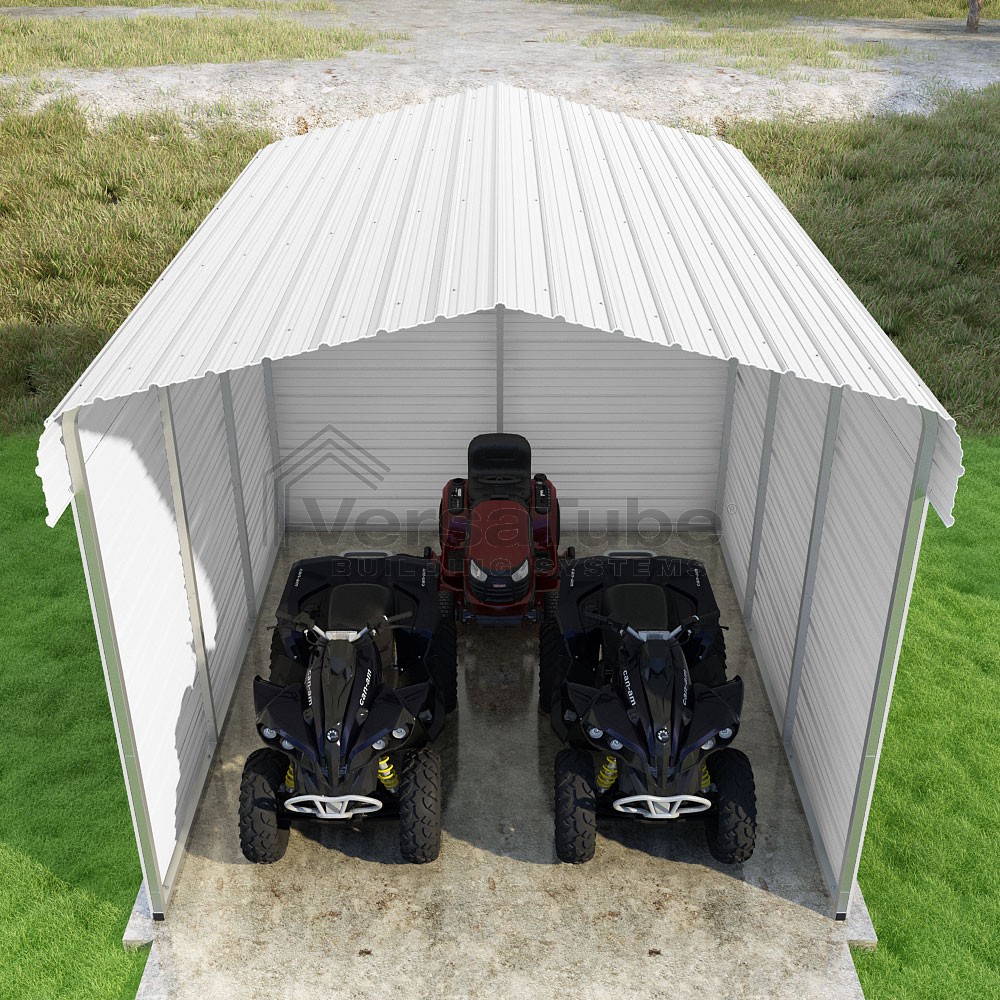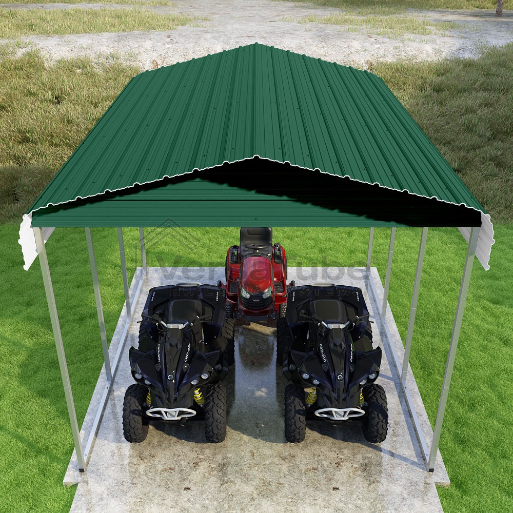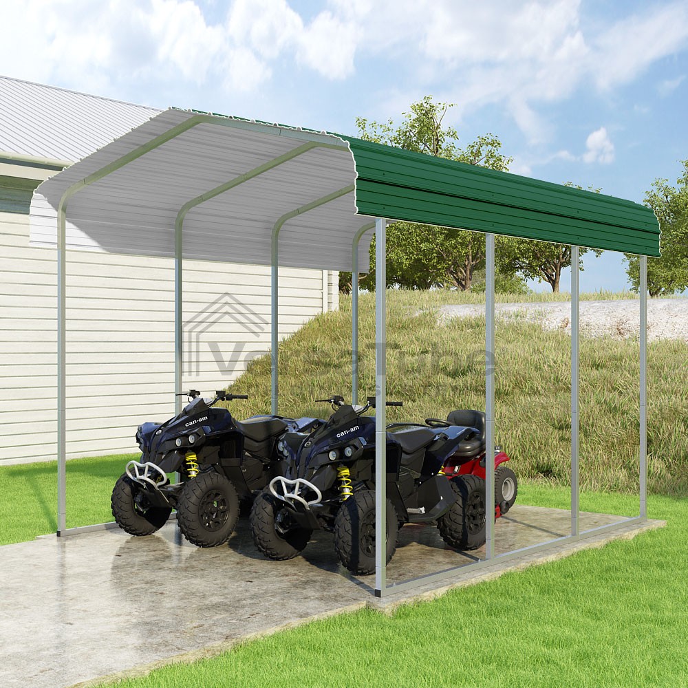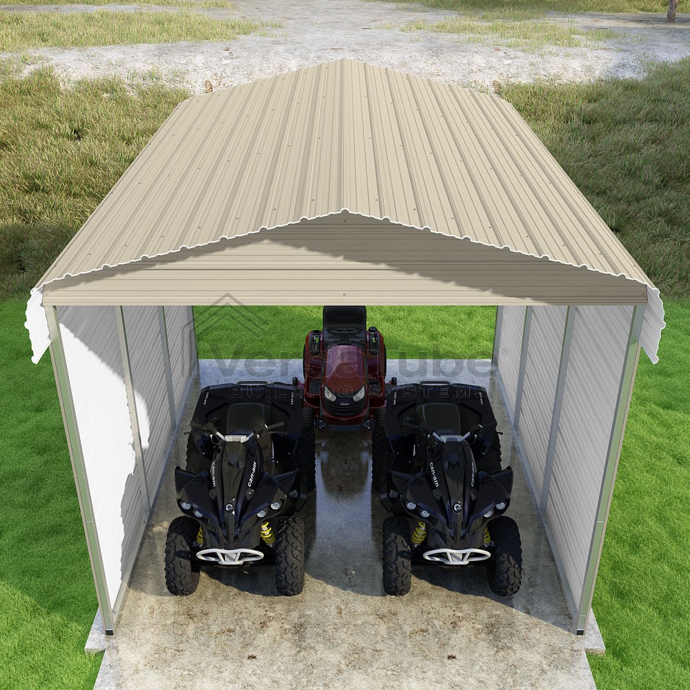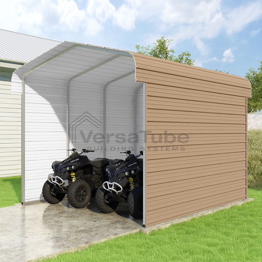 Classic Series DIY carport kit features horizontal application of sheet metal panels with the extra protection of rounded eaves.
