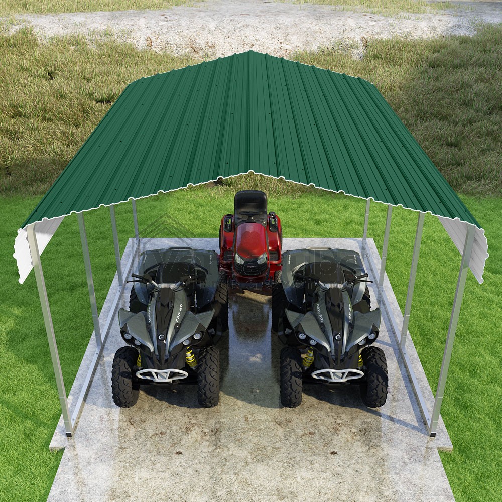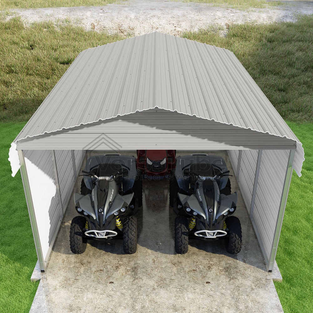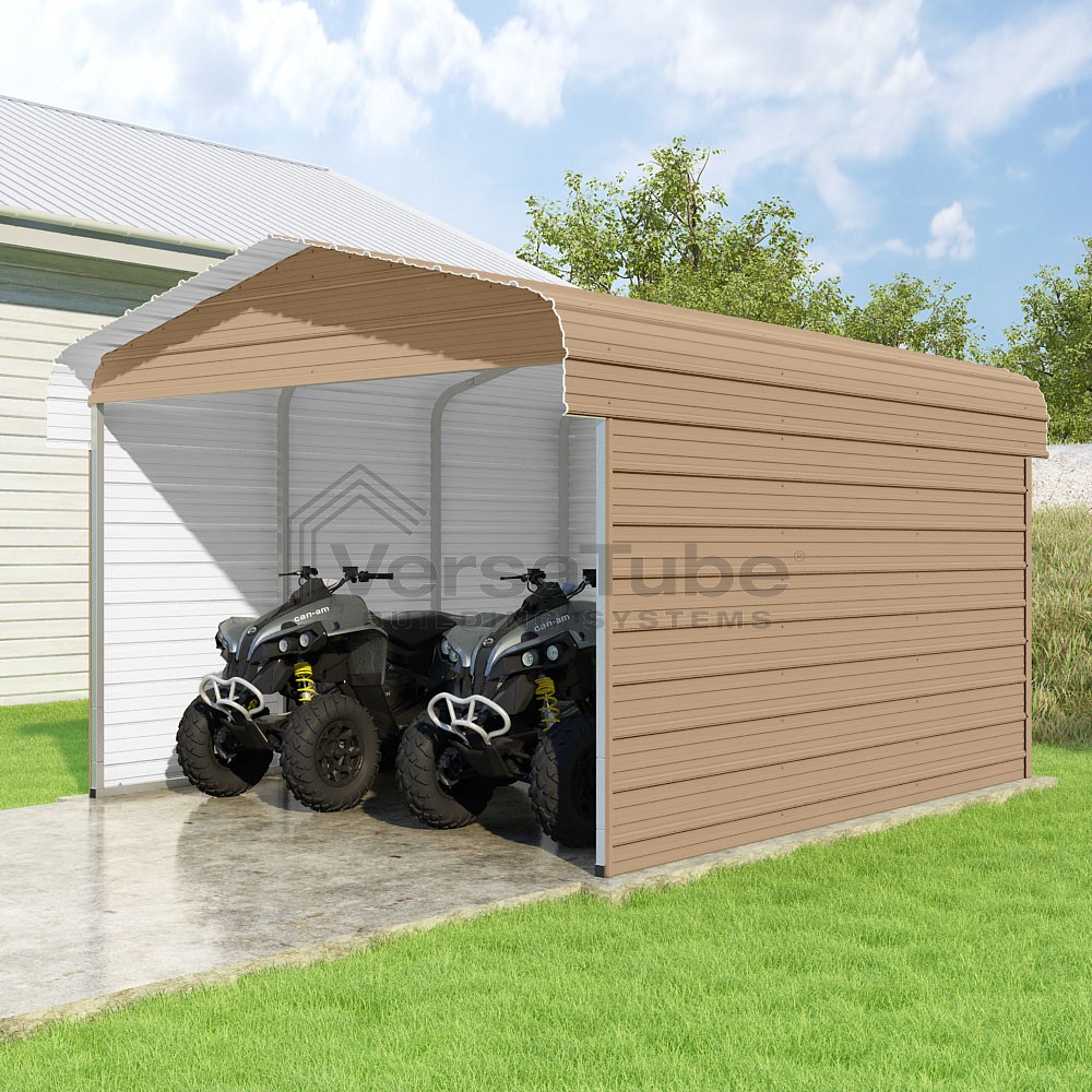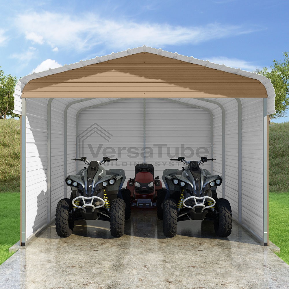 Classic Series DIY carport kit features horizontal application of sheet metal panels with the extra protection of rounded eaves.