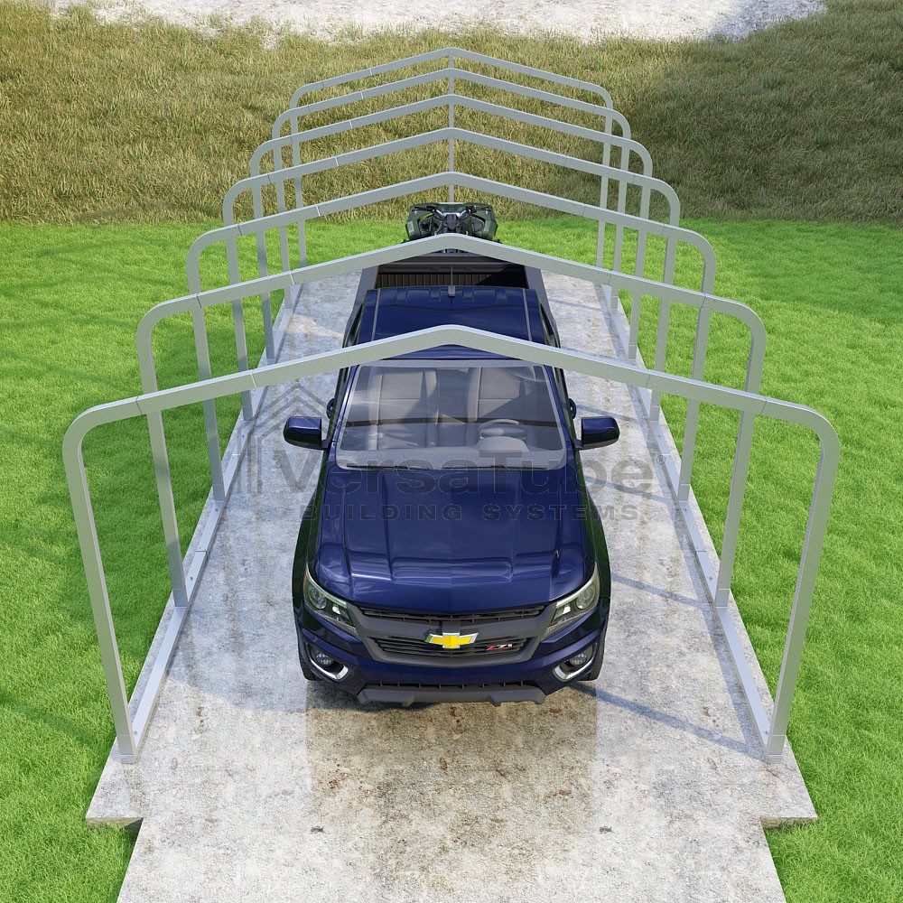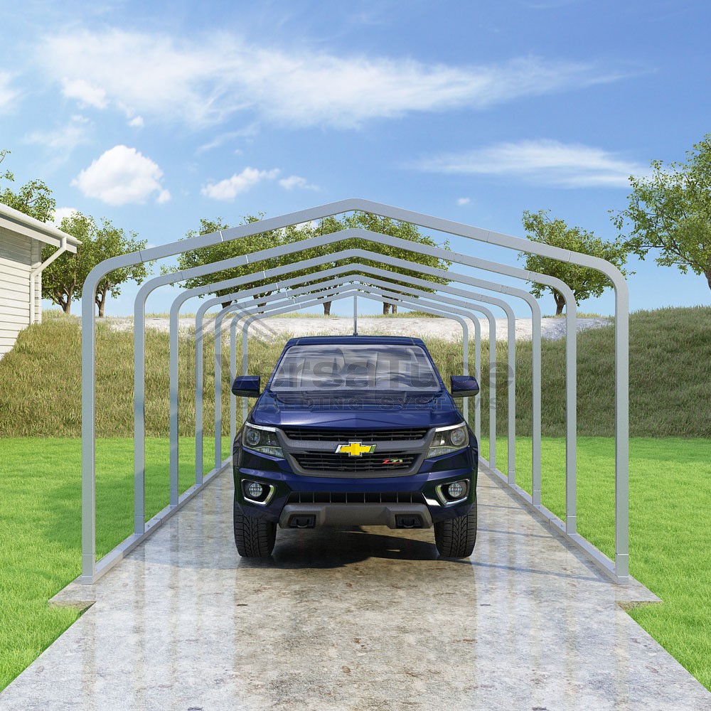 Classic Series DIY carport frame kit is designed for horizontal sheet metal application, resulting in a more cost-effective shelter or canopy solution. The rounded bends allow the sheet metal to naturally roll over the sides ensuring additional protection from elements entering from the sides.
