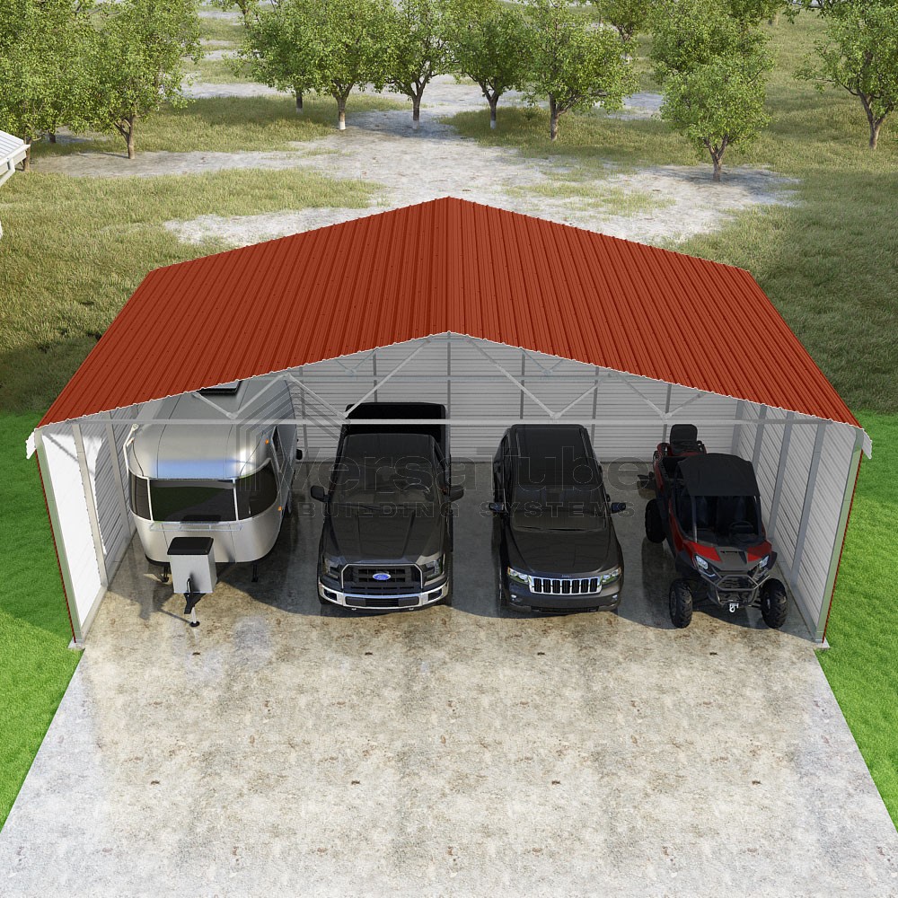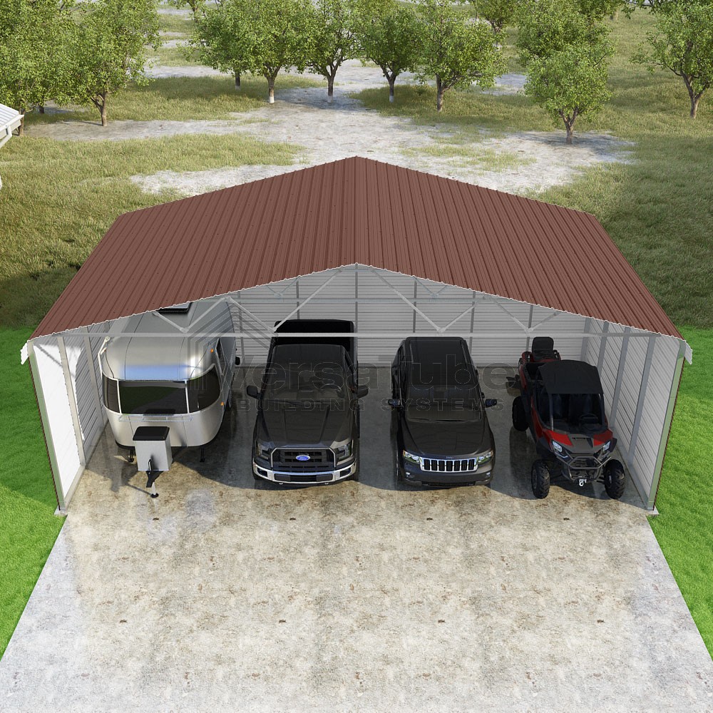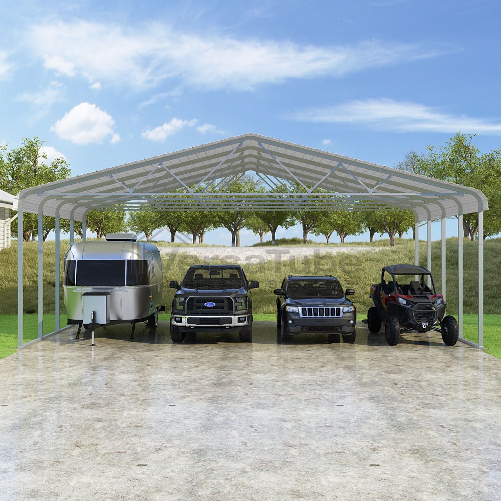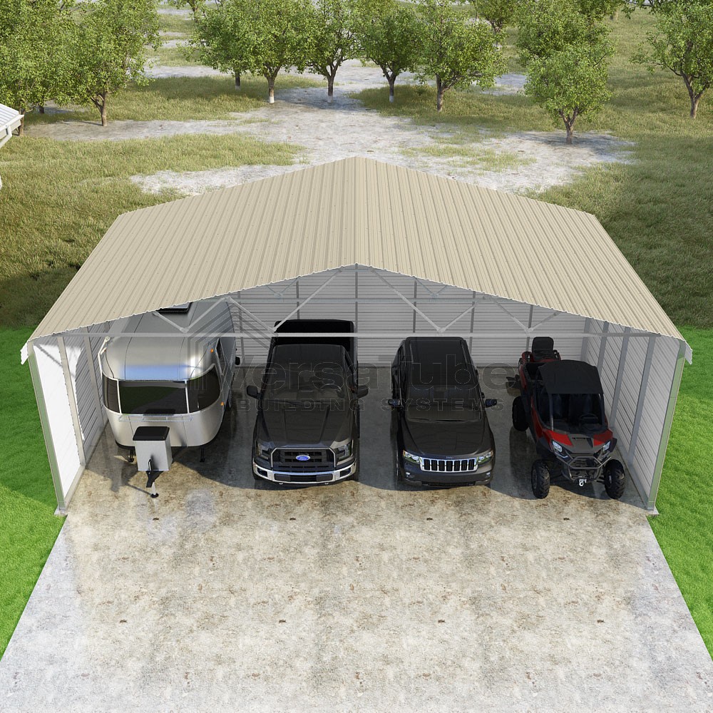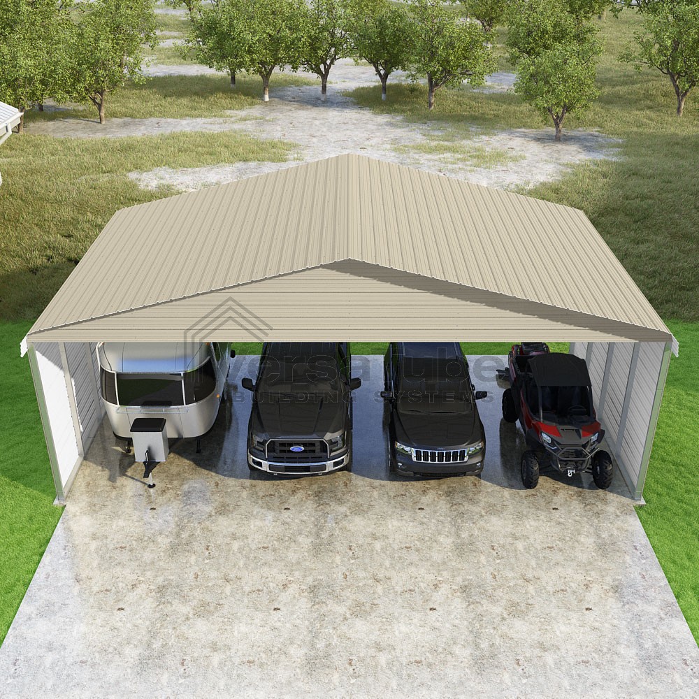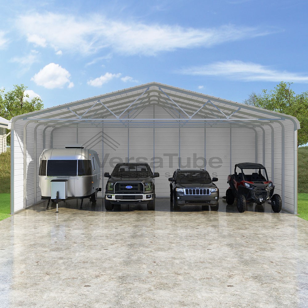 Classic Series DIY carport kit features horizontal application of sheet metal panels with the extra protection of rounded eaves.