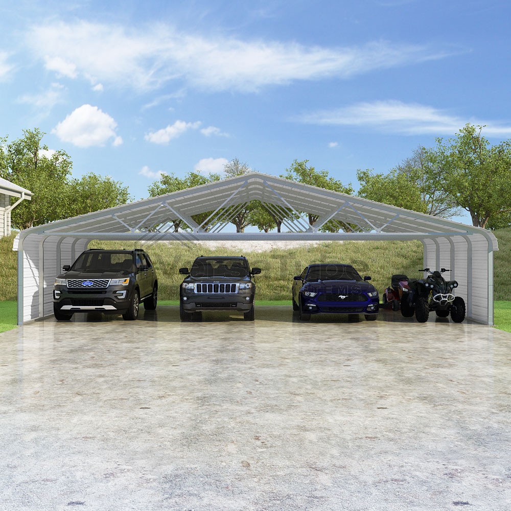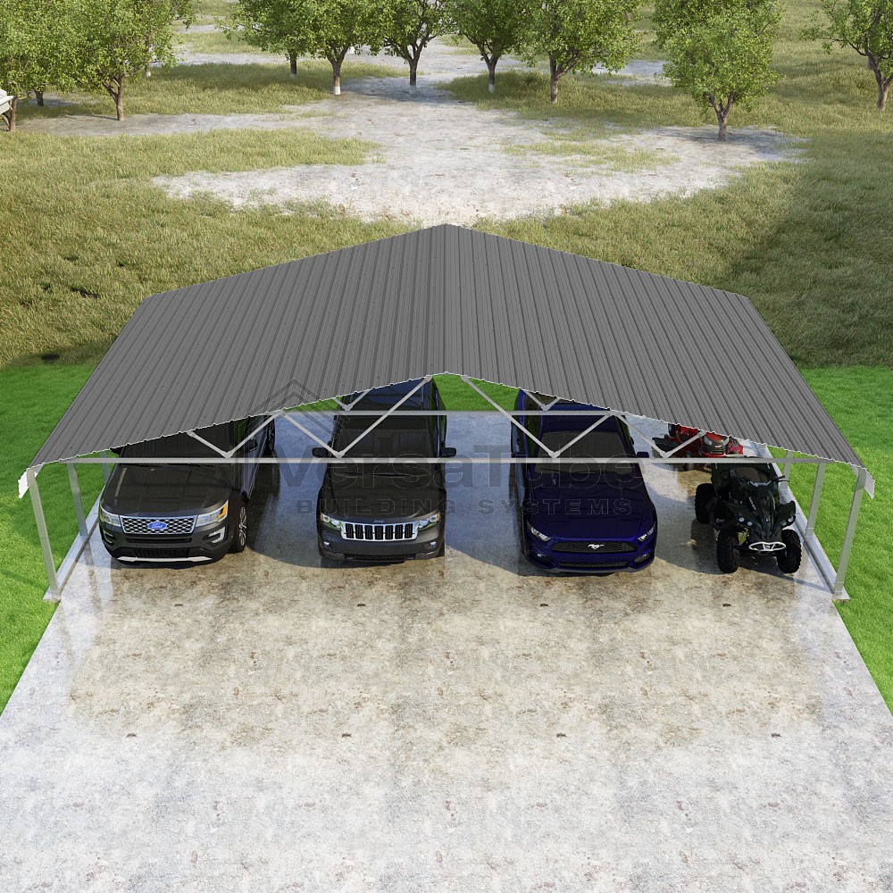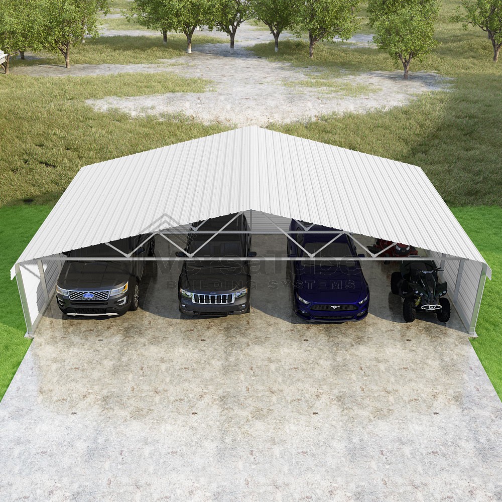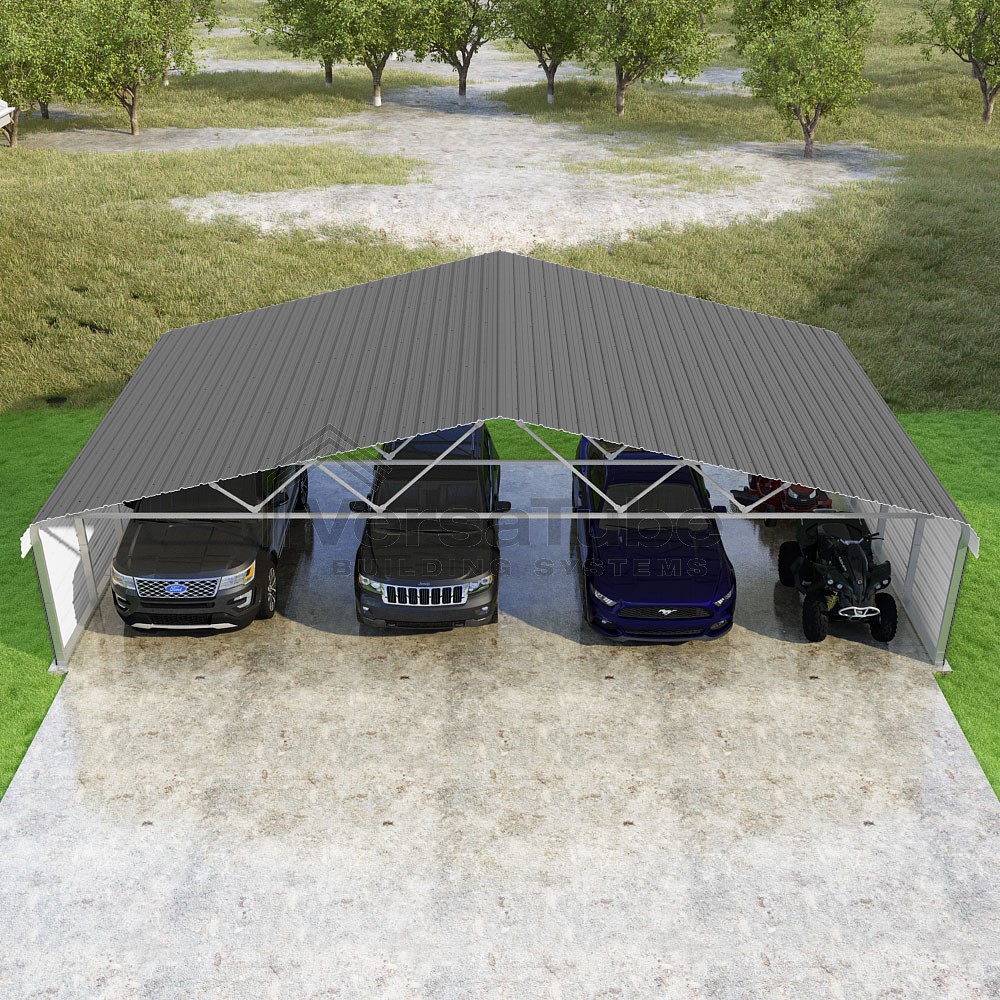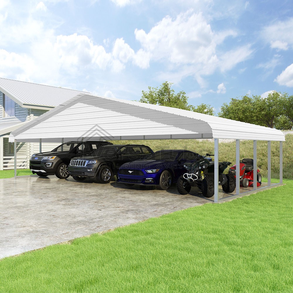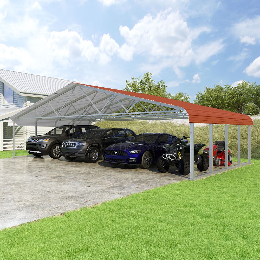 Classic Series DIY carport kit features horizontal application of sheet metal panels with the extra protection of rounded eaves.