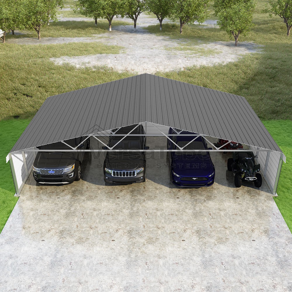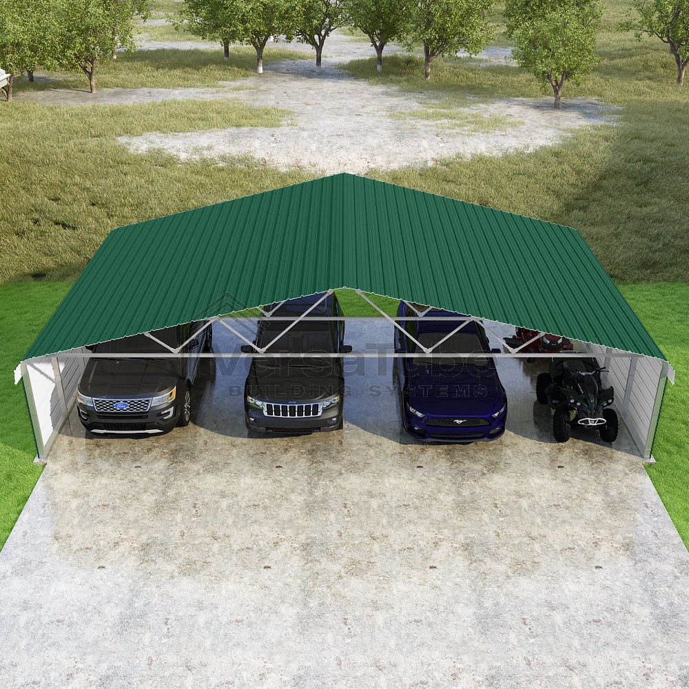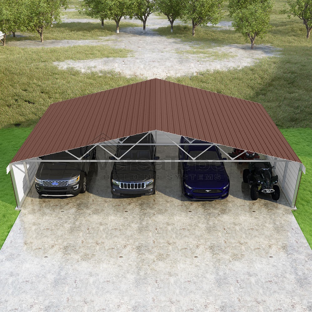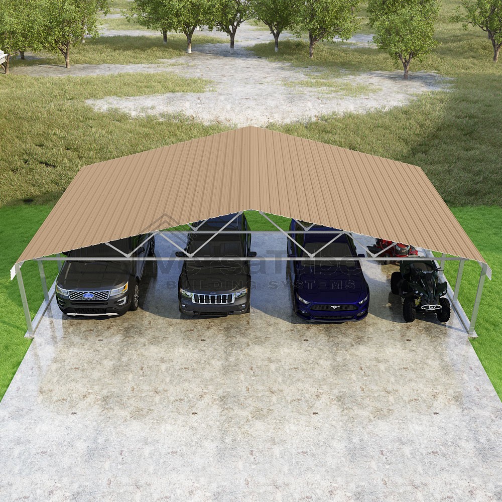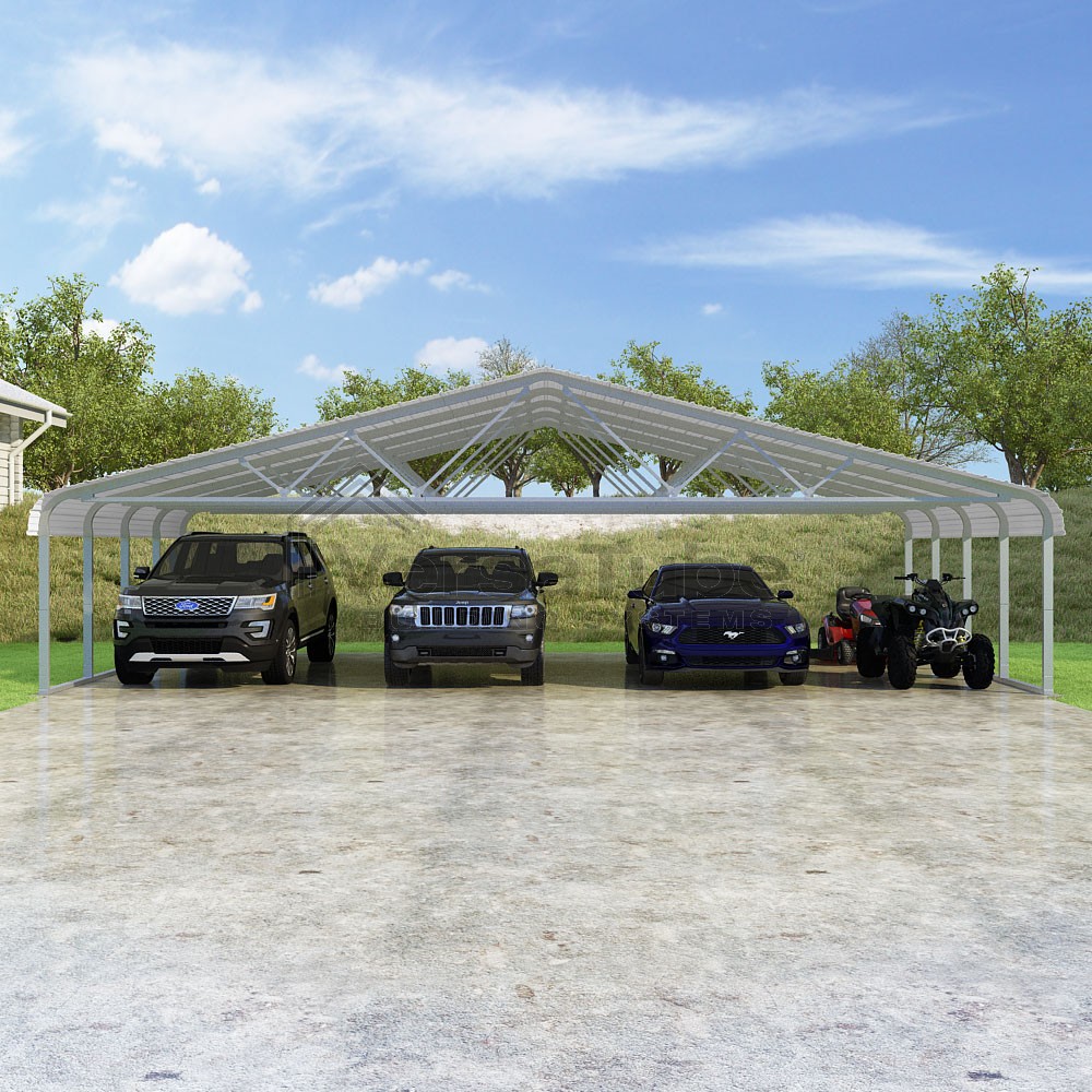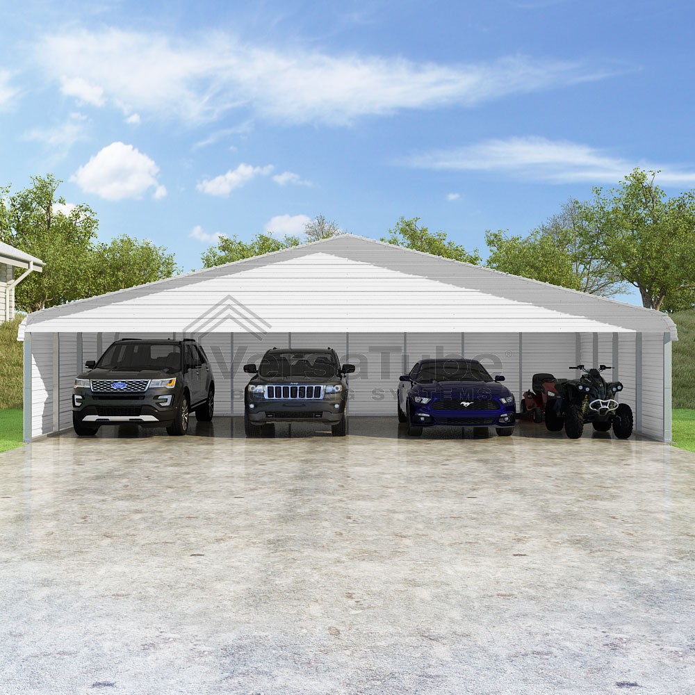 Classic Series DIY carport kit features horizontal application of sheet metal panels with the extra protection of rounded eaves.