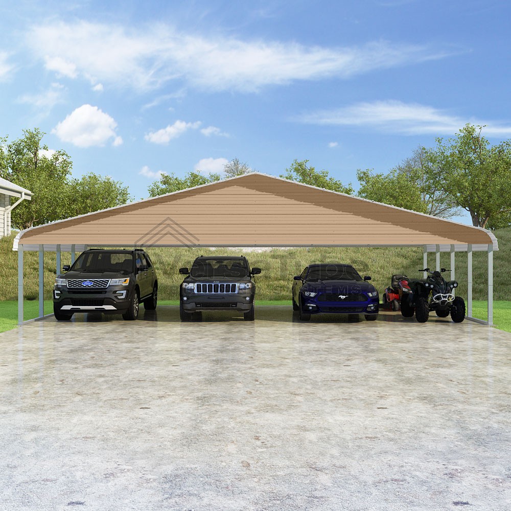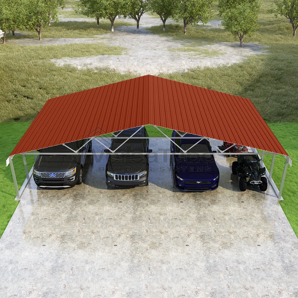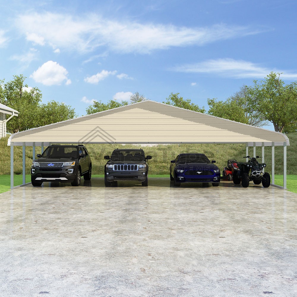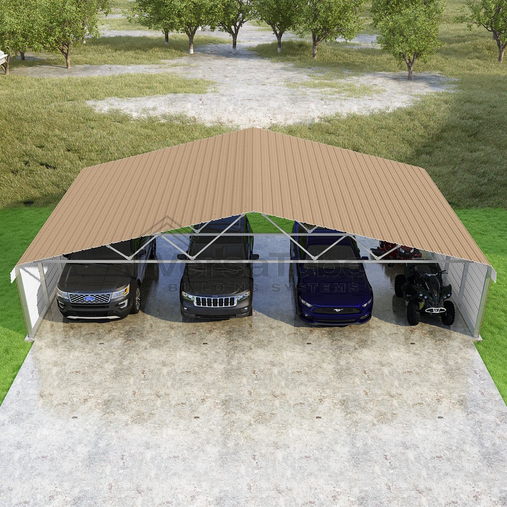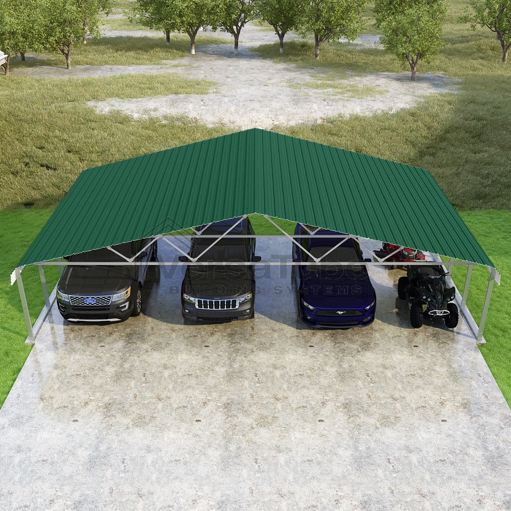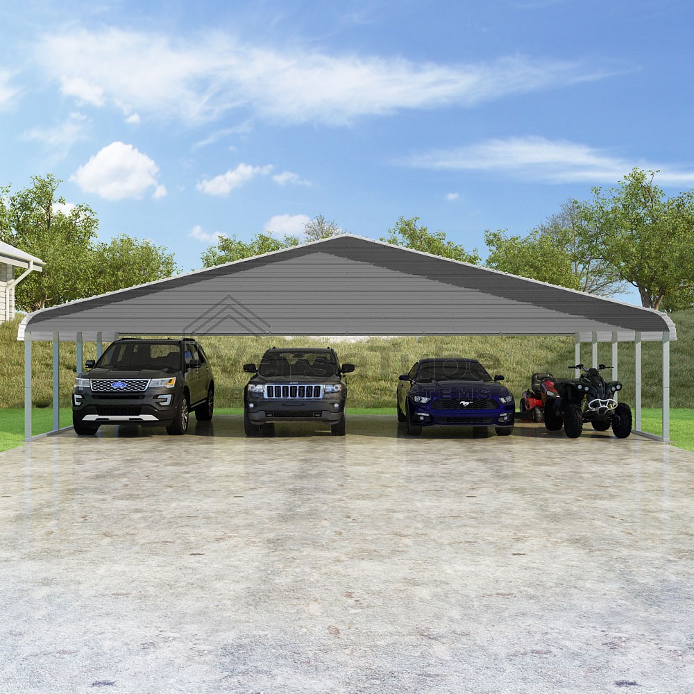 Classic Series DIY carport kit features horizontal application of sheet metal panels with the extra protection of rounded eaves.