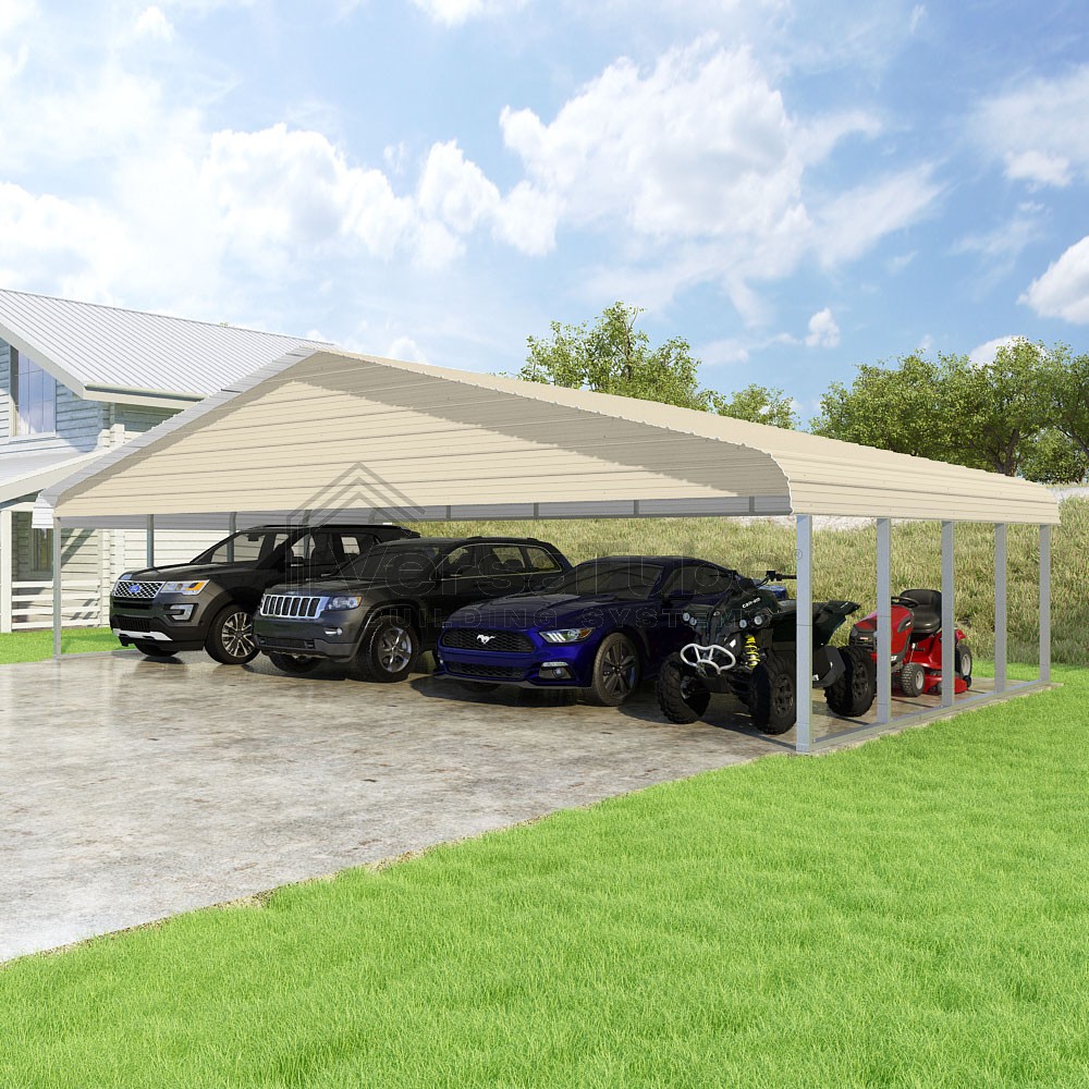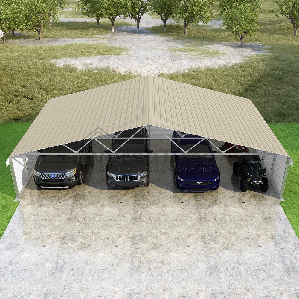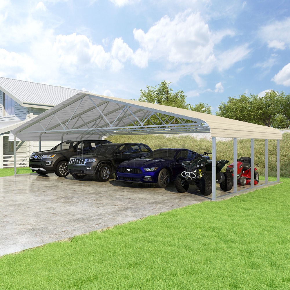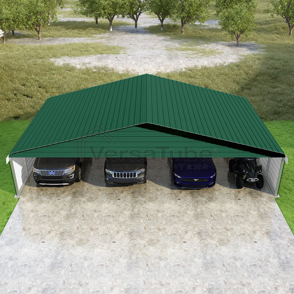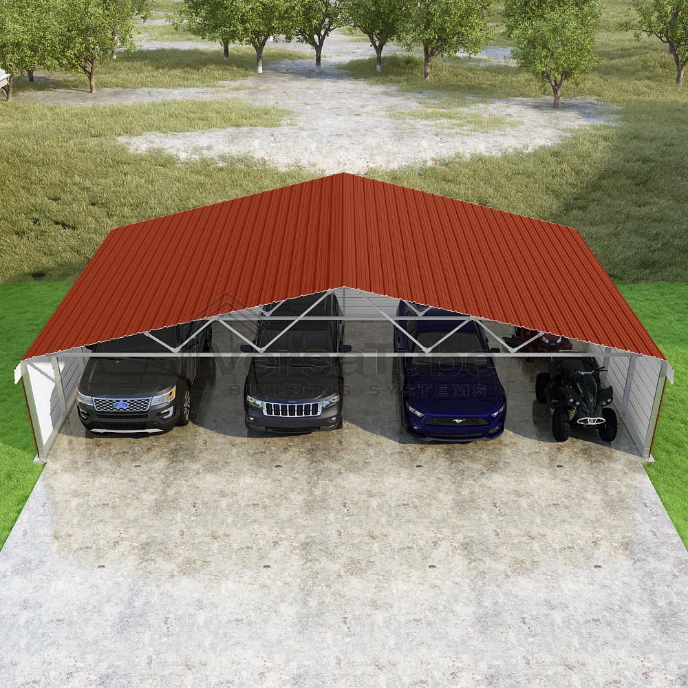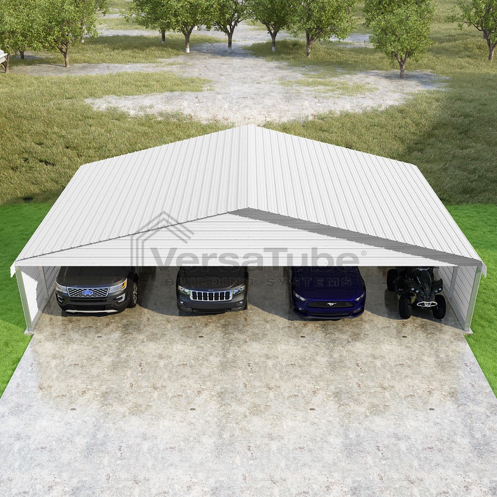 Classic Series DIY carport kit features horizontal application of sheet metal panels with the extra protection of rounded eaves.