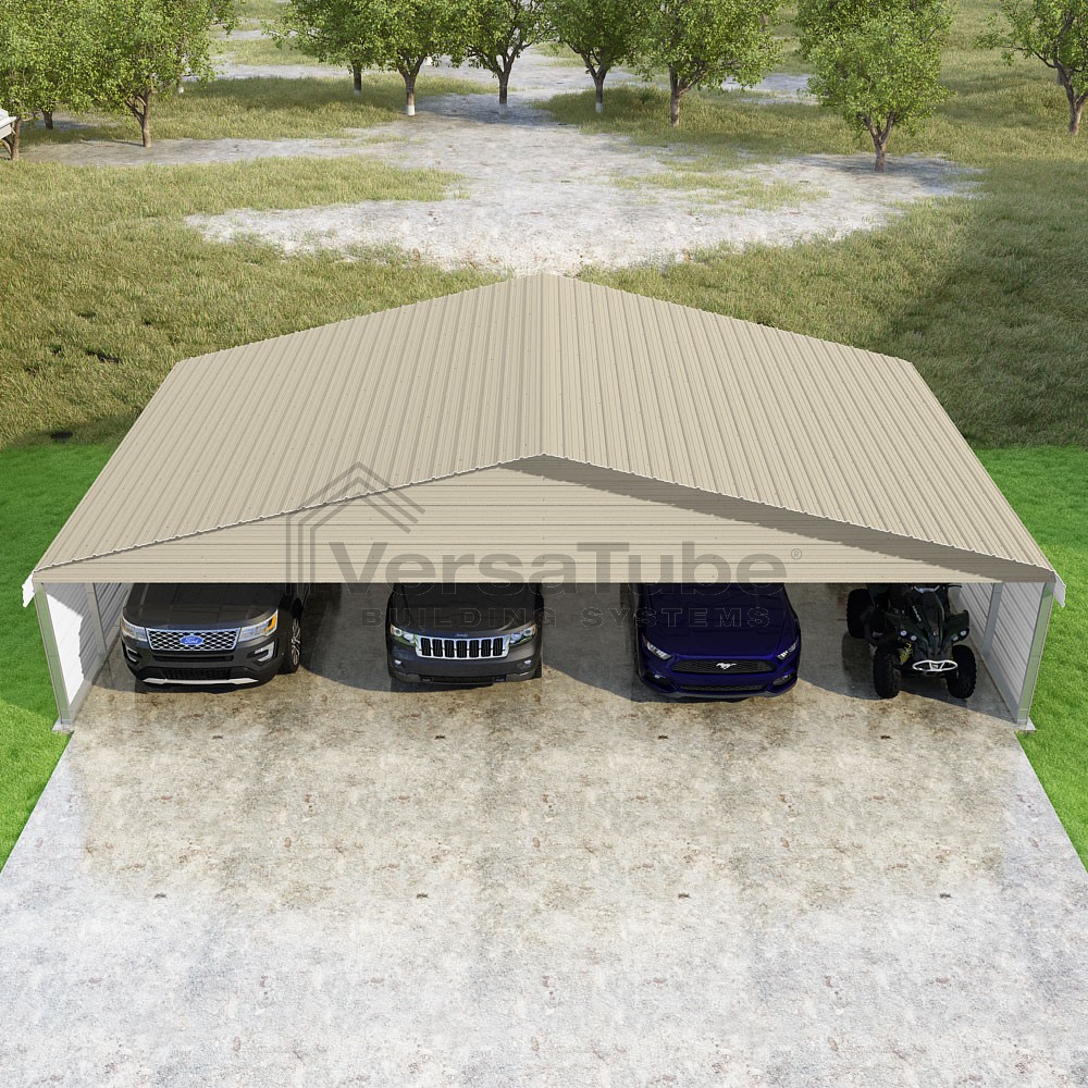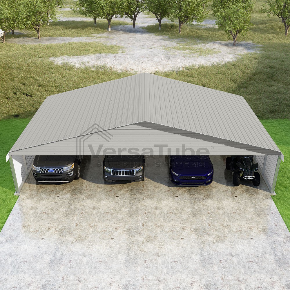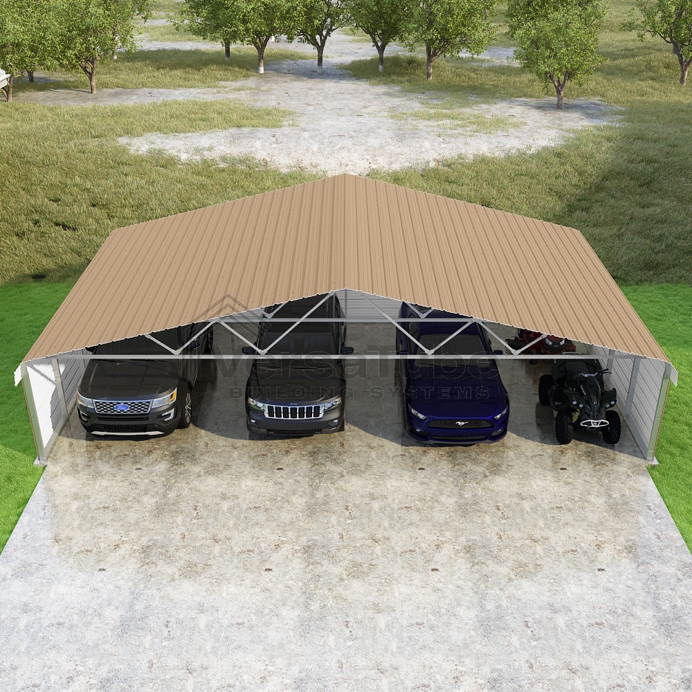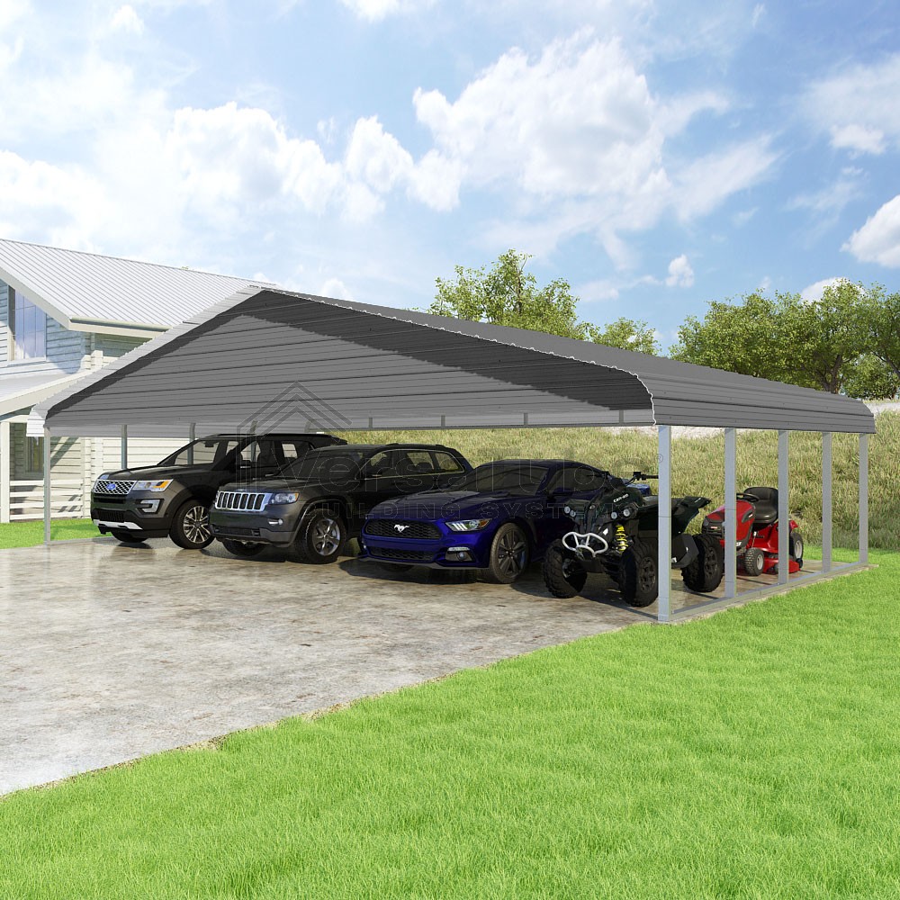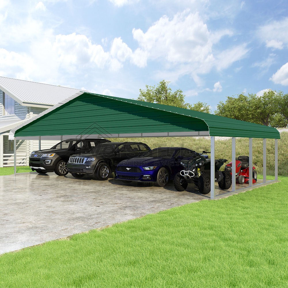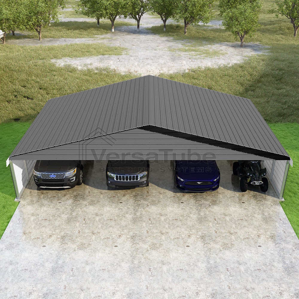 Classic Series DIY carport kit features horizontal application of sheet metal panels with the extra protection of rounded eaves.
