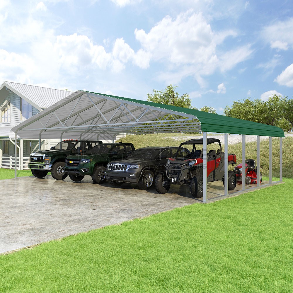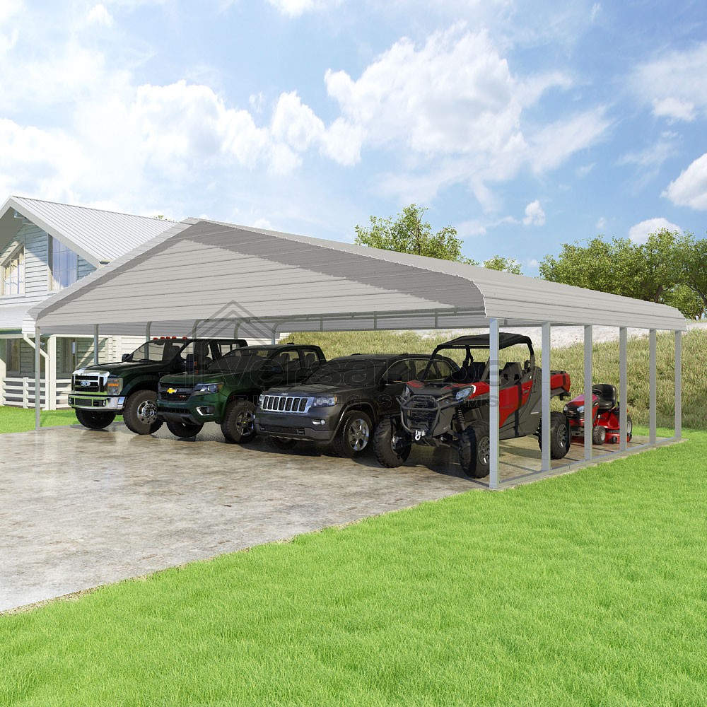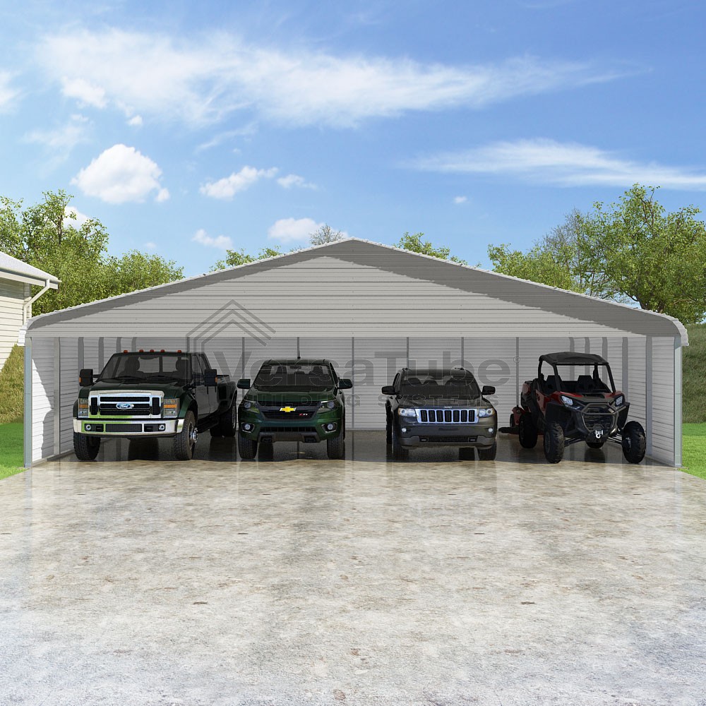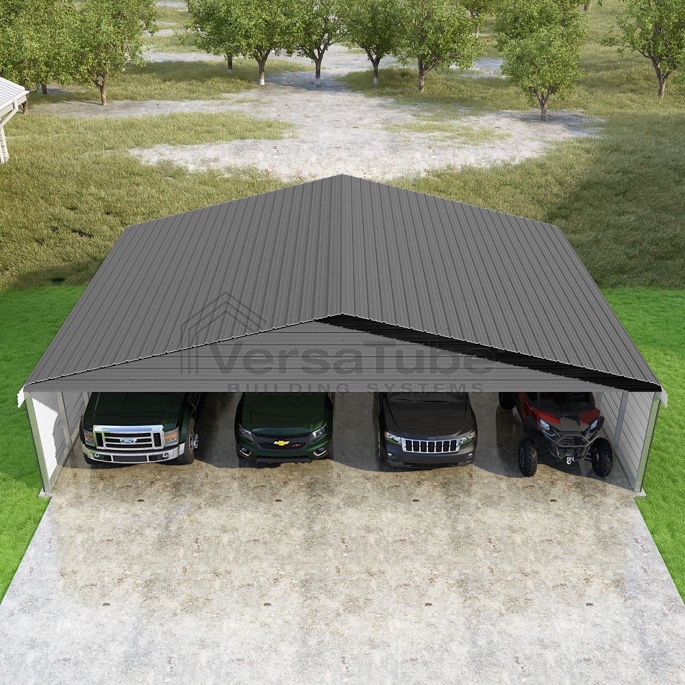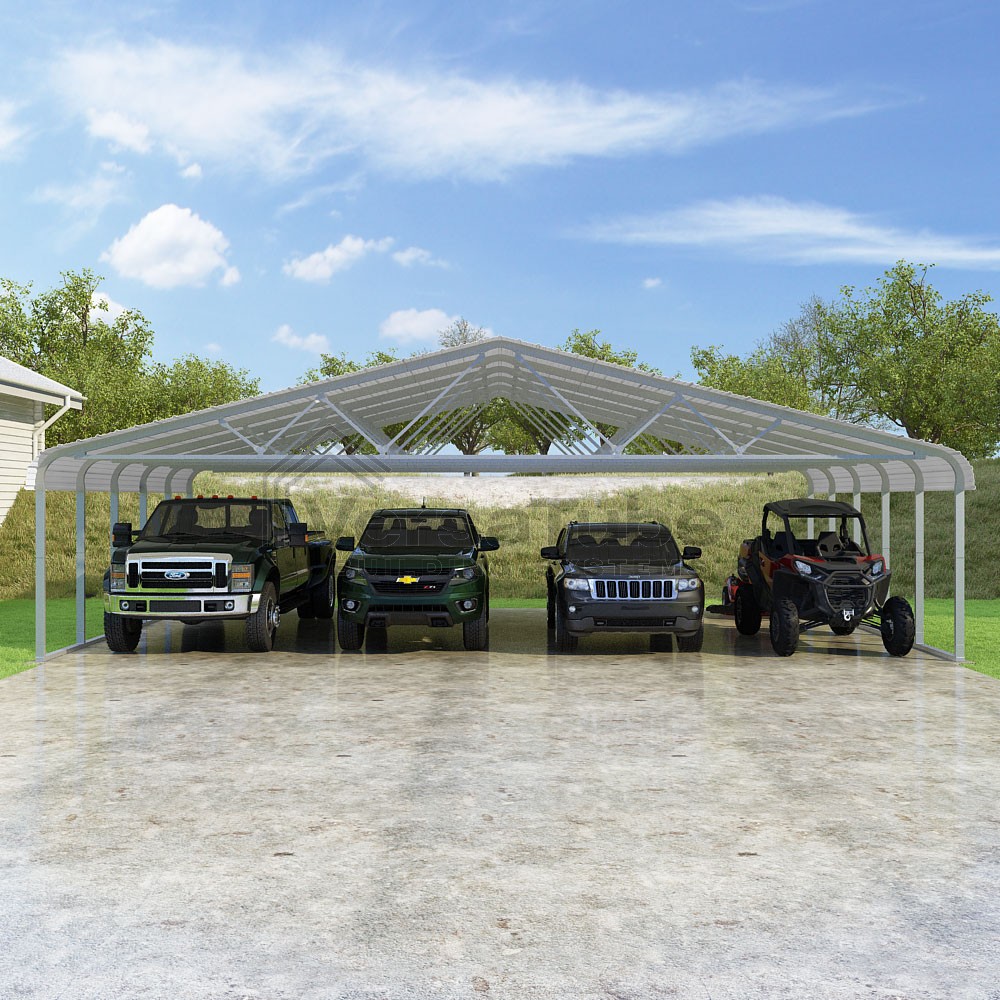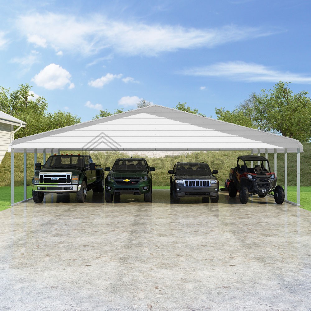 Classic Series DIY carport kit features horizontal application of sheet metal panels with the extra protection of rounded eaves.