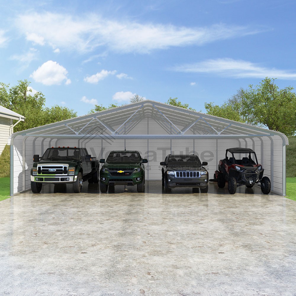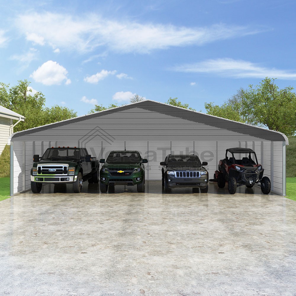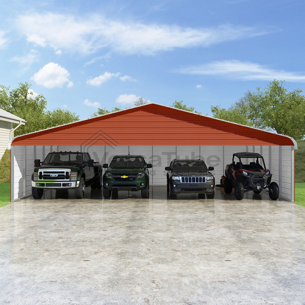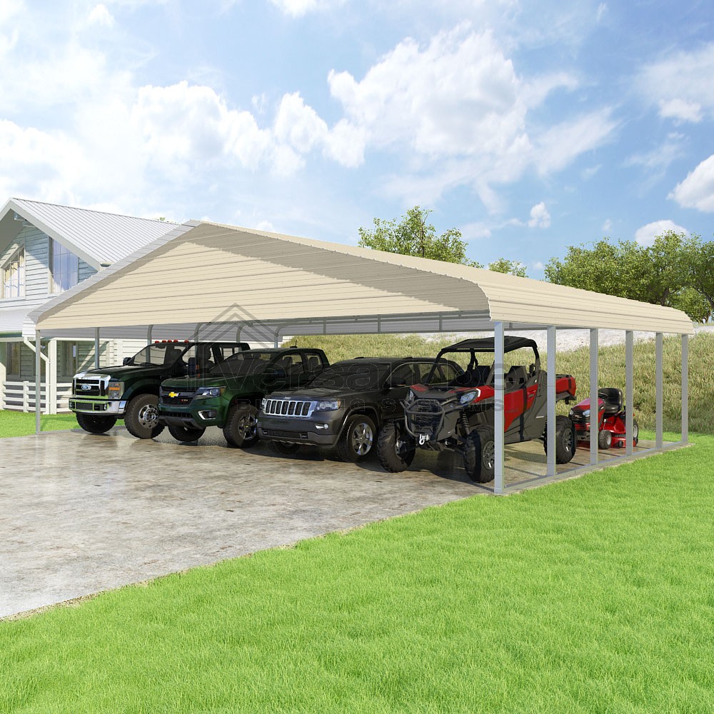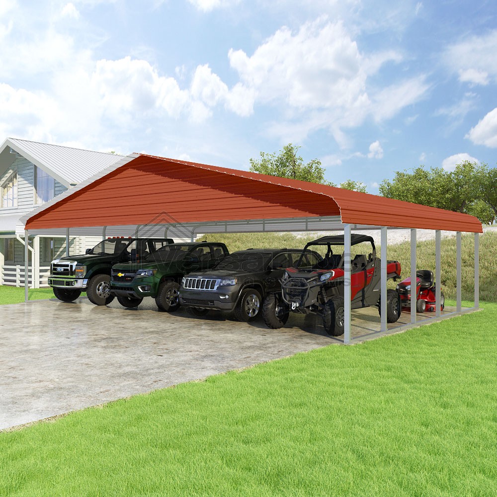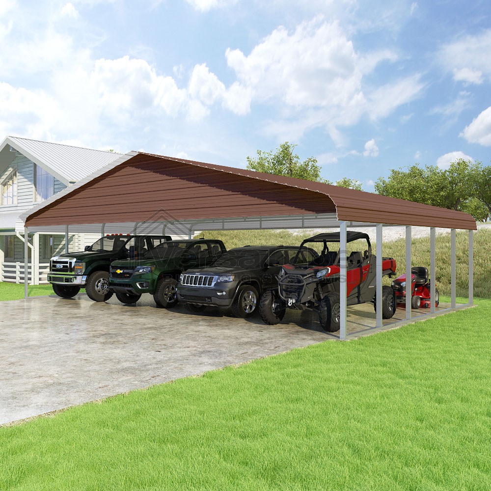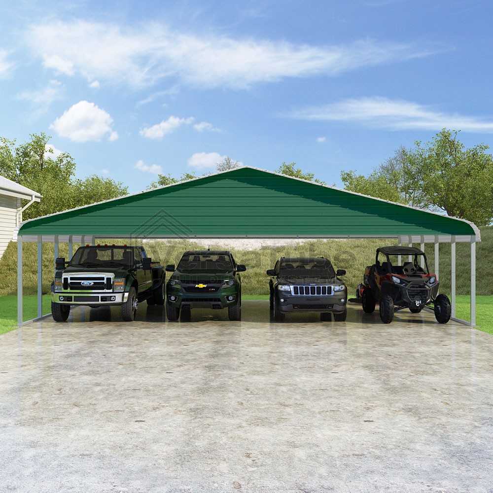 Classic Series DIY carport kit features horizontal application of sheet metal panels with the extra protection of rounded eaves.