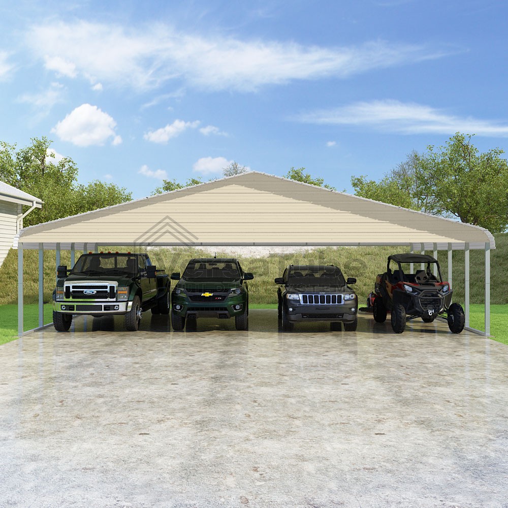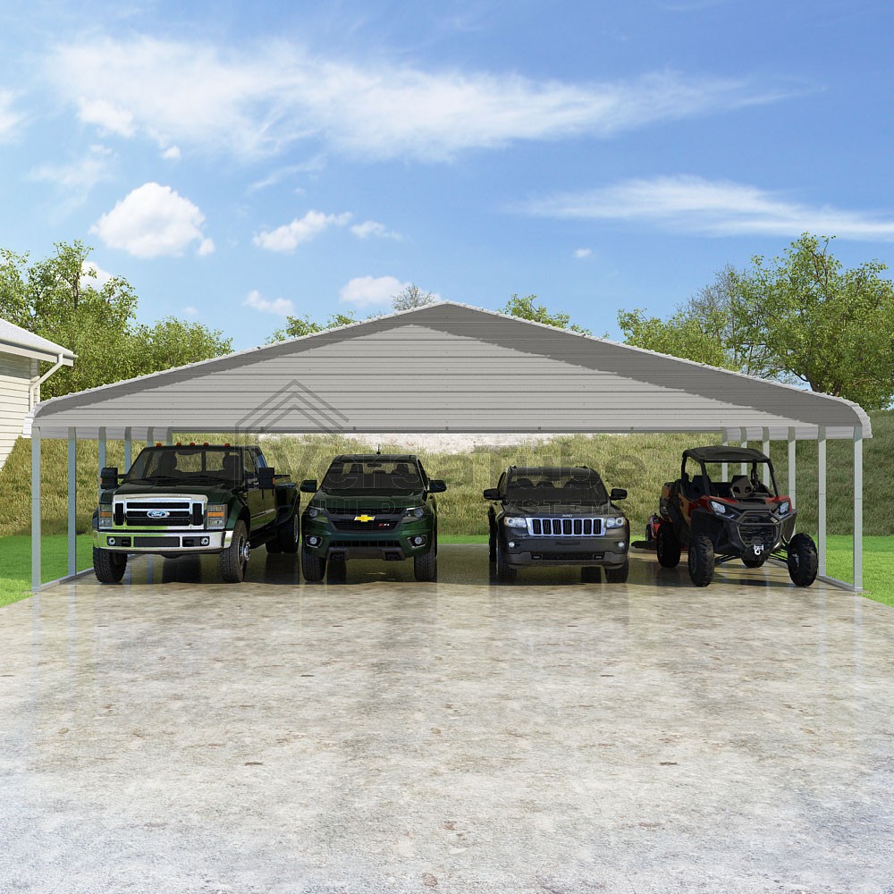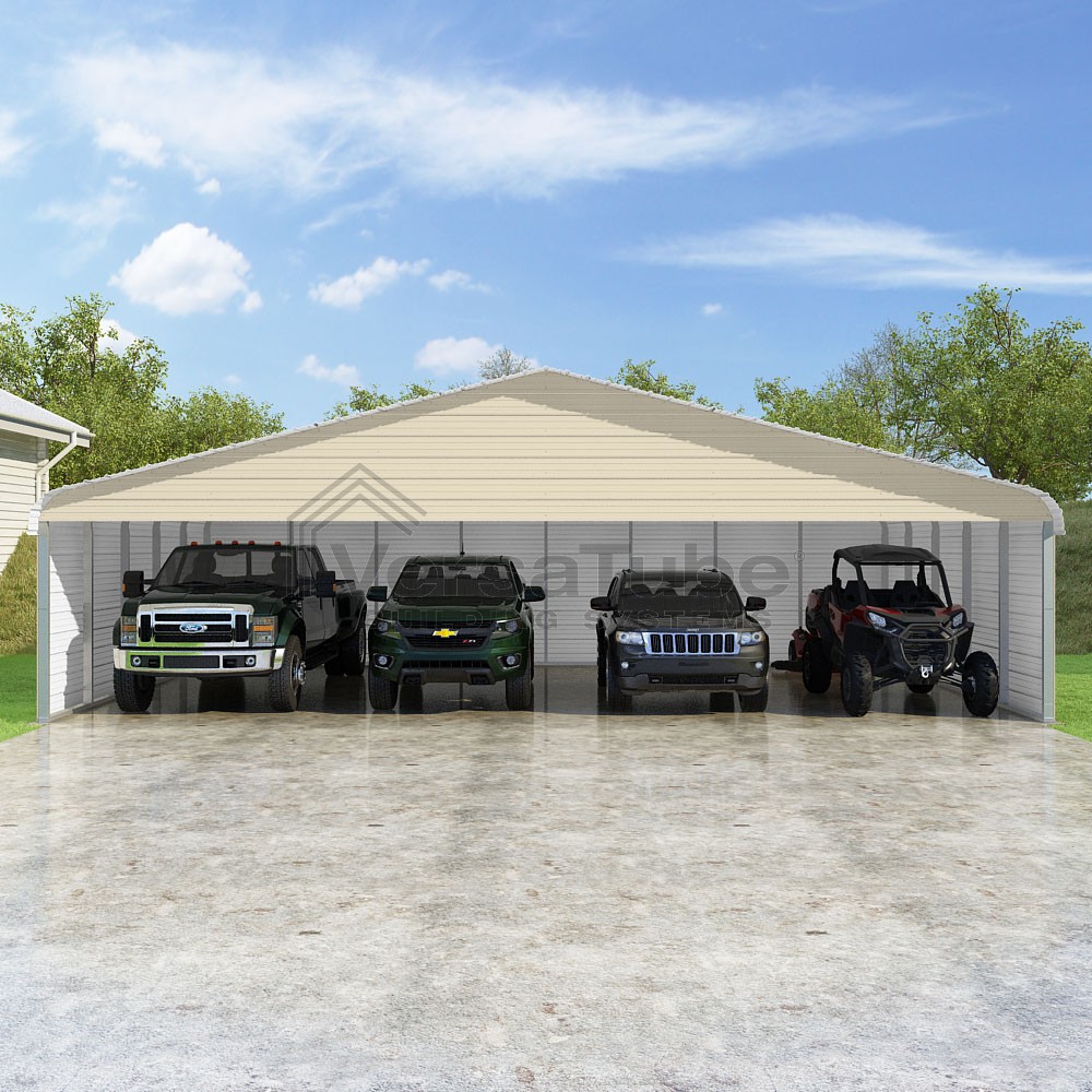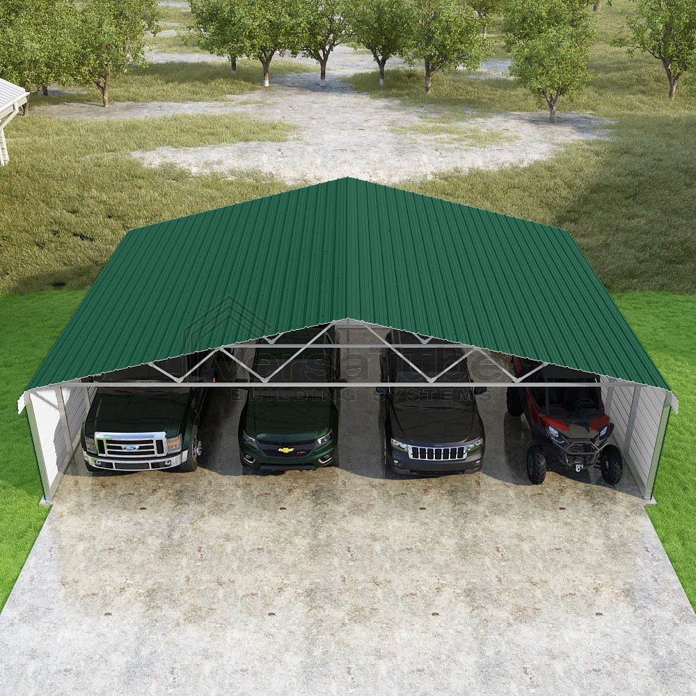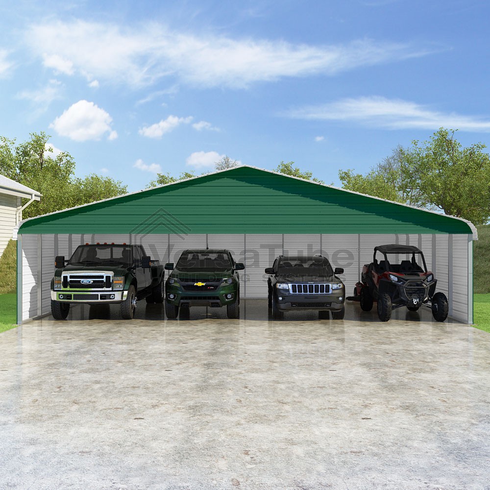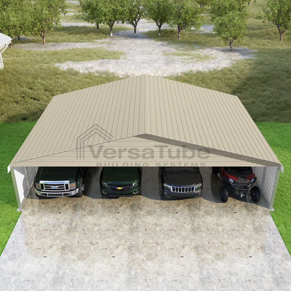 Classic Series DIY carport kit features horizontal application of sheet metal panels with the extra protection of rounded eaves.