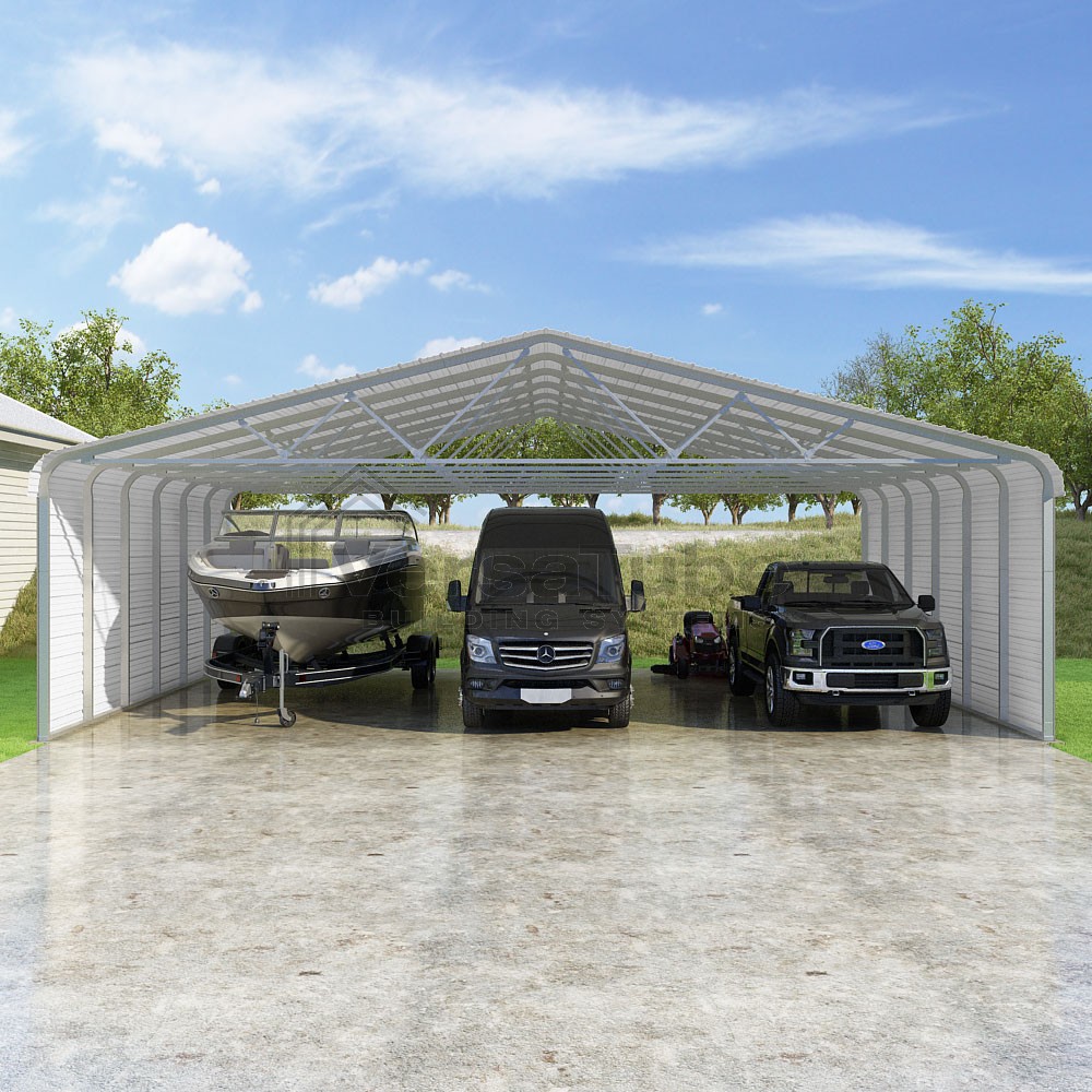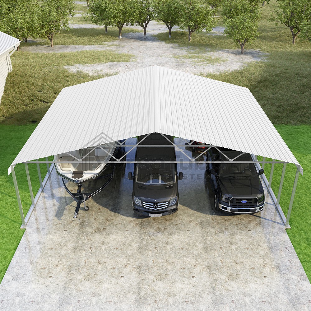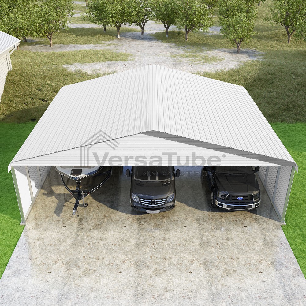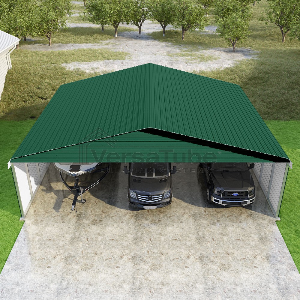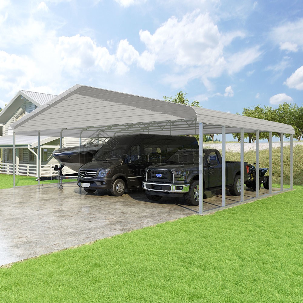 Classic Series DIY carport kit features horizontal application of sheet metal panels with the extra protection of rounded eaves.