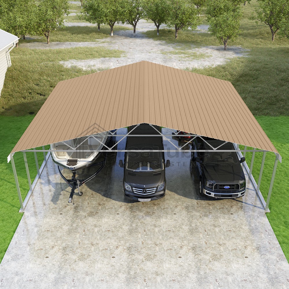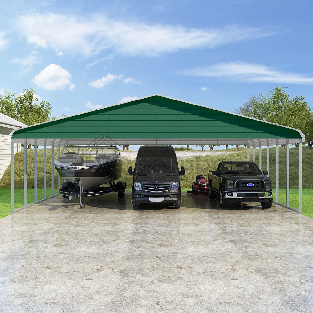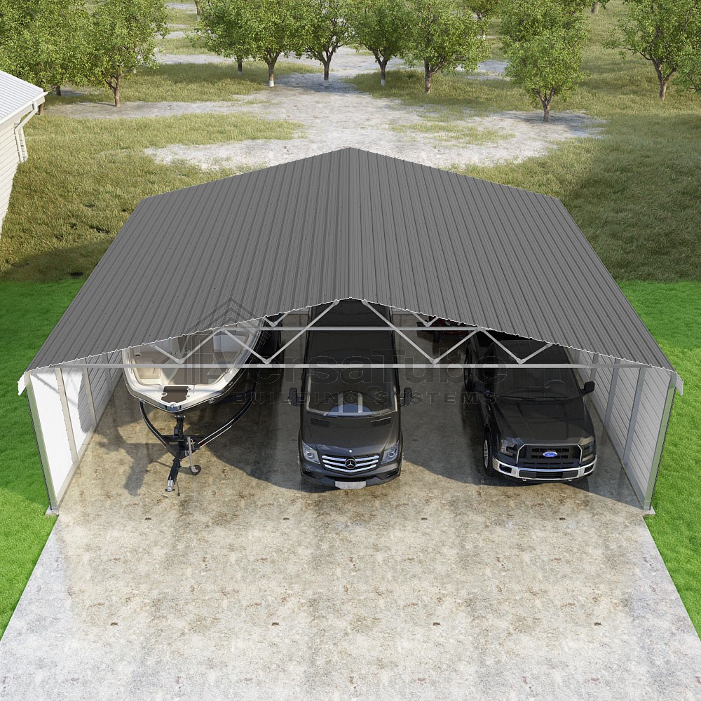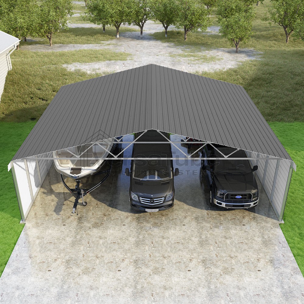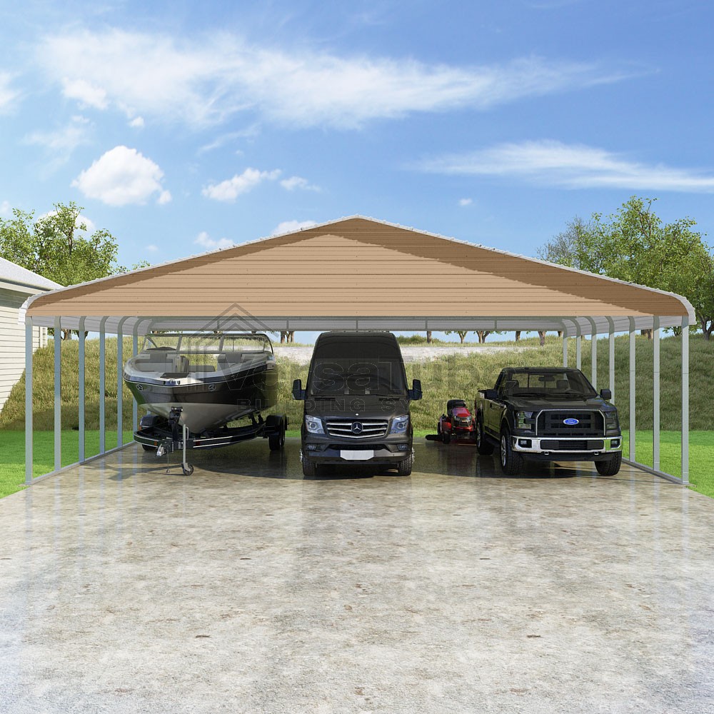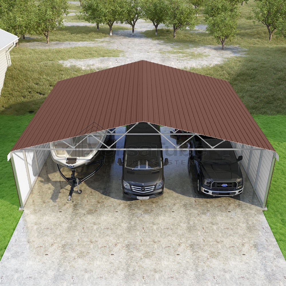 Classic Series DIY carport kit features horizontal application of sheet metal panels with the extra protection of rounded eaves.