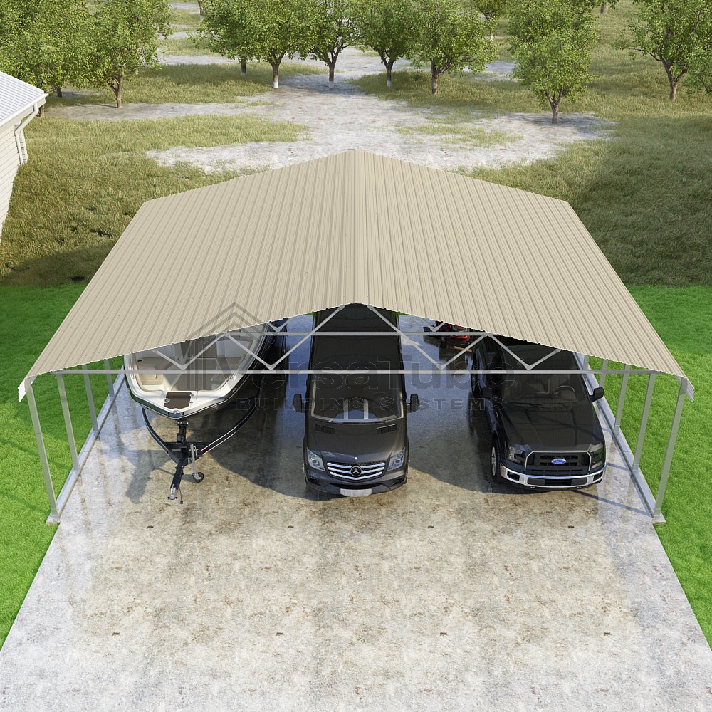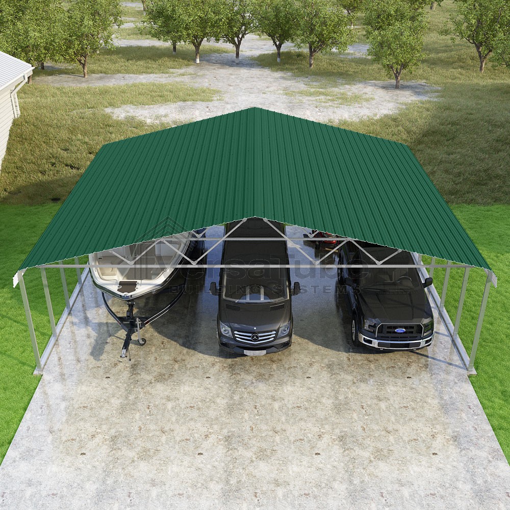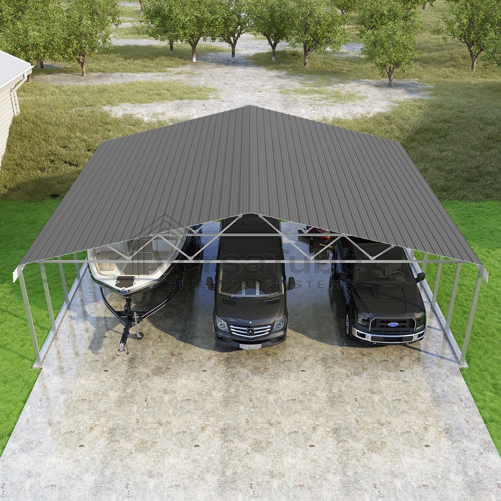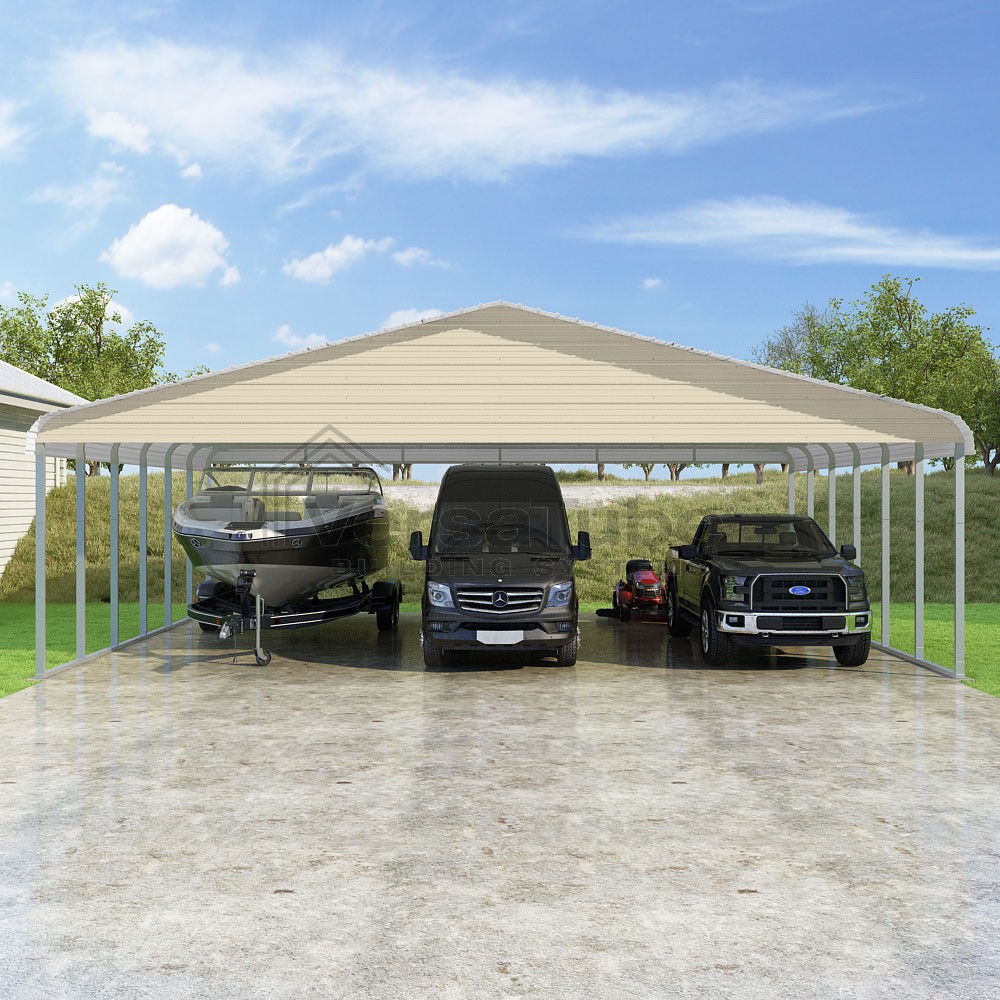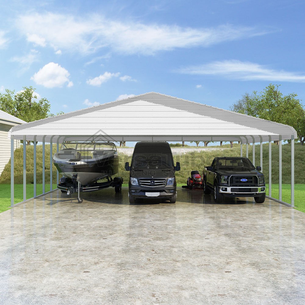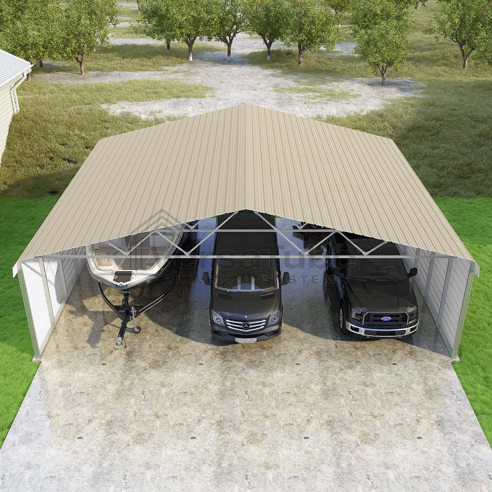 Classic Series DIY carport kit features horizontal application of sheet metal panels with the extra protection of rounded eaves.