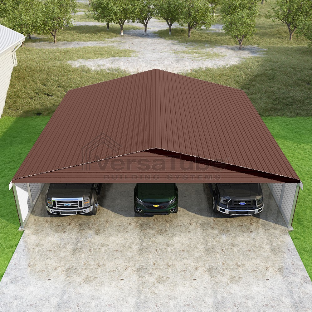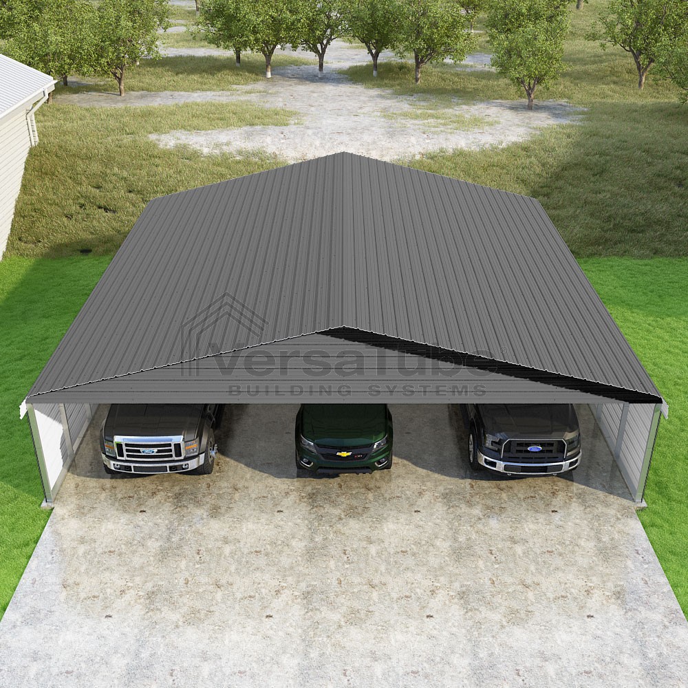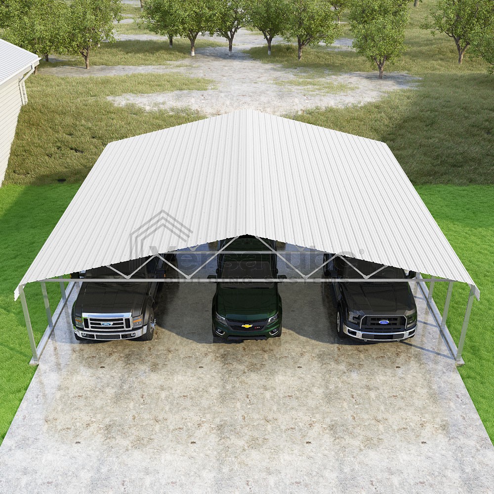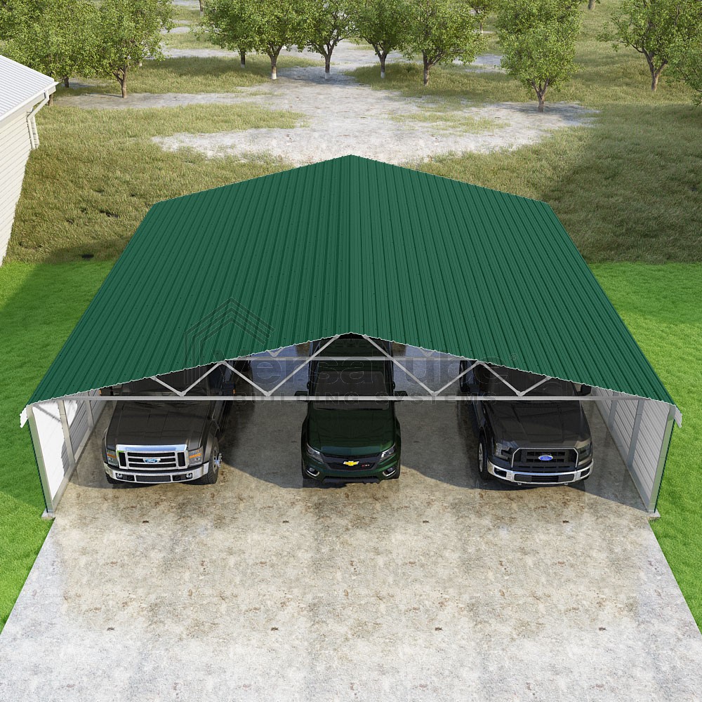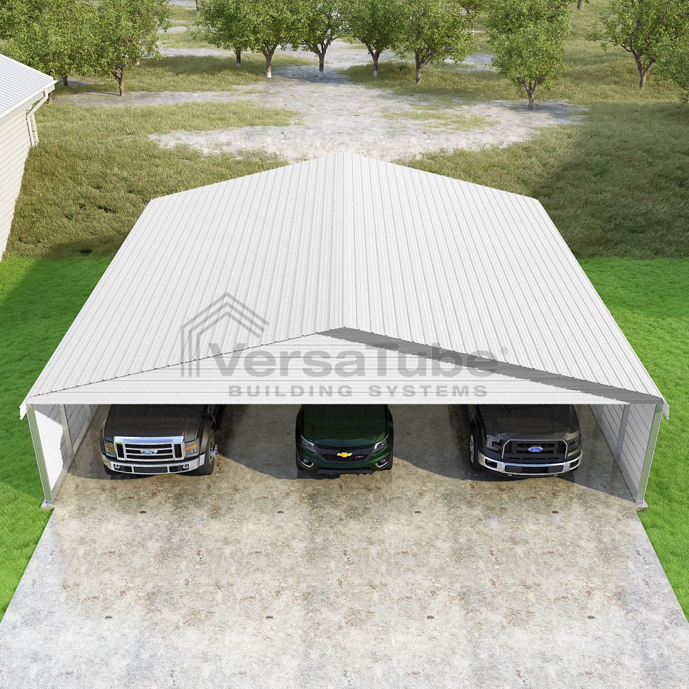 Classic Series DIY carport kit features horizontal application of sheet metal panels with the extra protection of rounded eaves.