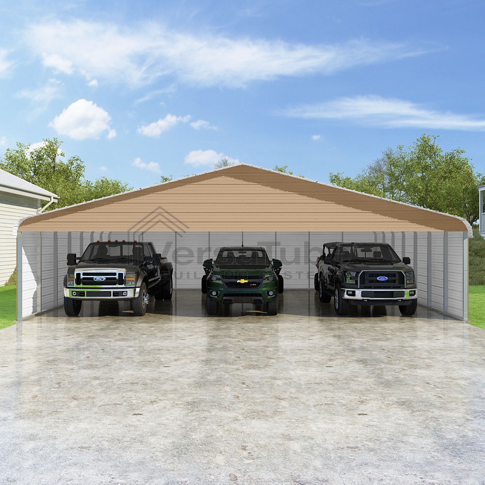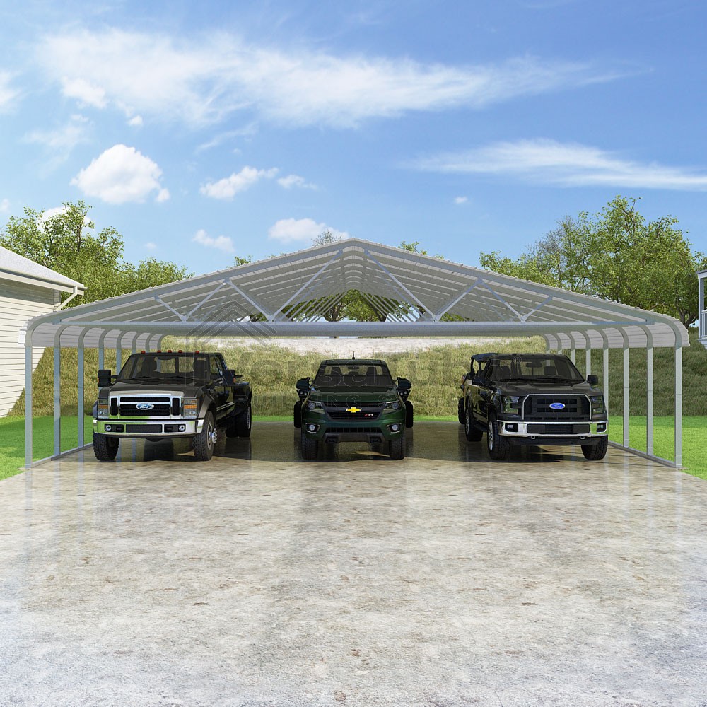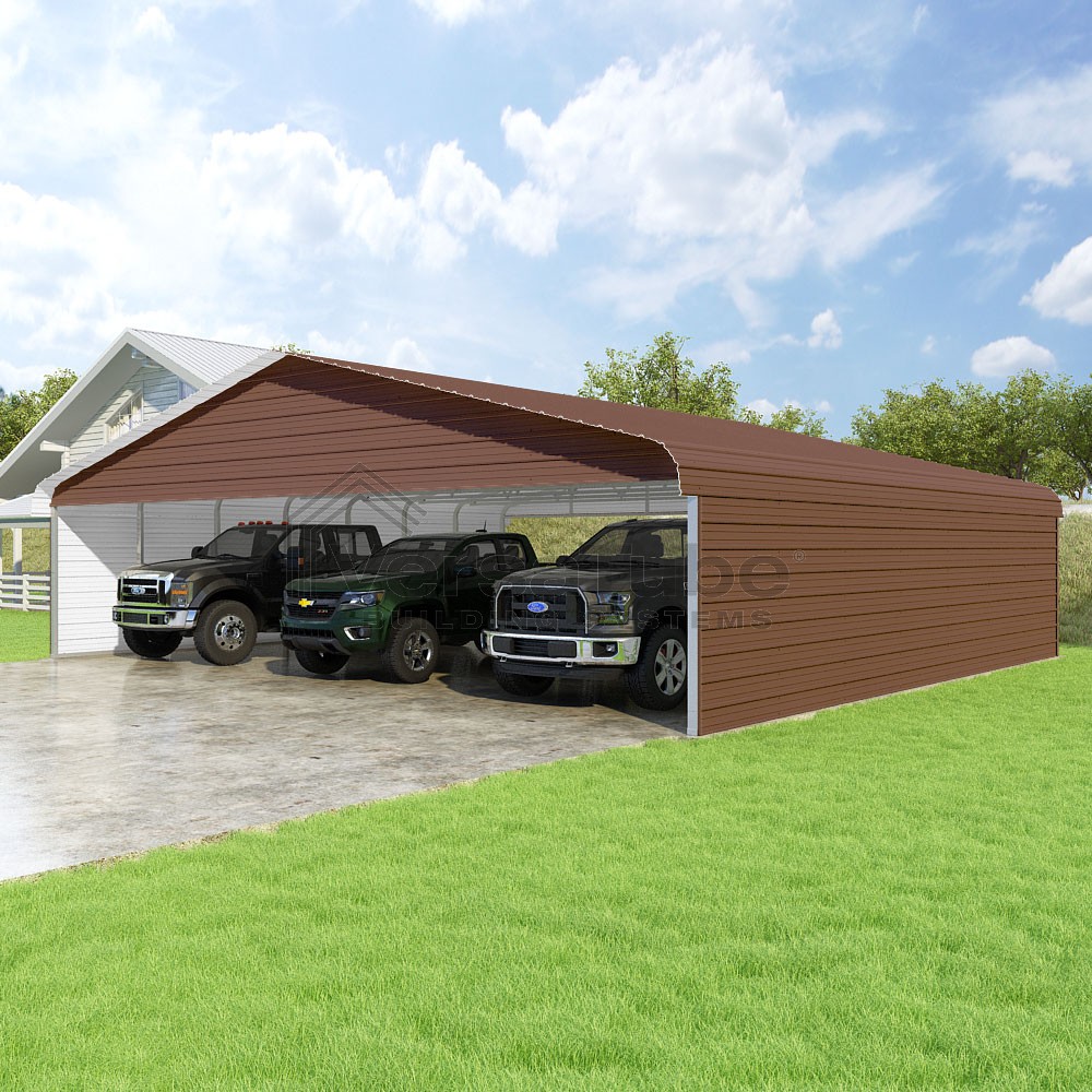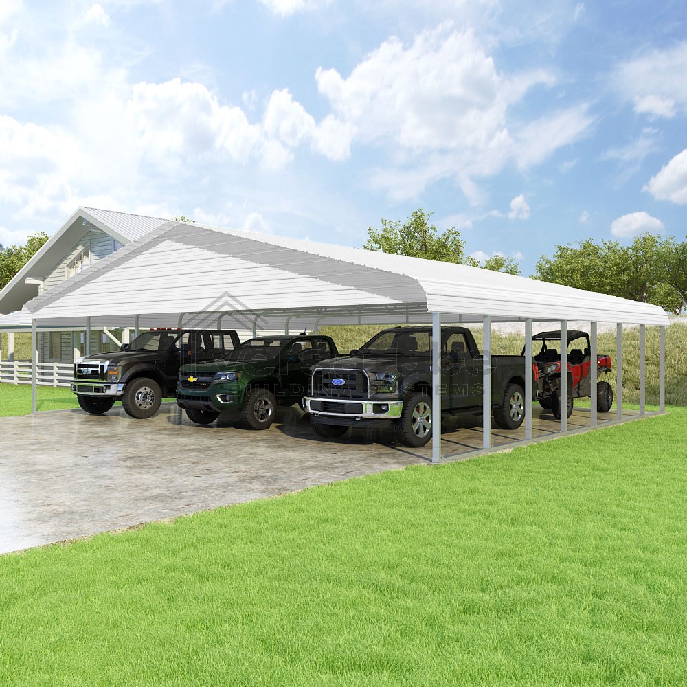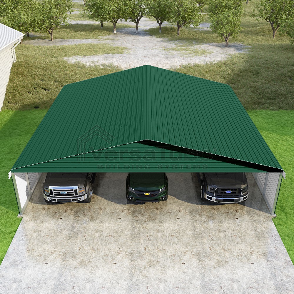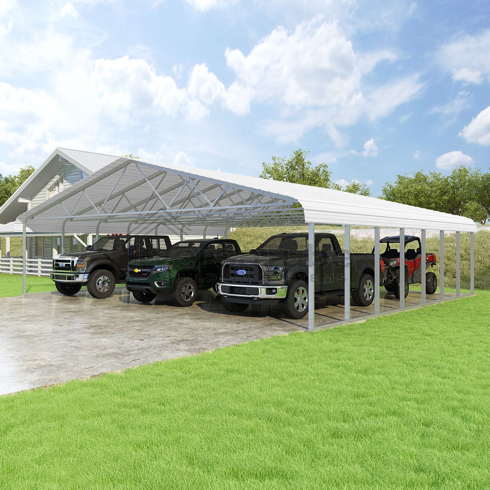 Classic Series DIY carport kit features horizontal application of sheet metal panels with the extra protection of rounded eaves.