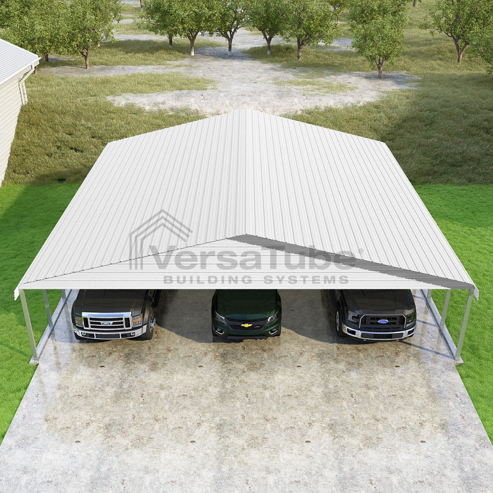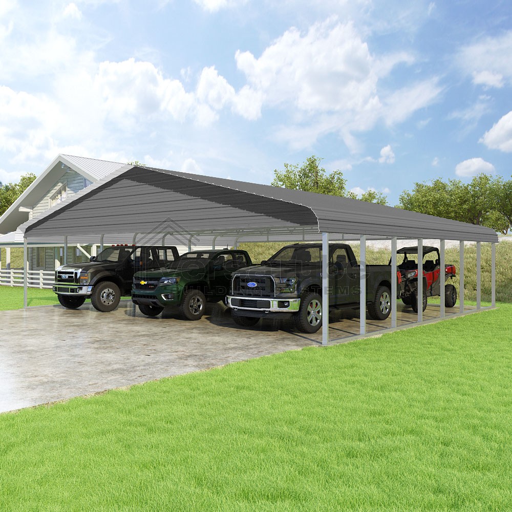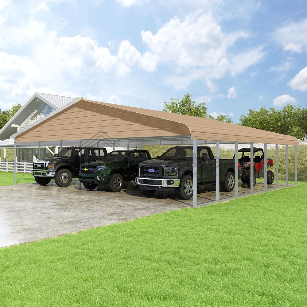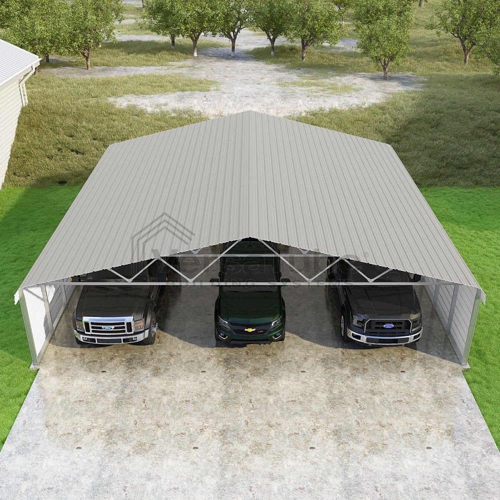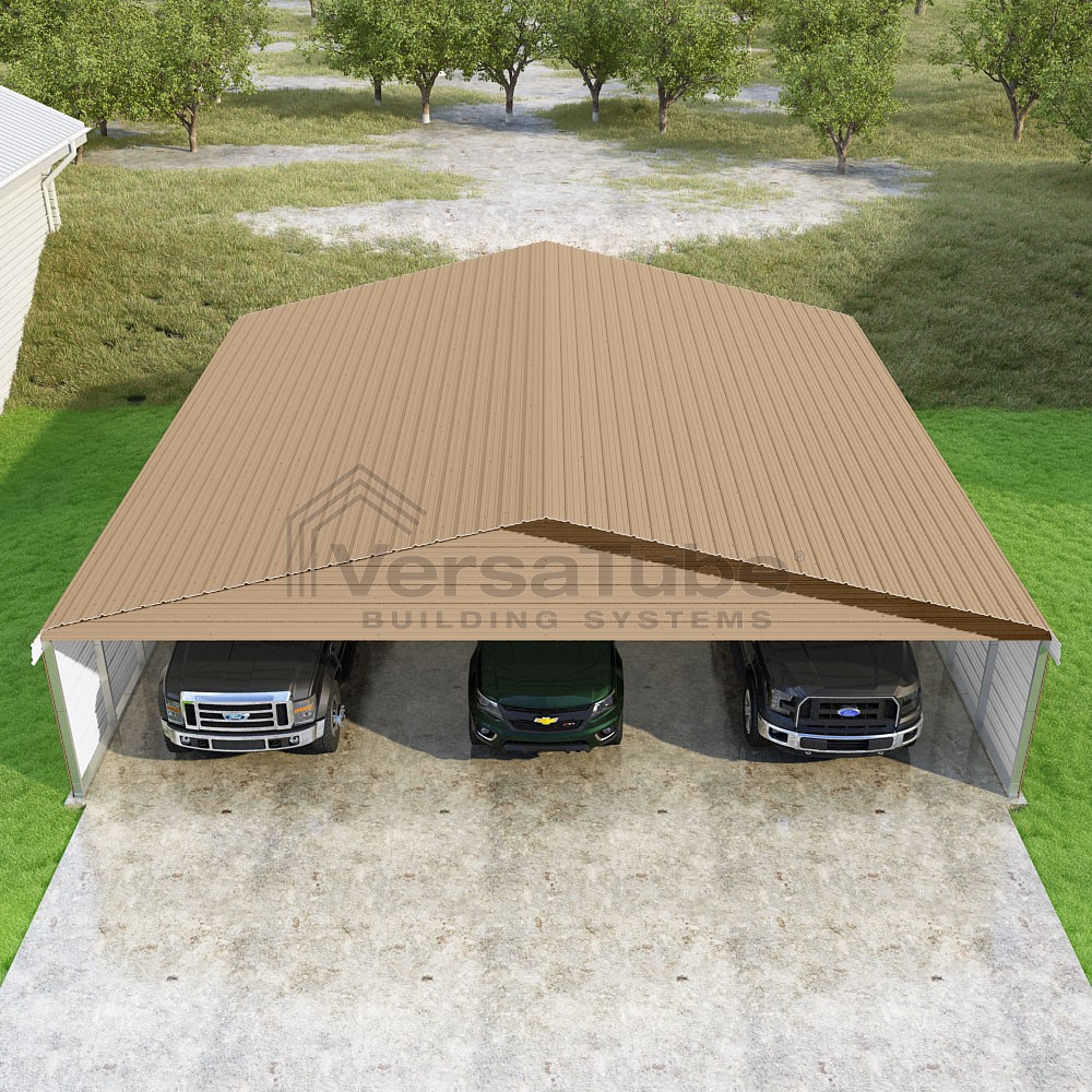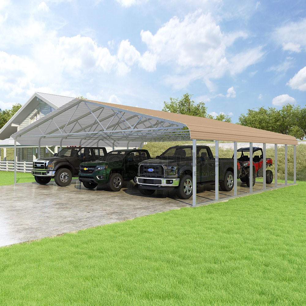 Classic Series DIY carport kit features horizontal application of sheet metal panels with the extra protection of rounded eaves.