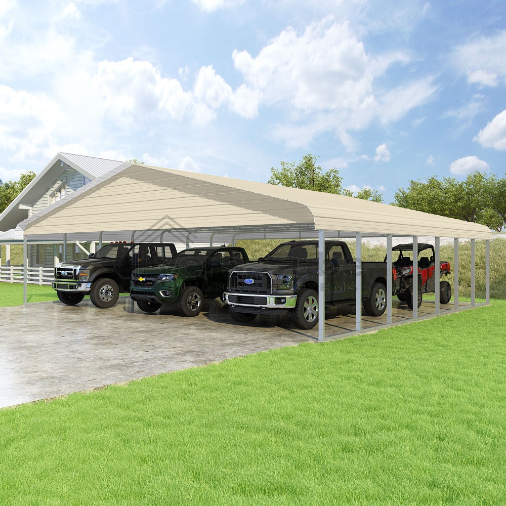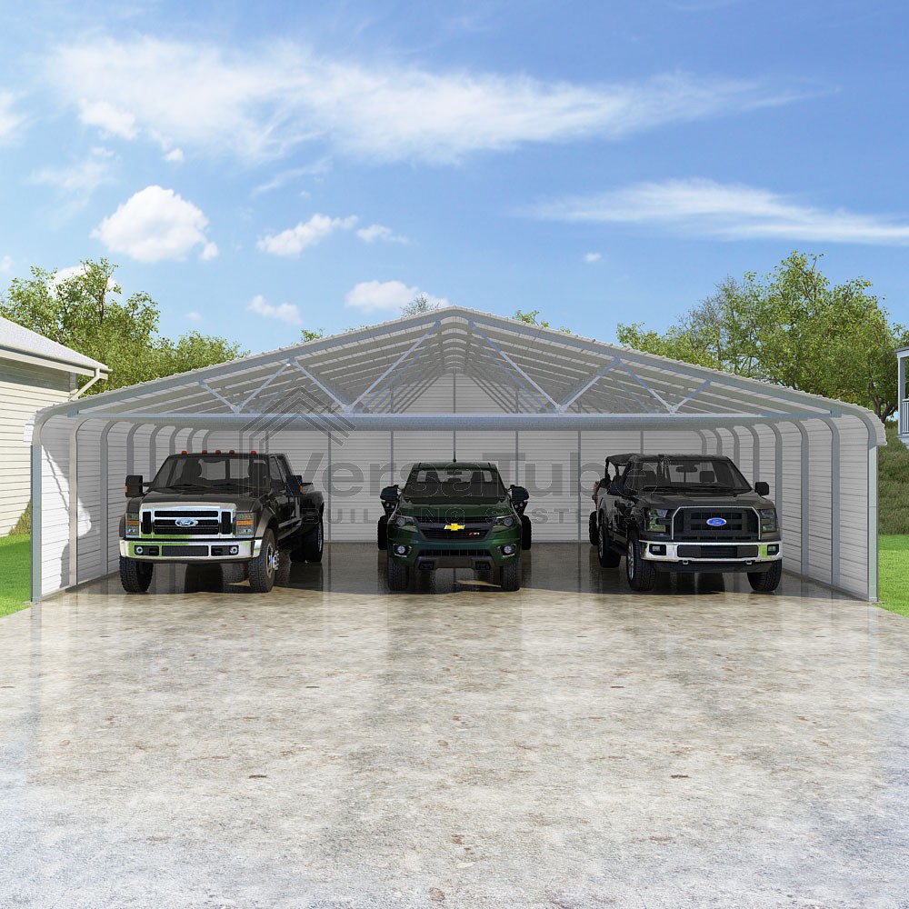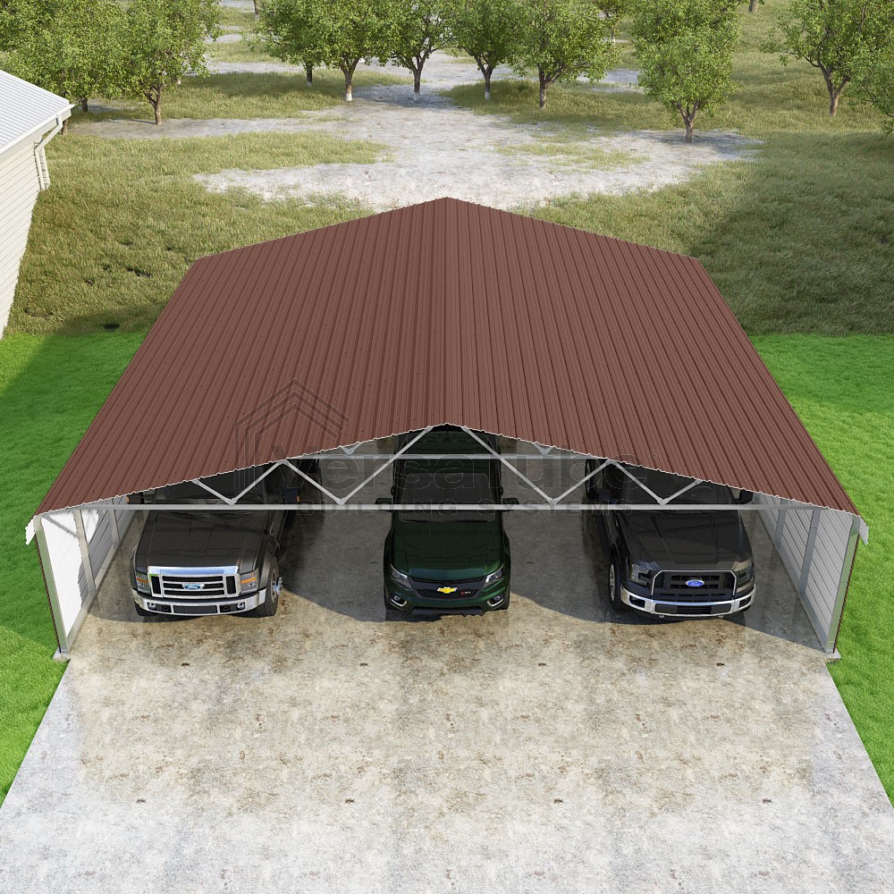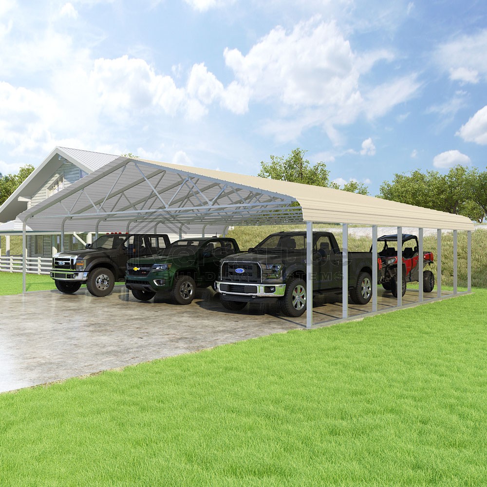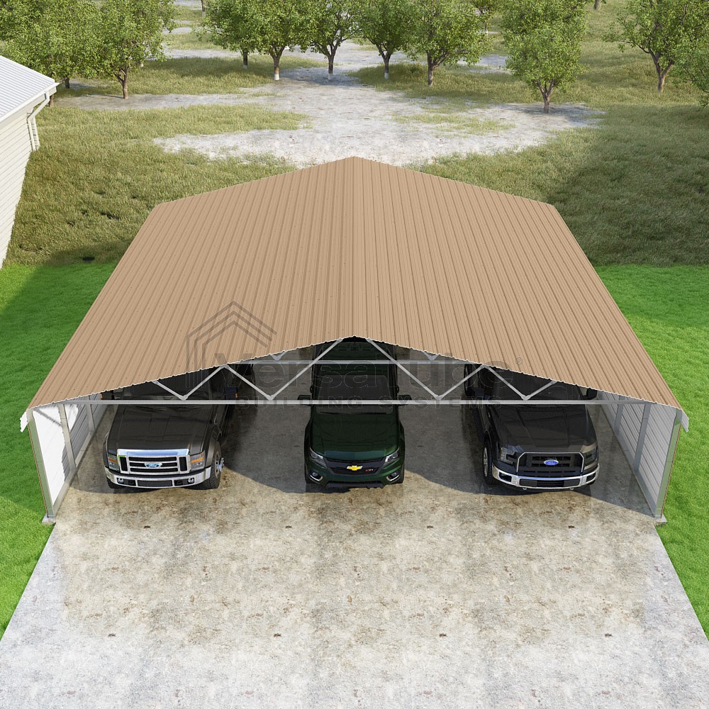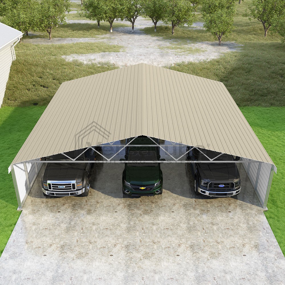 Classic Series DIY carport kit features horizontal application of sheet metal panels with the extra protection of rounded eaves.