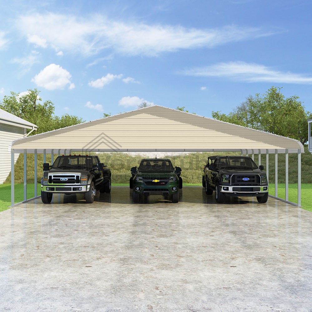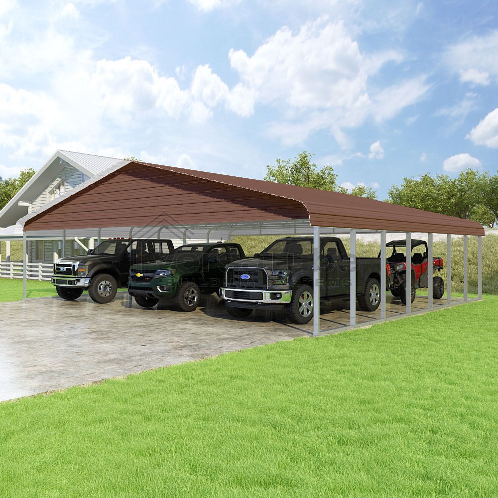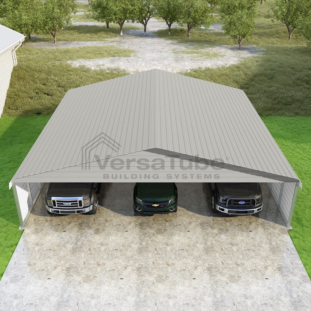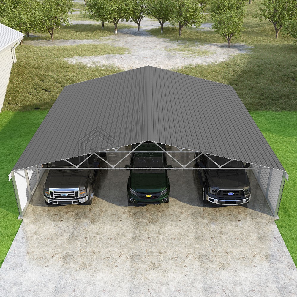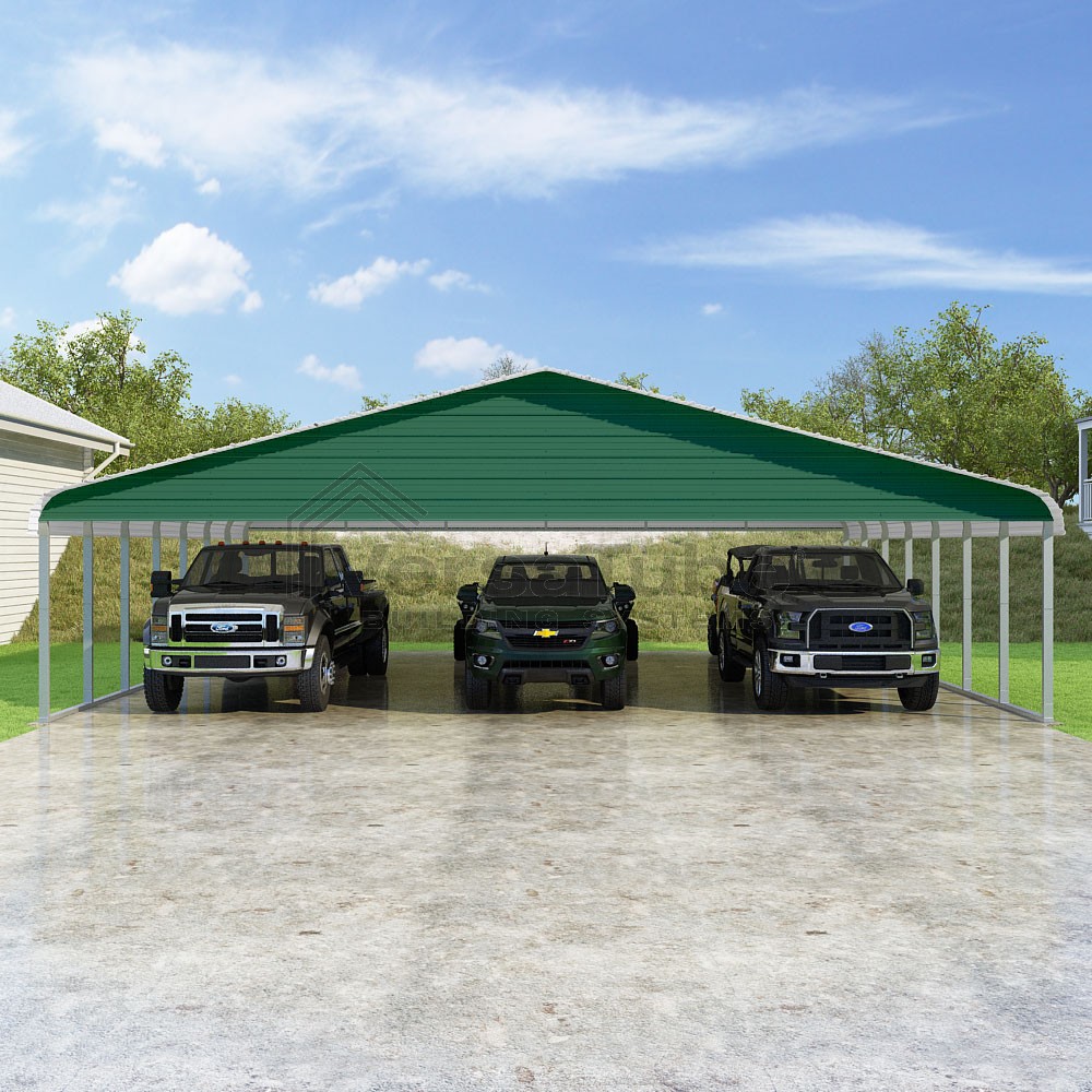 Classic Series DIY carport kit features horizontal application of sheet metal panels with the extra protection of rounded eaves.