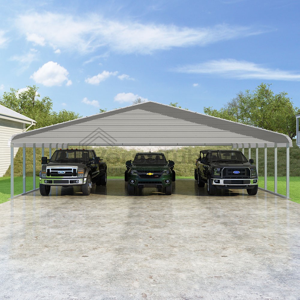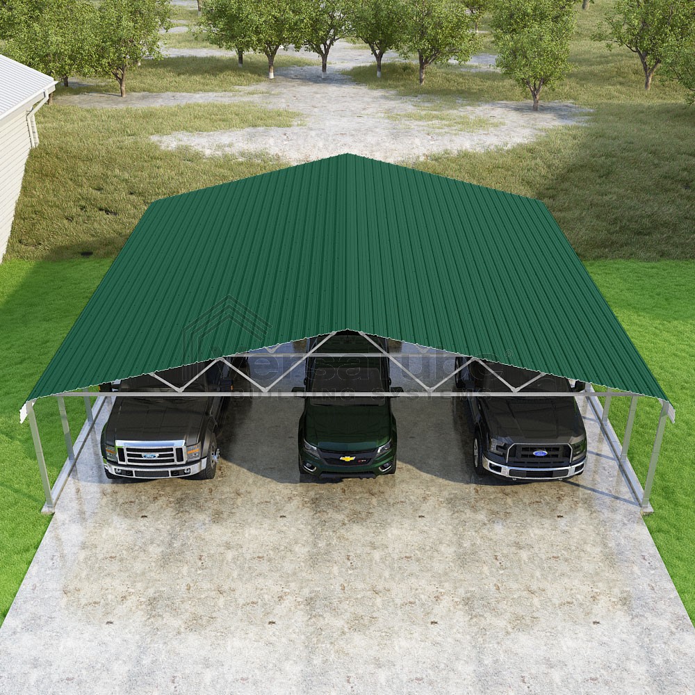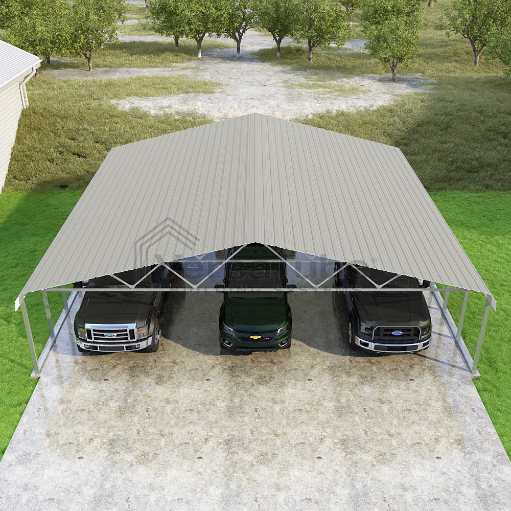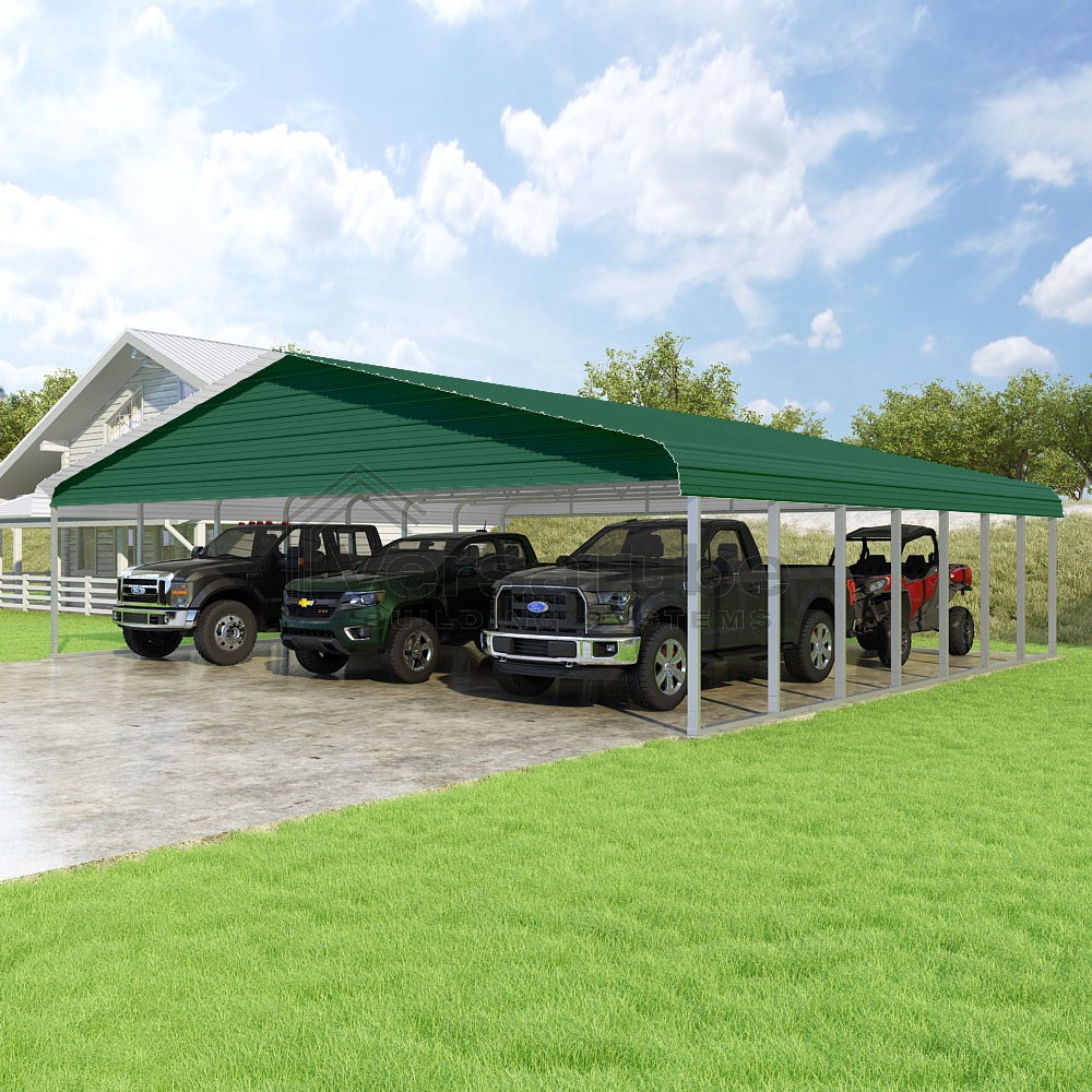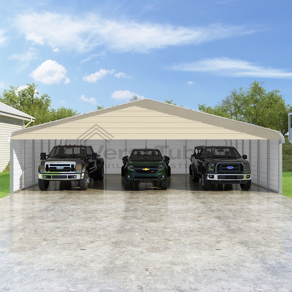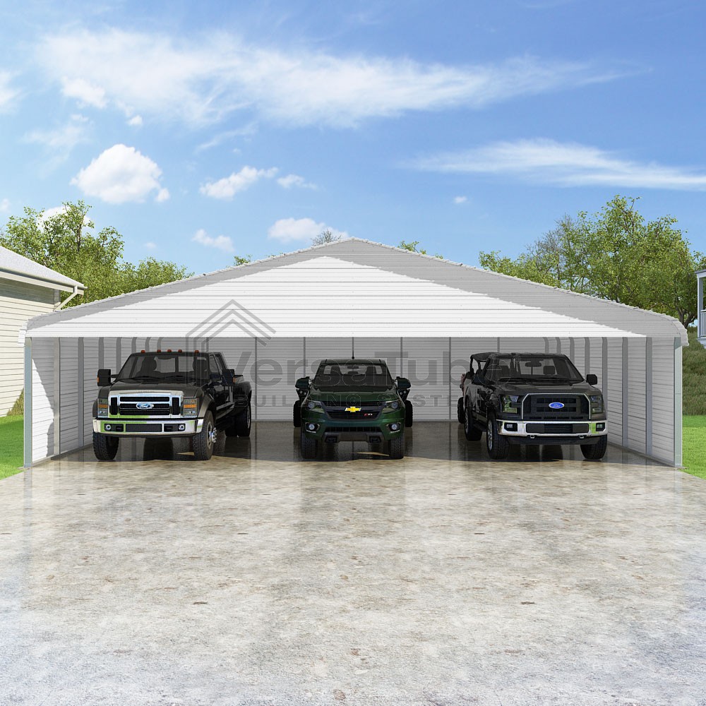 Classic Series DIY carport kit features horizontal application of sheet metal panels with the extra protection of rounded eaves.