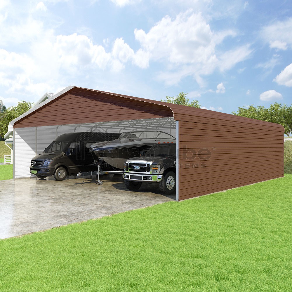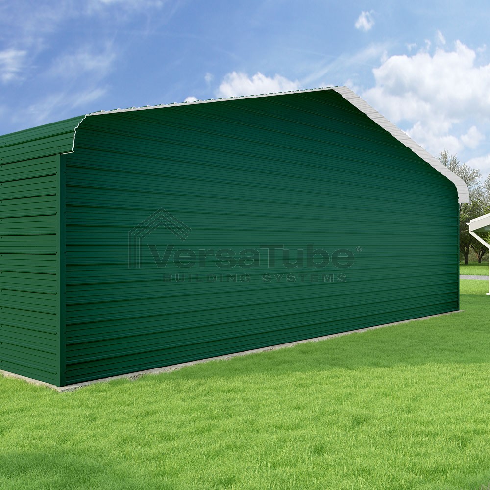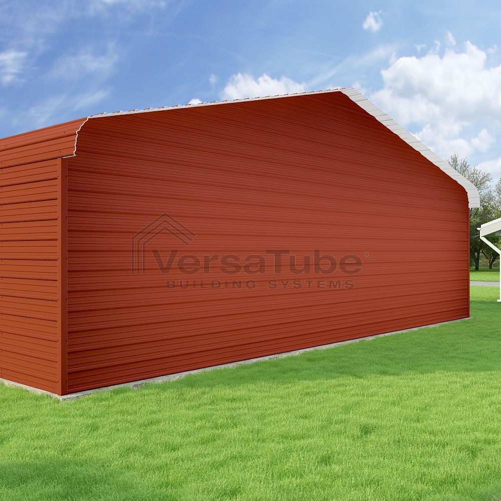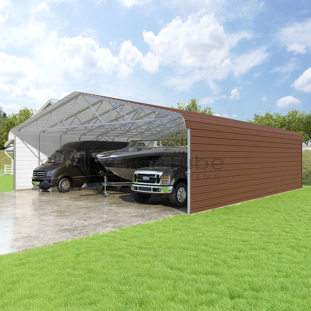 Classic Series DIY carport kit features horizontal application of sheet metal panels with the extra protection of rounded eaves.
