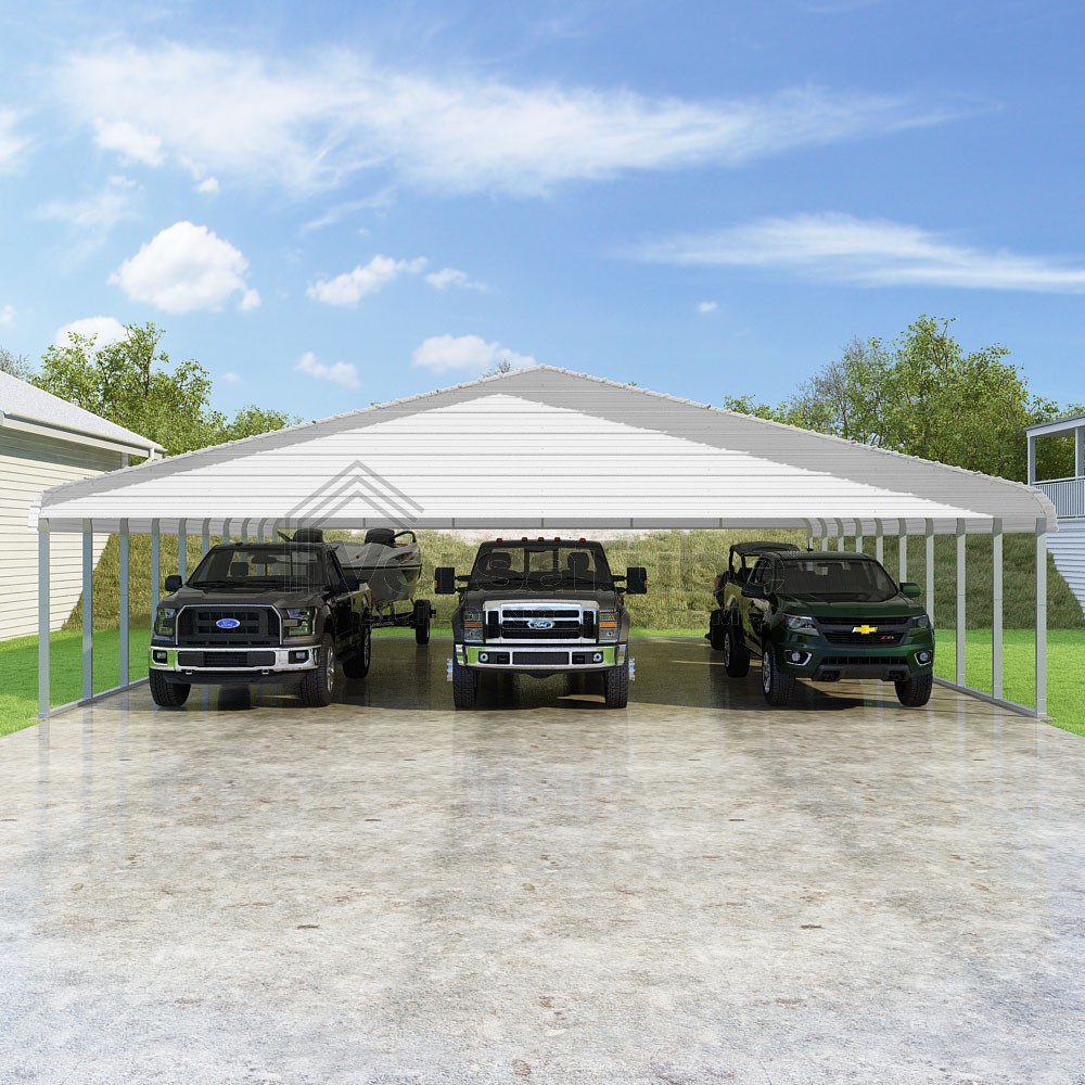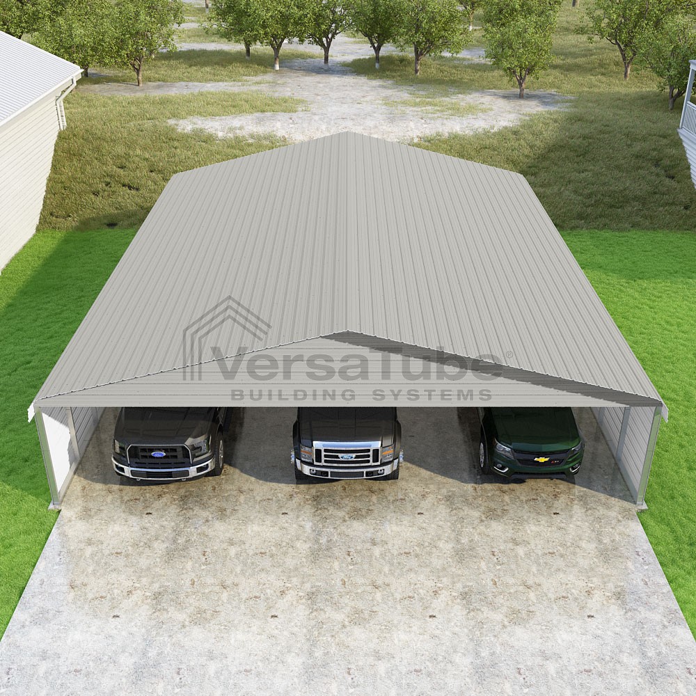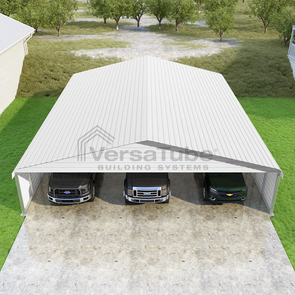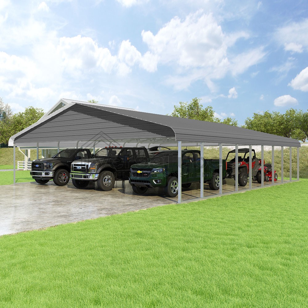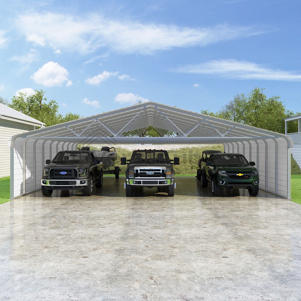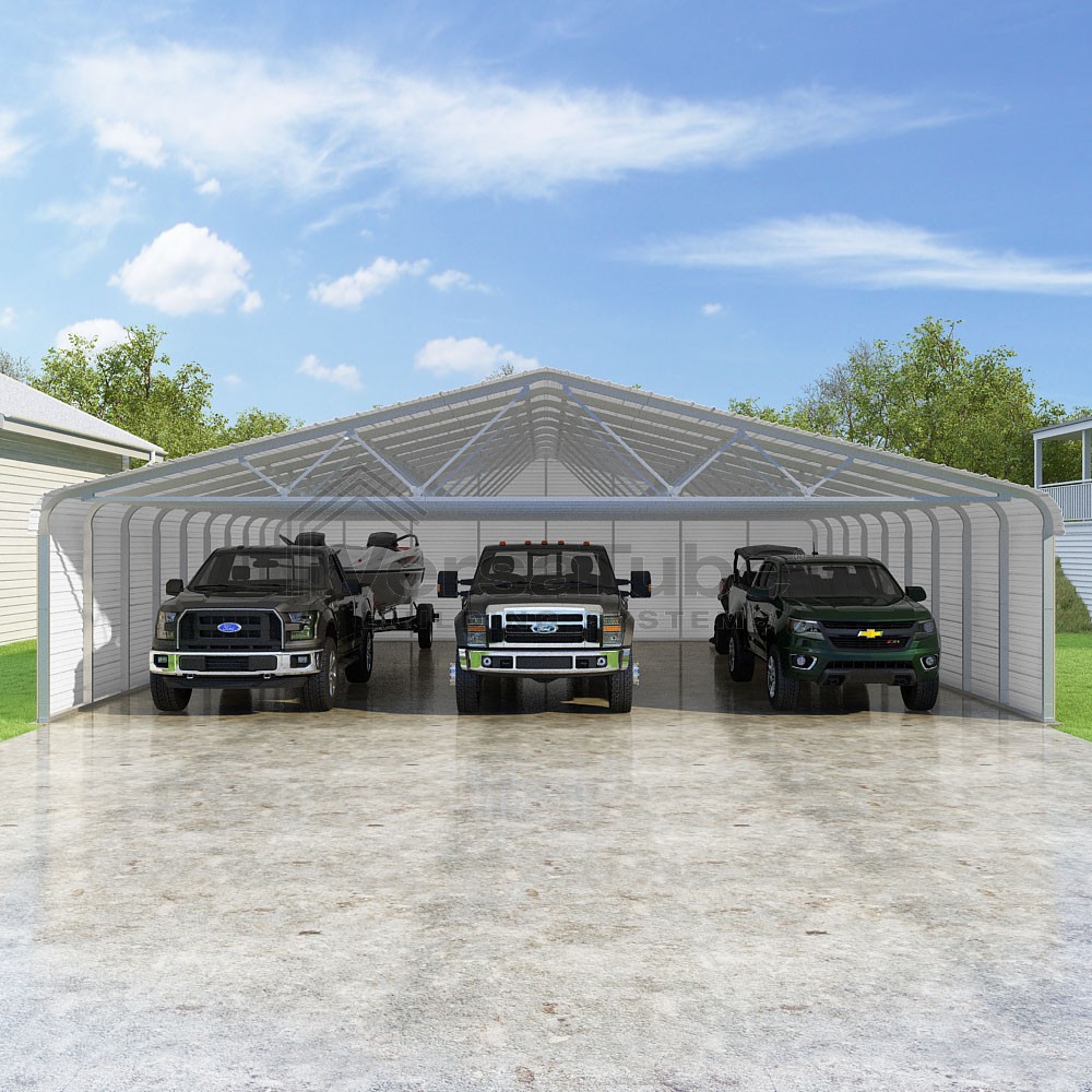 Classic Series DIY carport kit features horizontal application of sheet metal panels with the extra protection of rounded eaves.