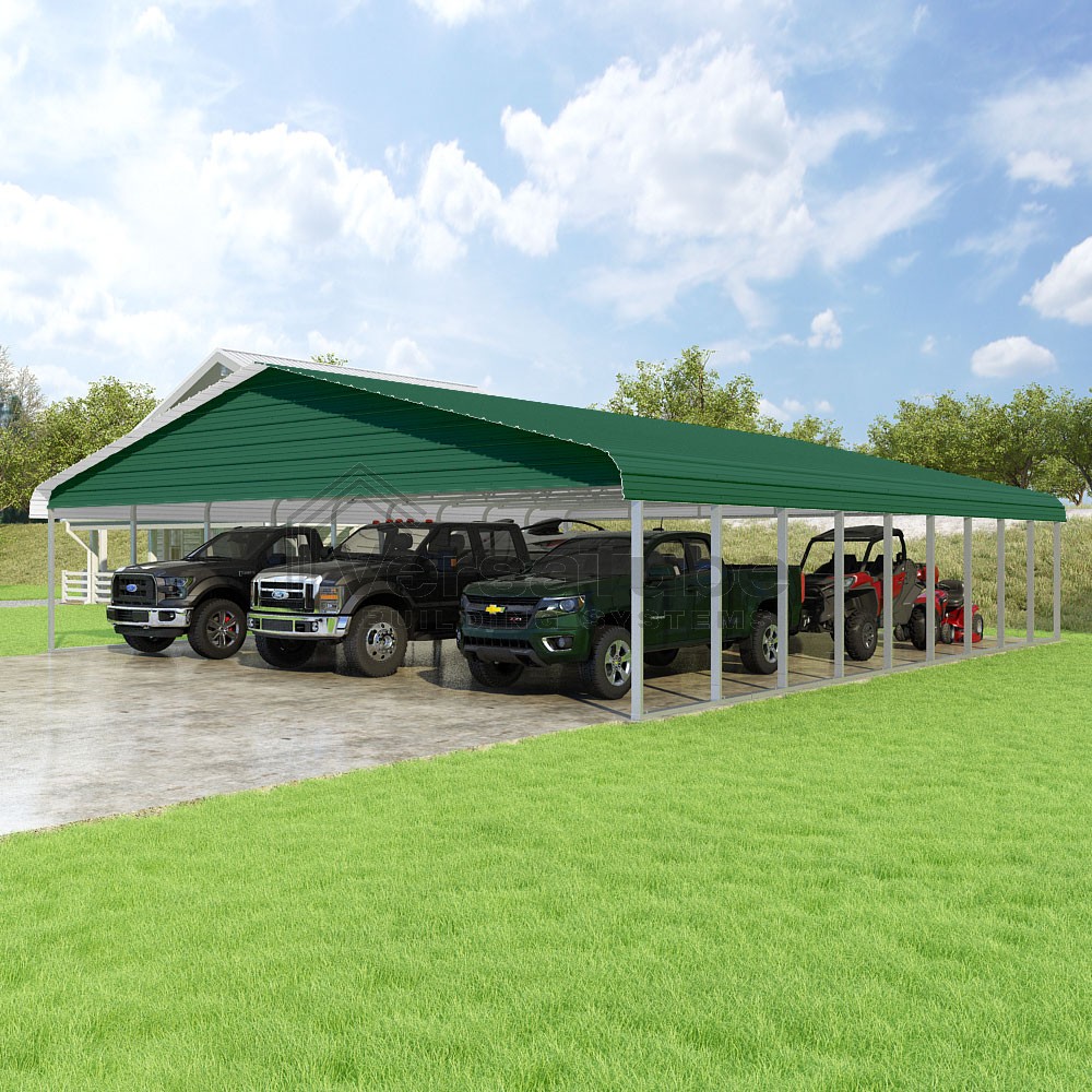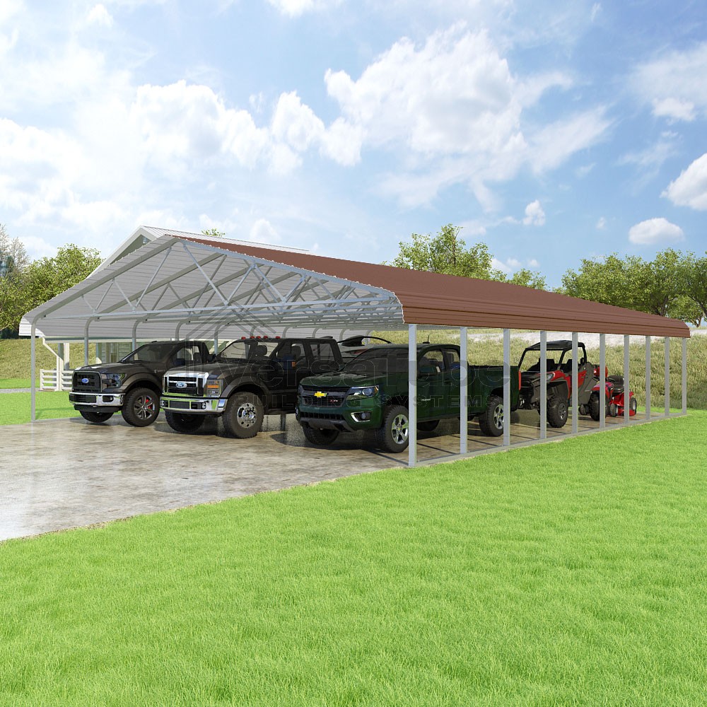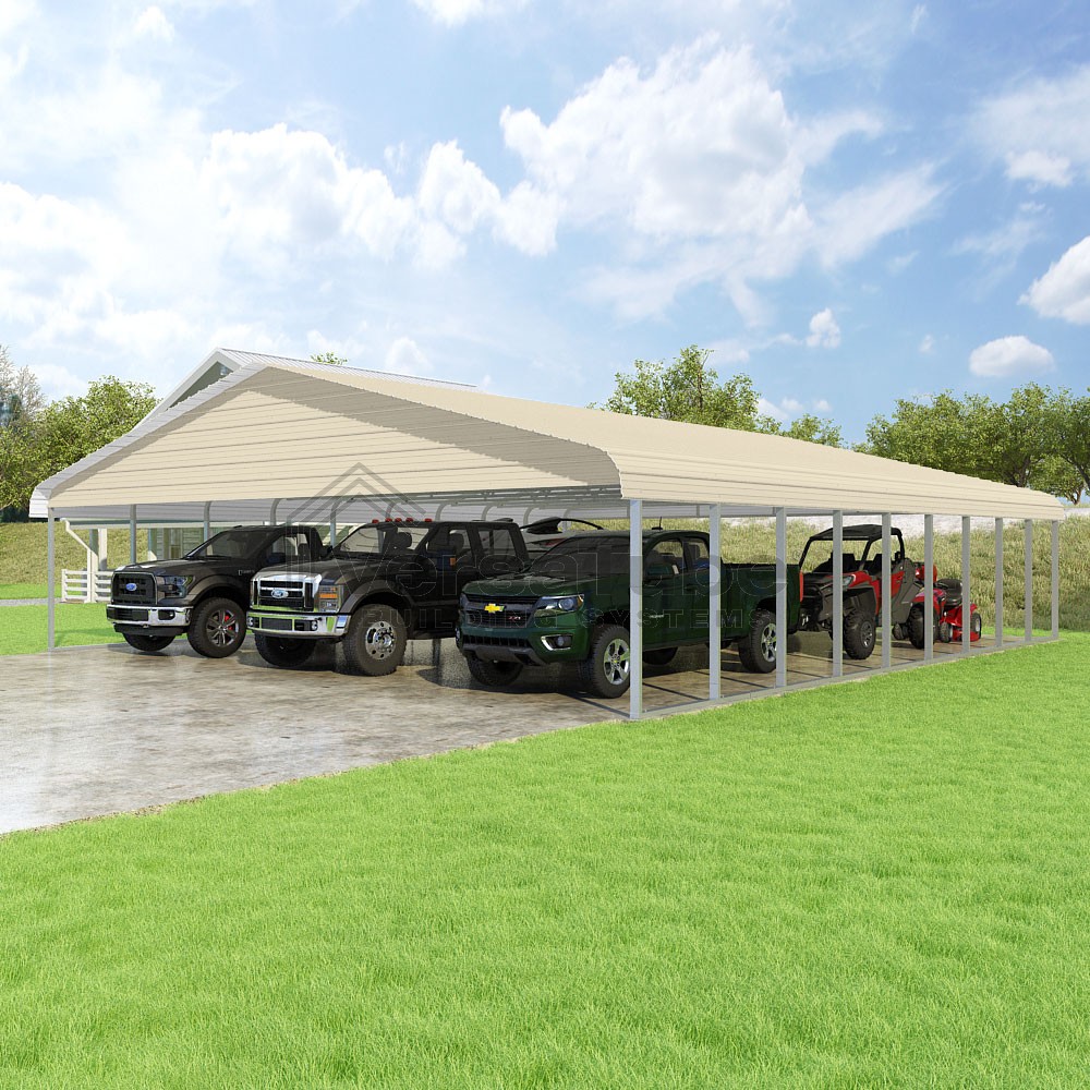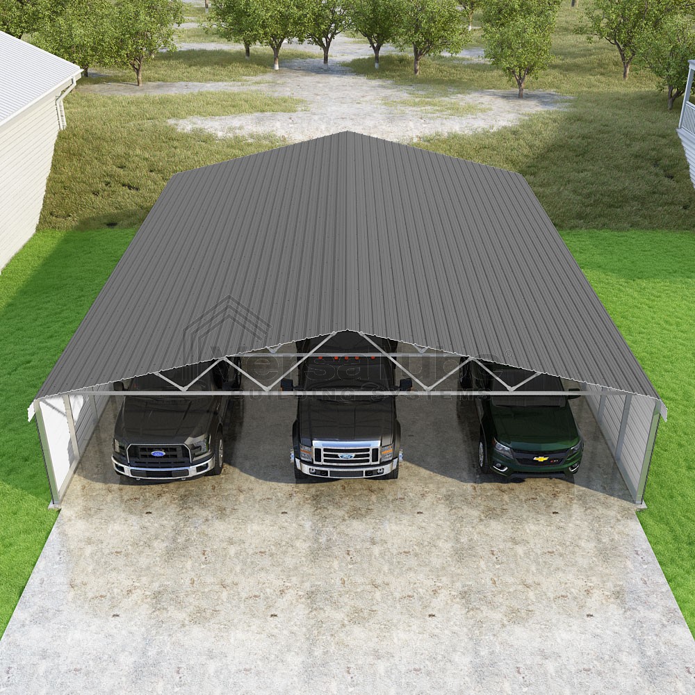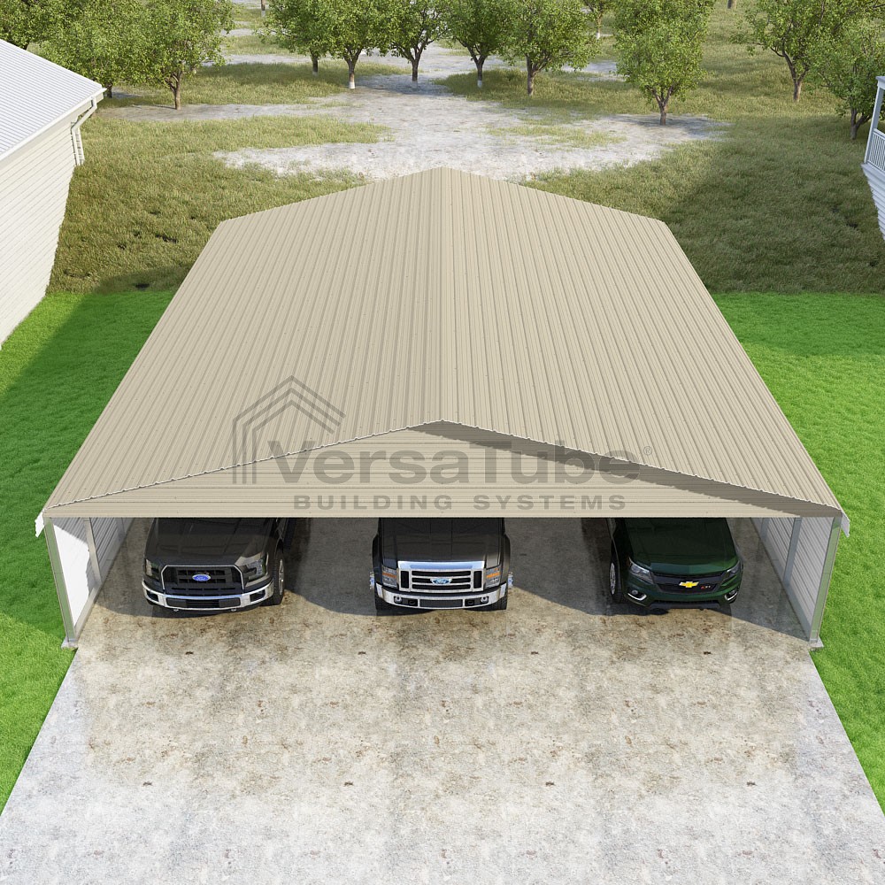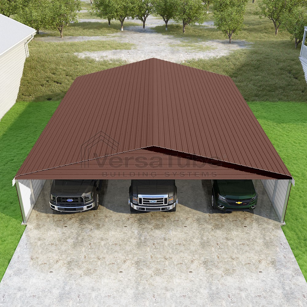 Classic Series DIY carport kit features horizontal application of sheet metal panels with the extra protection of rounded eaves.