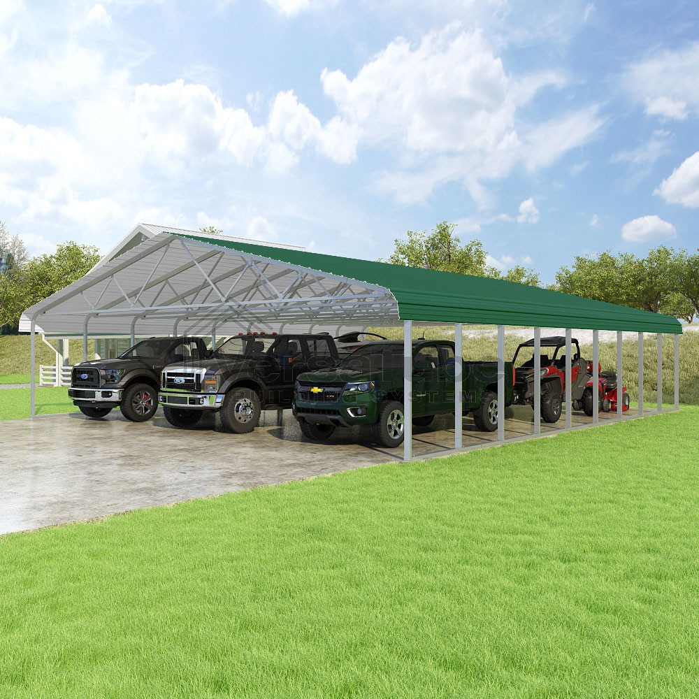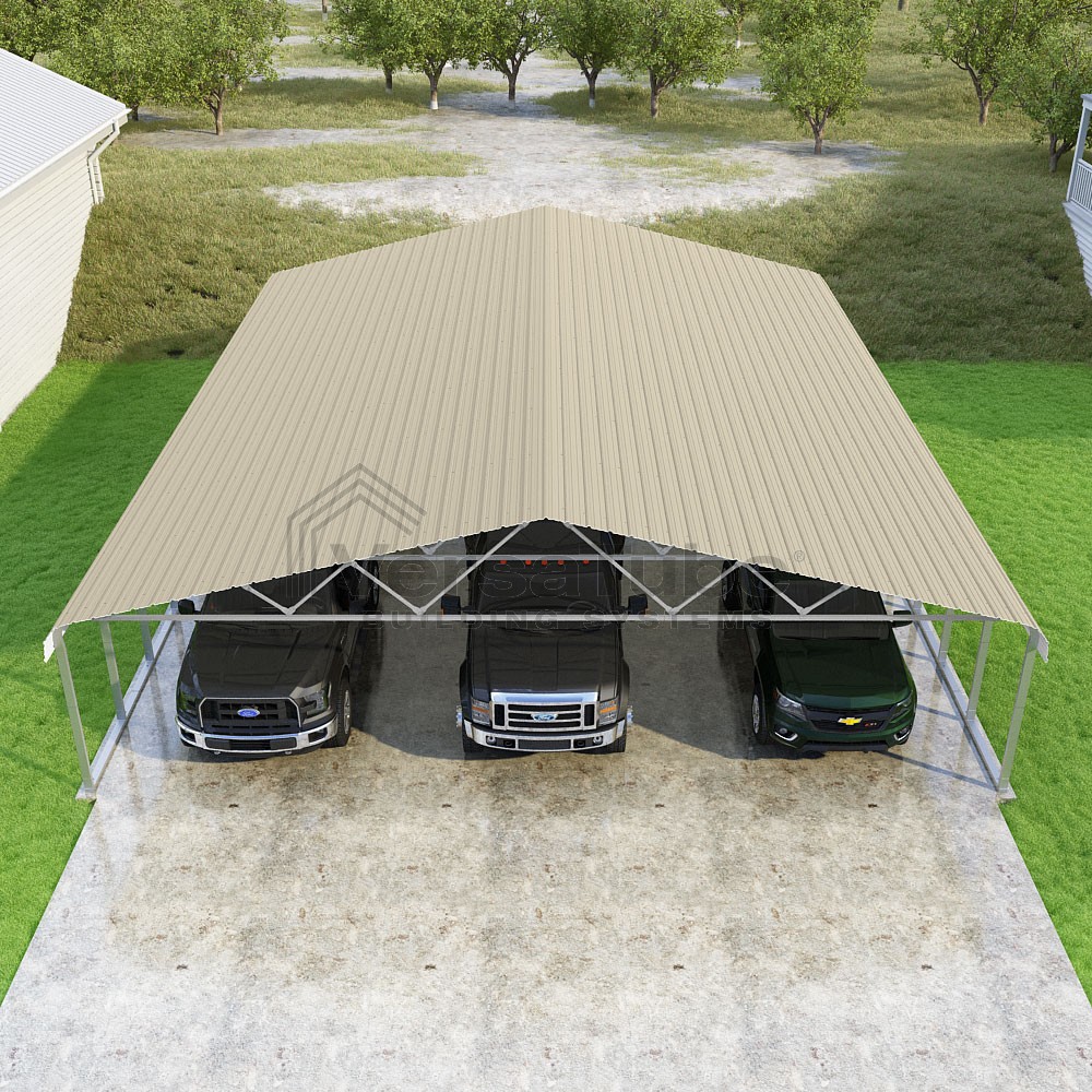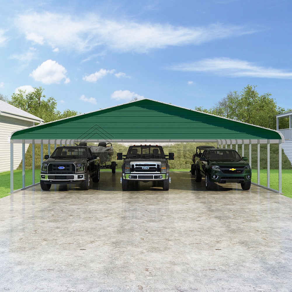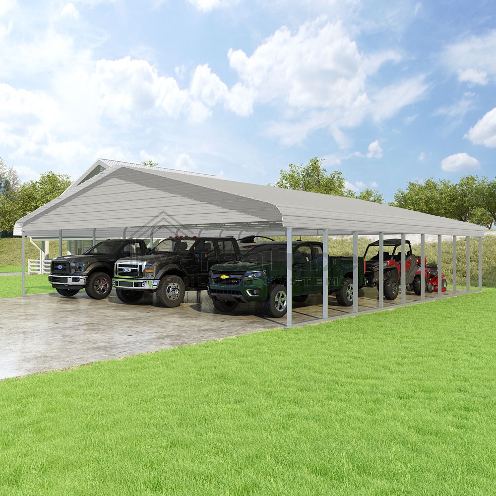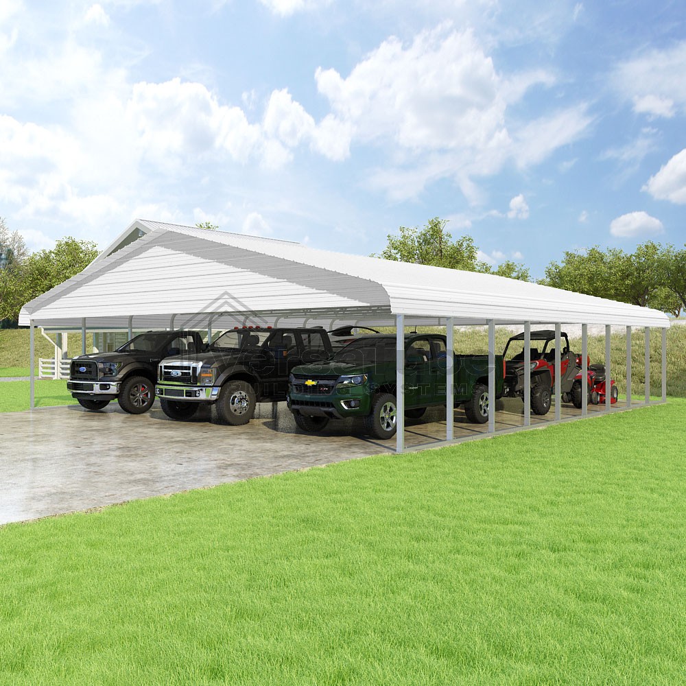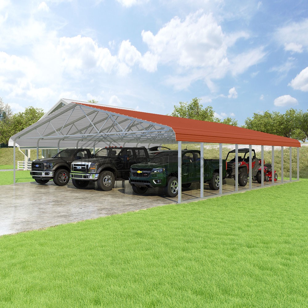 Classic Series DIY carport kit features horizontal application of sheet metal panels with the extra protection of rounded eaves.