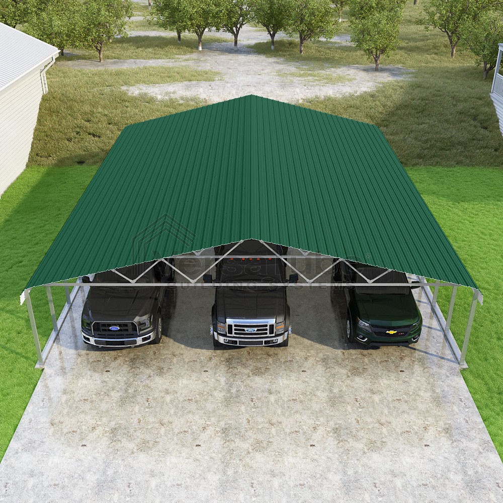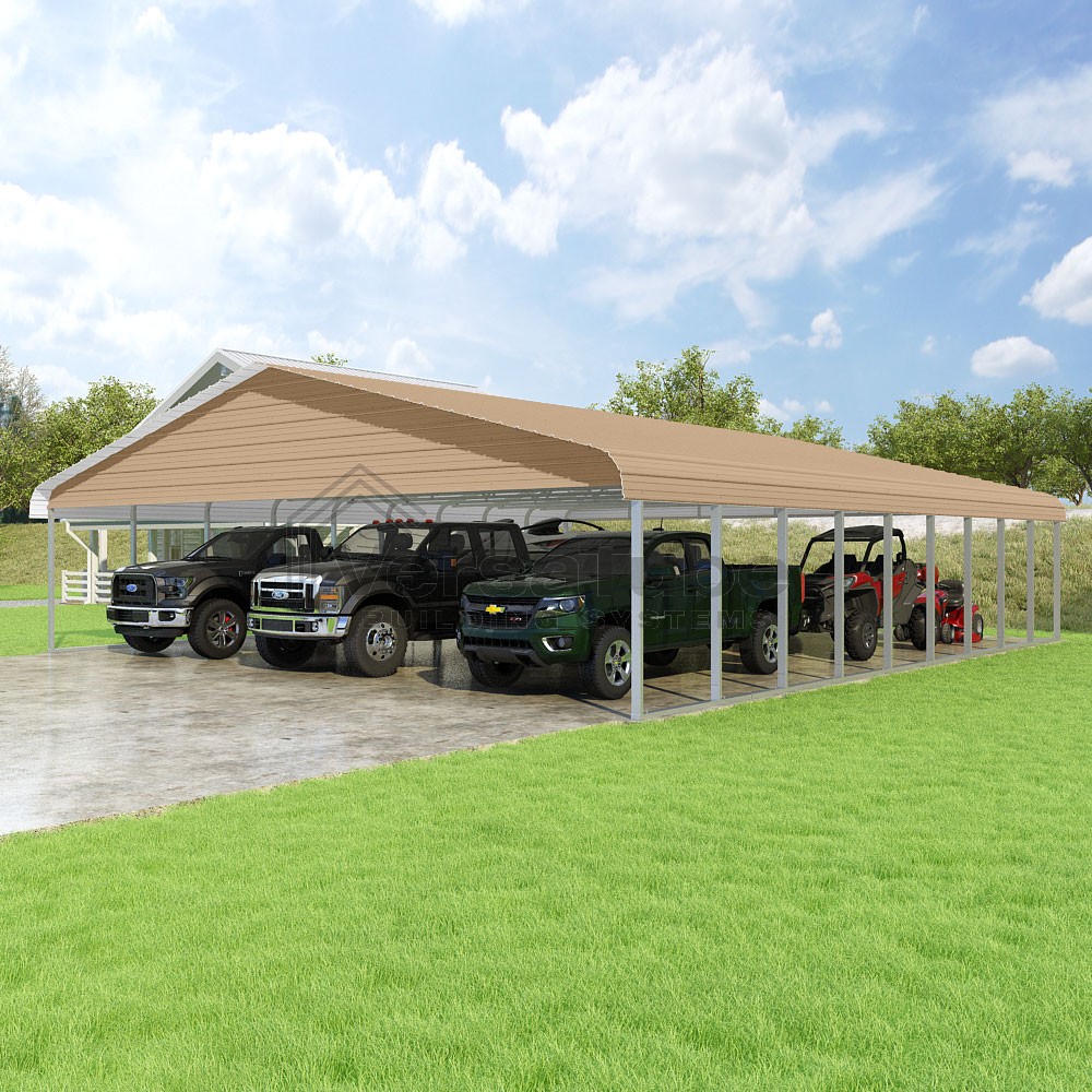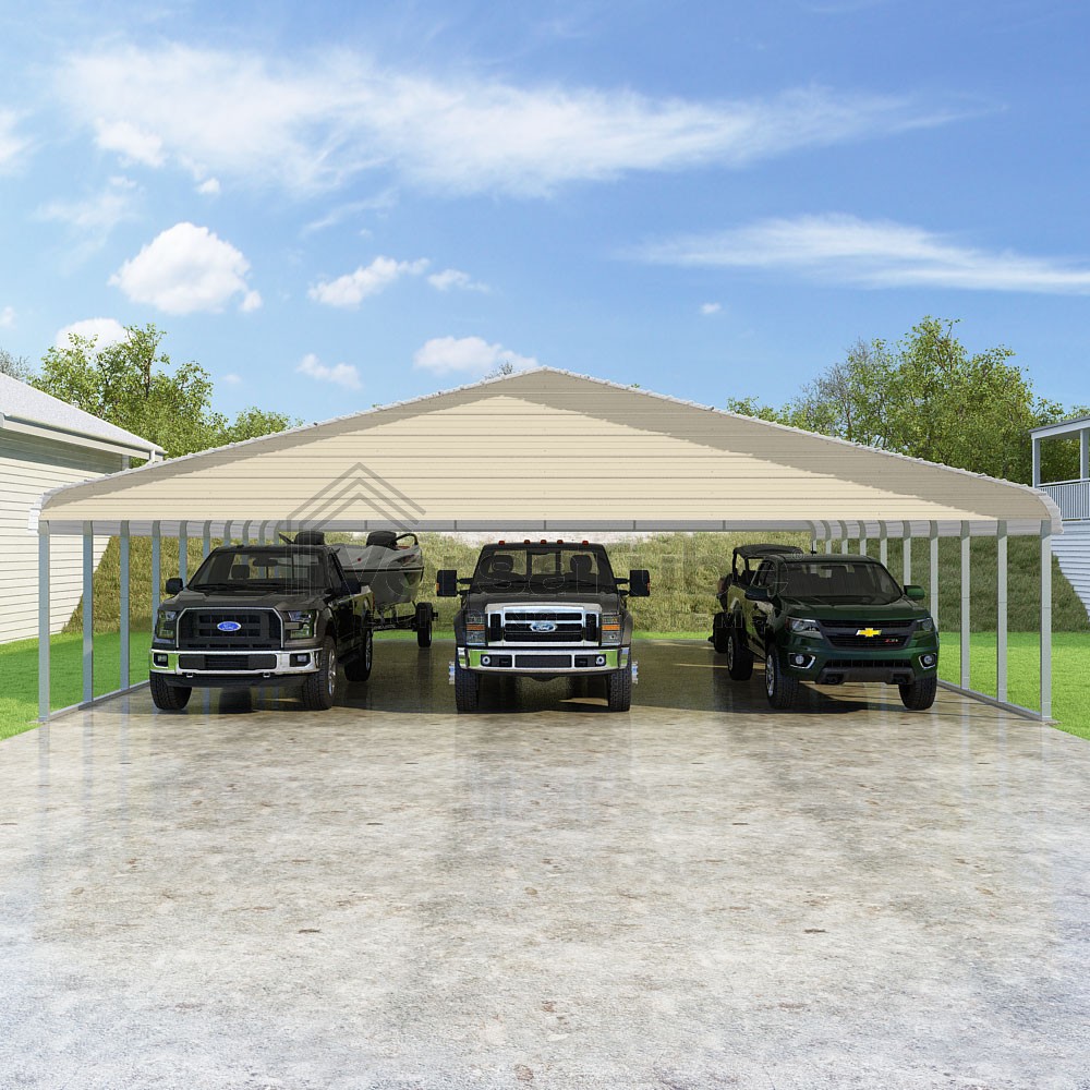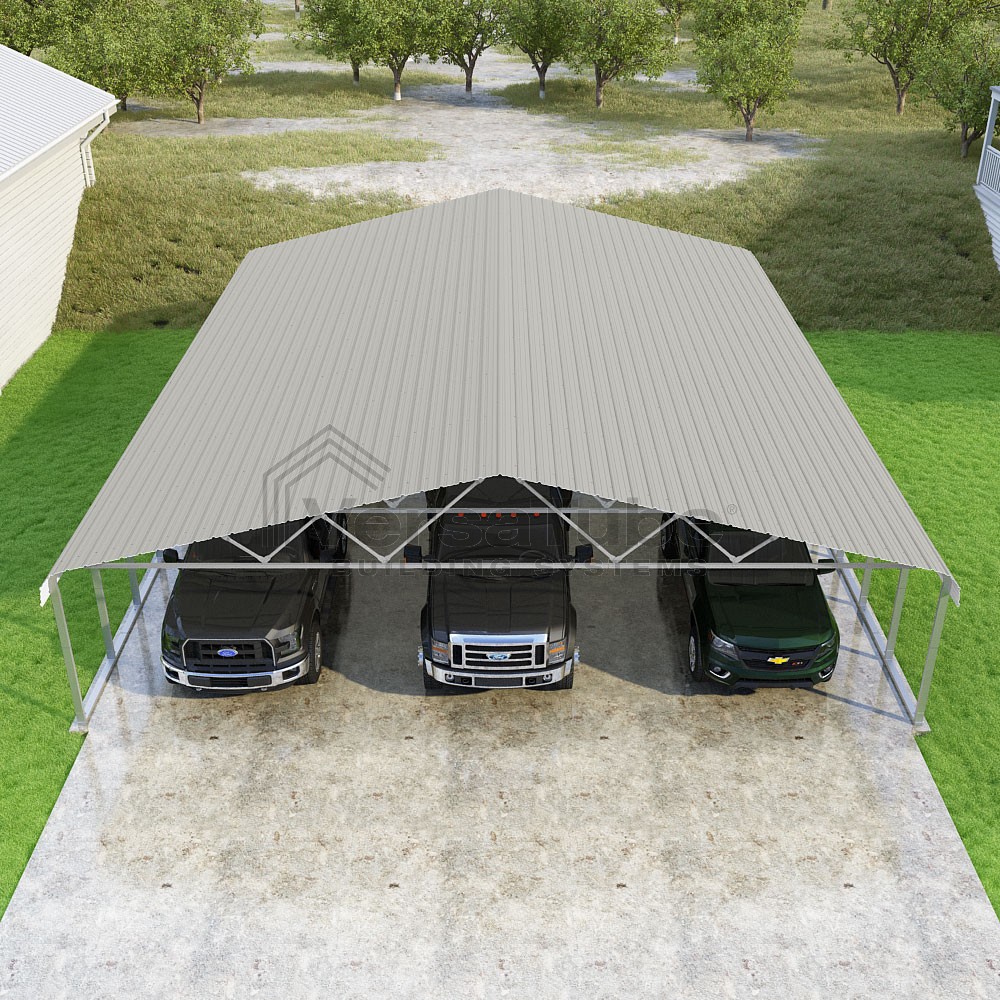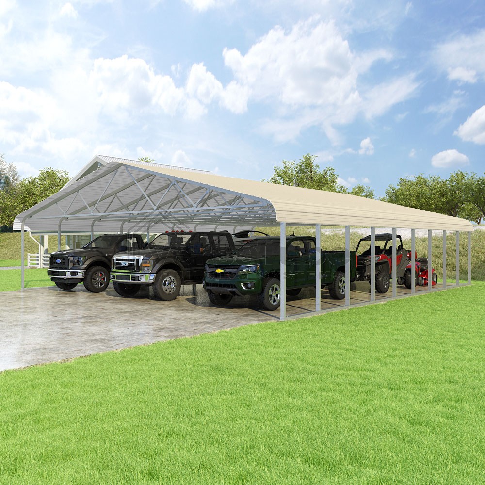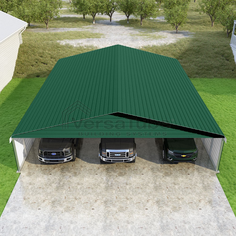 Classic Series DIY carport kit features horizontal application of sheet metal panels with the extra protection of rounded eaves.