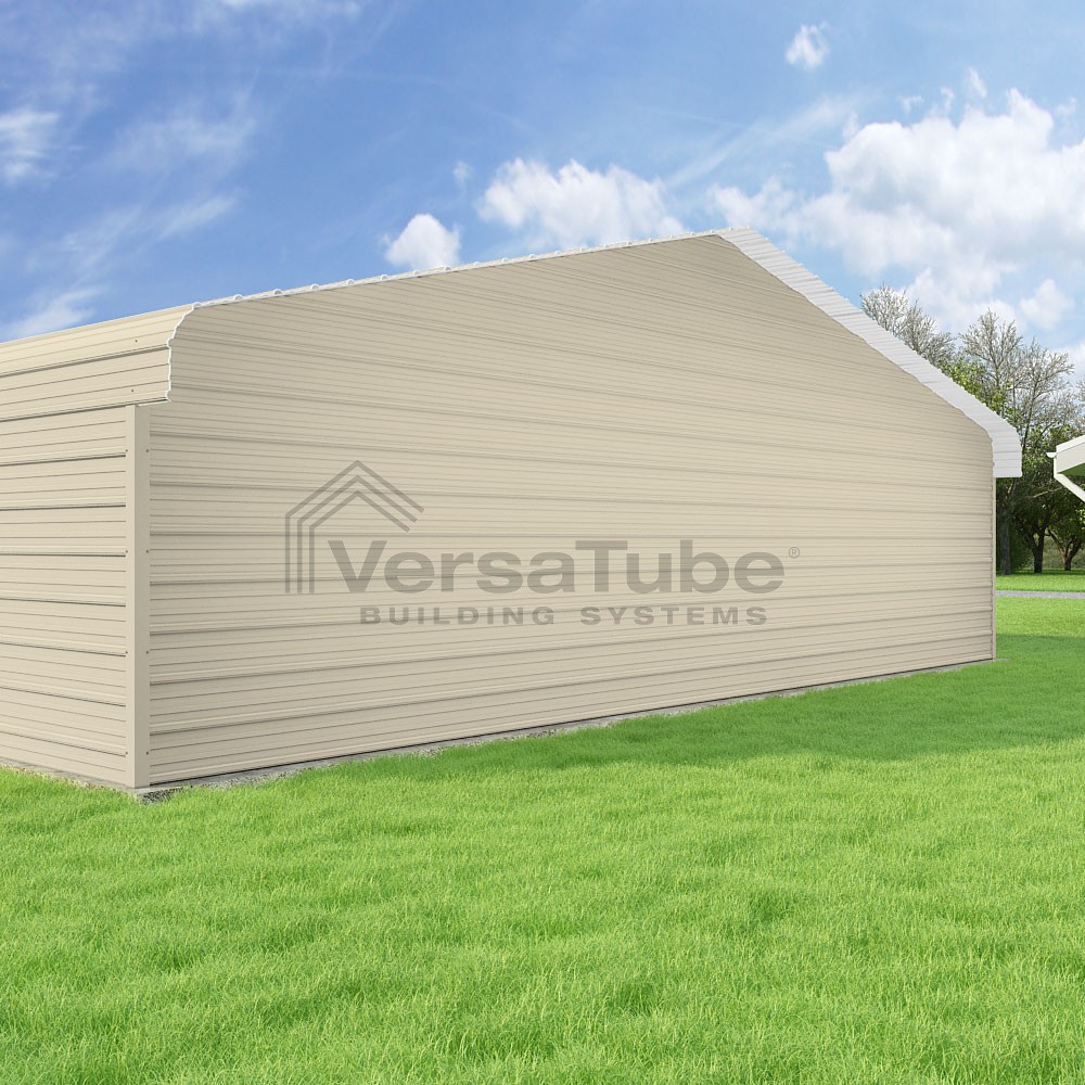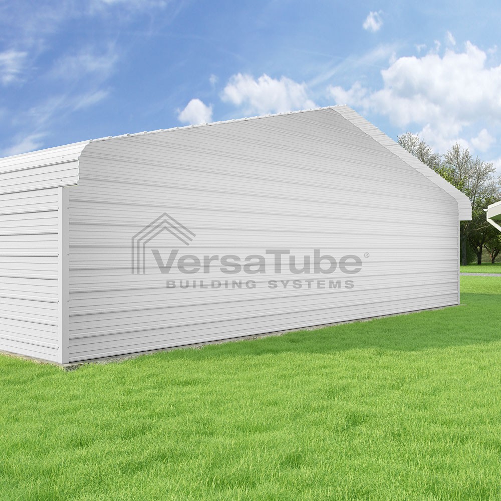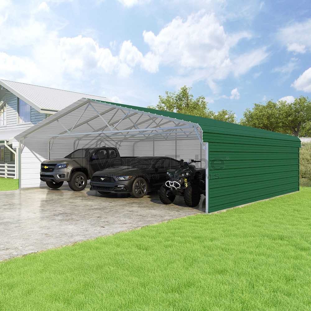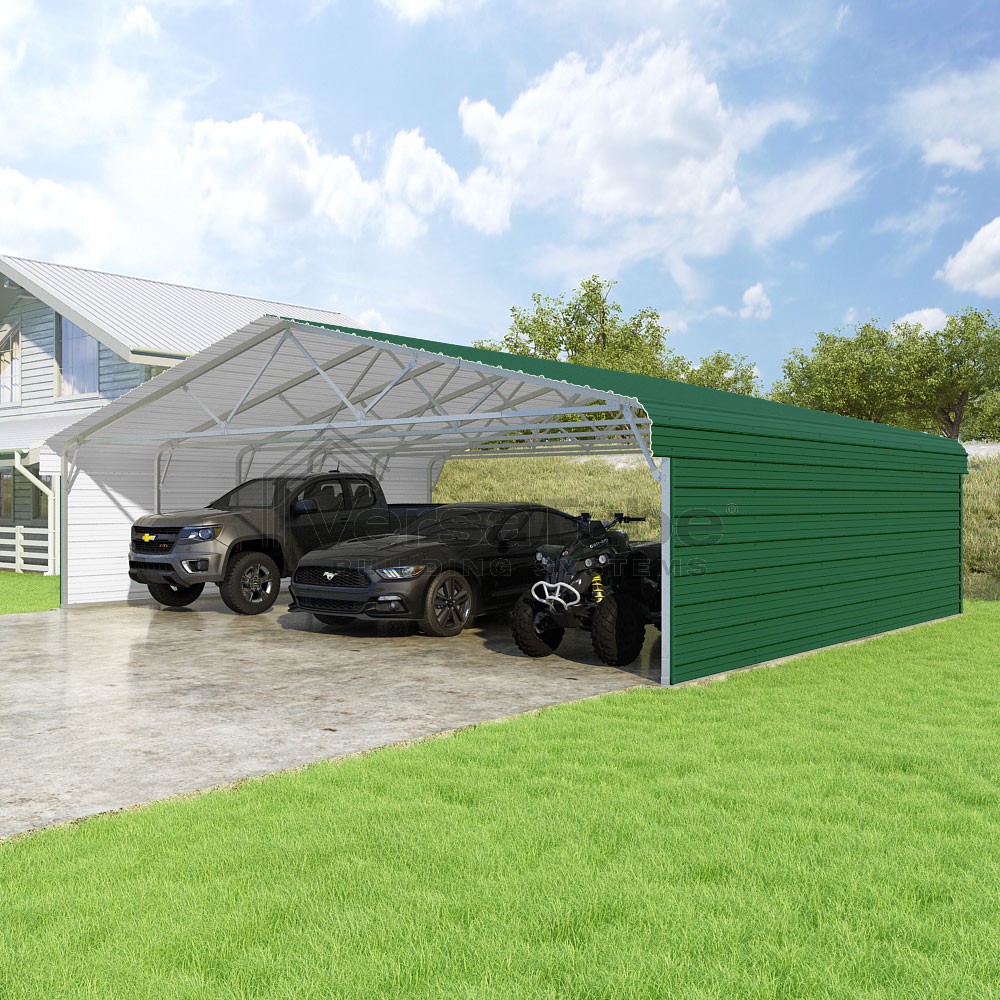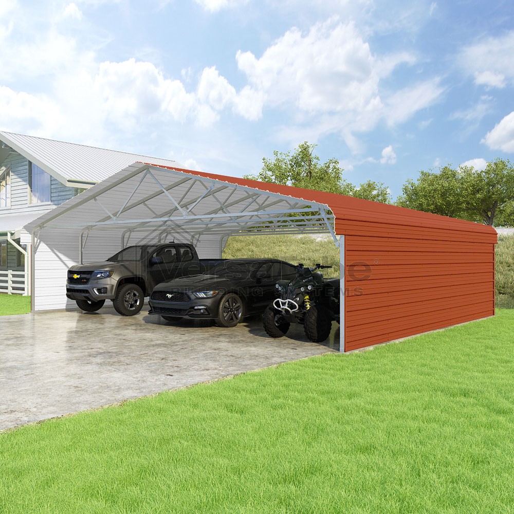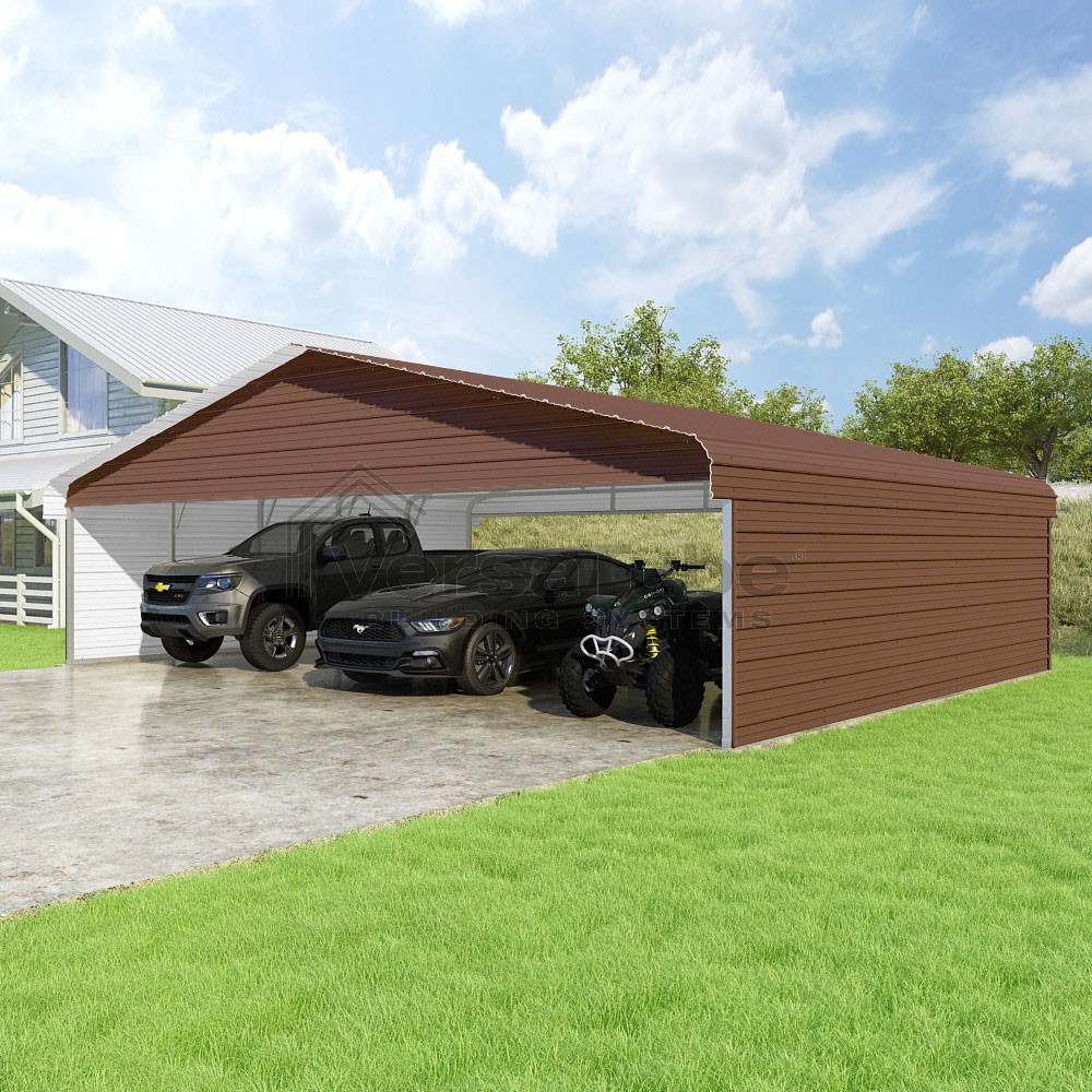 Classic Series DIY carport kit features horizontal application of sheet metal panels with the extra protection of rounded eaves.