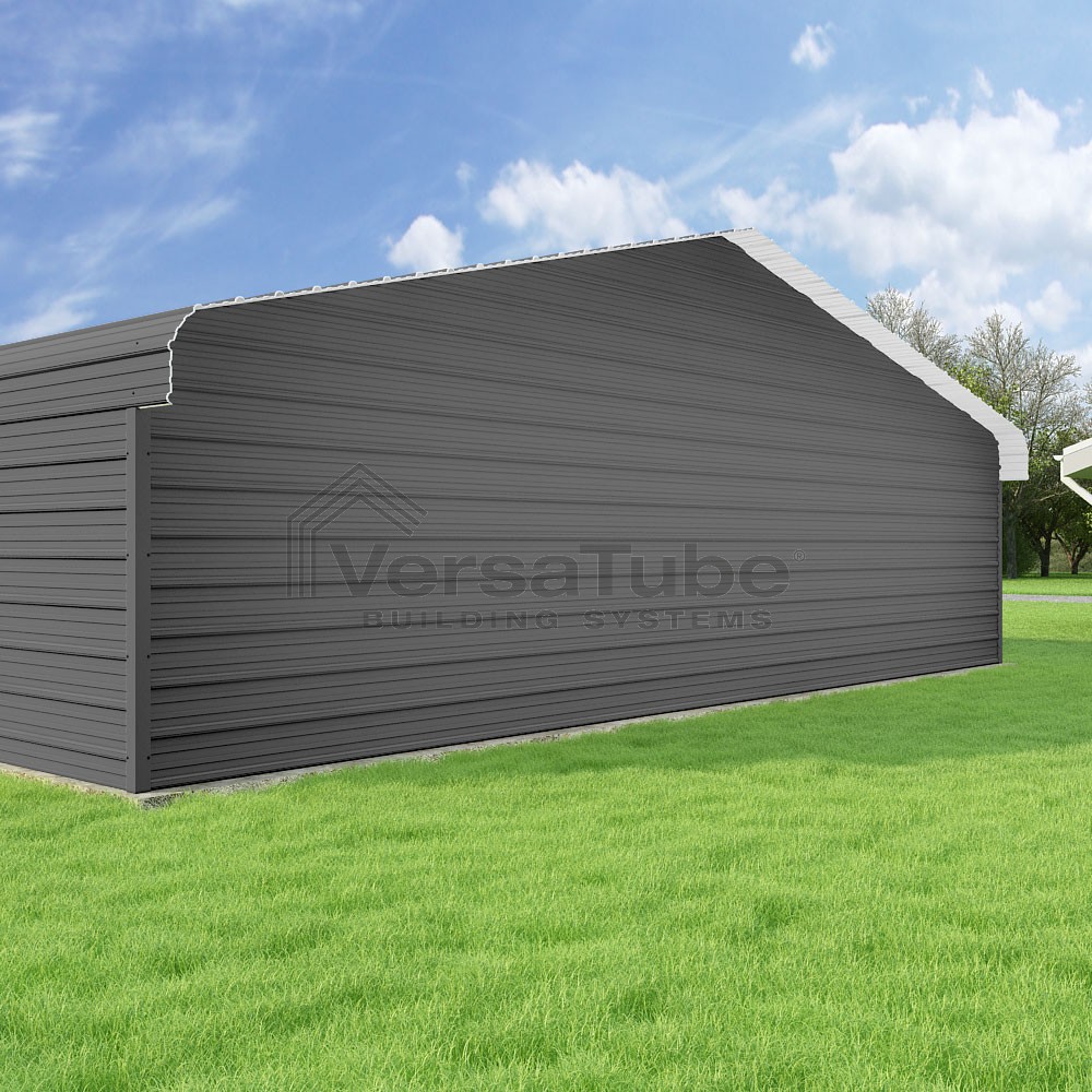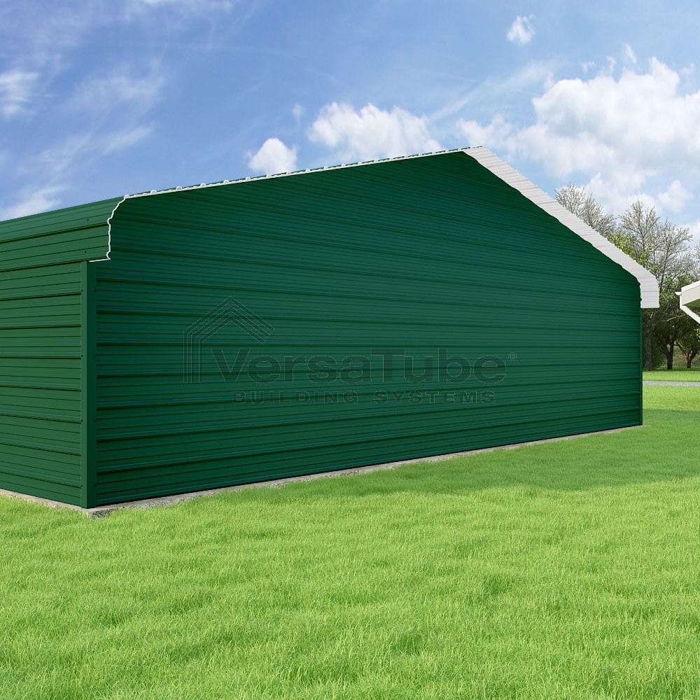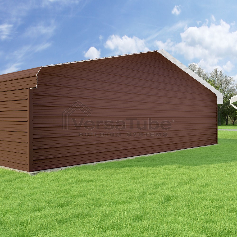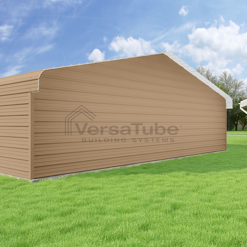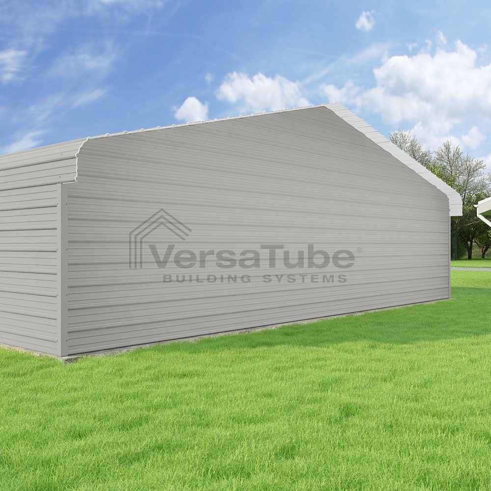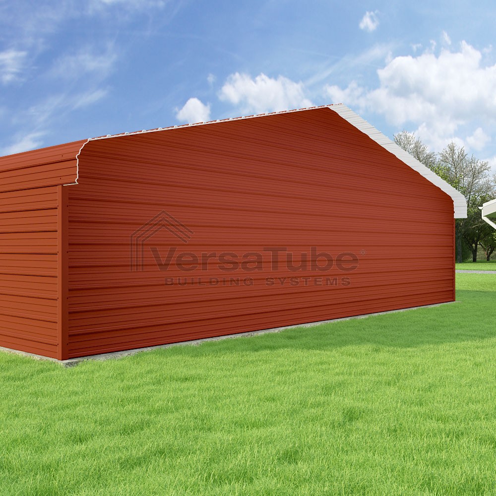 Classic Series DIY carport kit features horizontal application of sheet metal panels with the extra protection of rounded eaves.