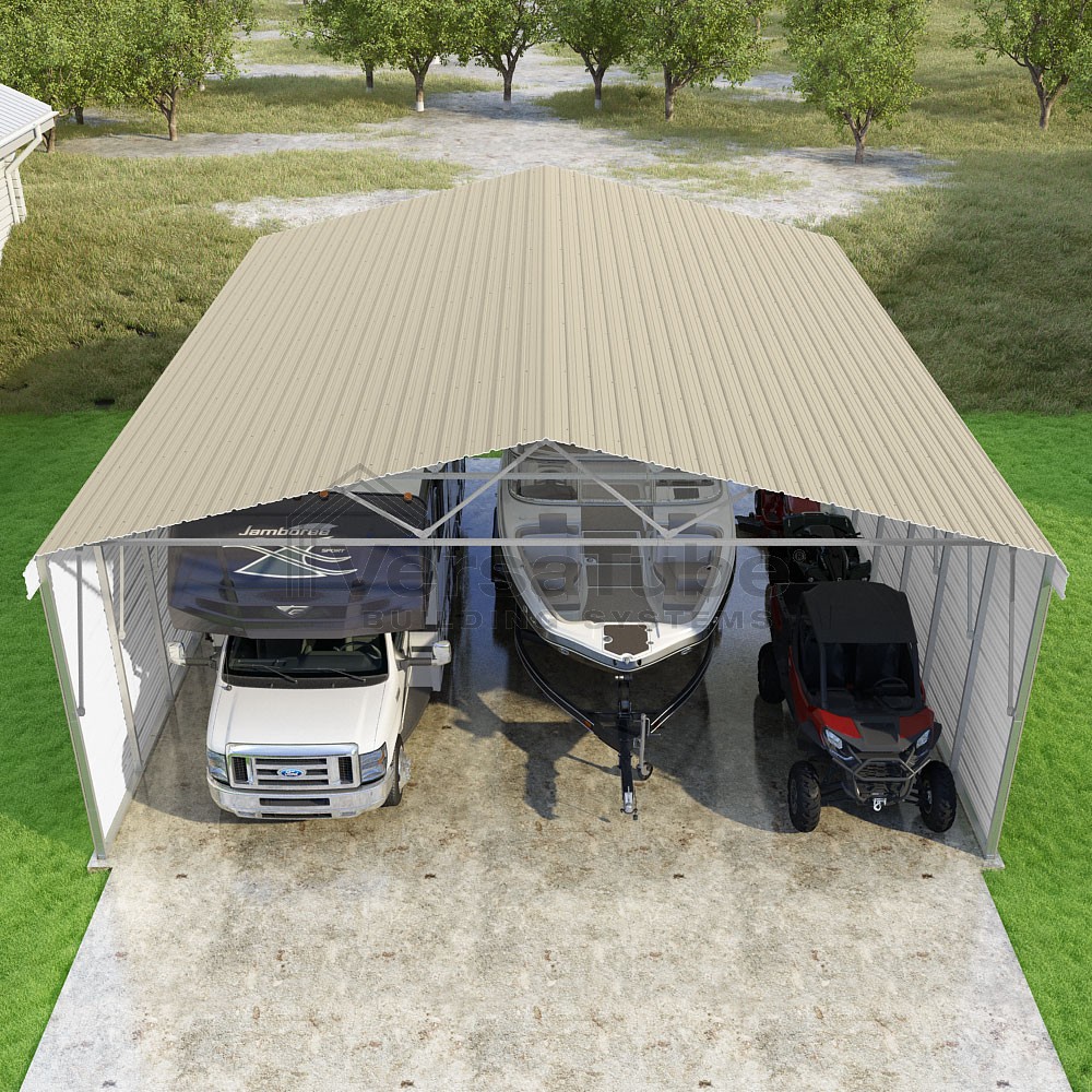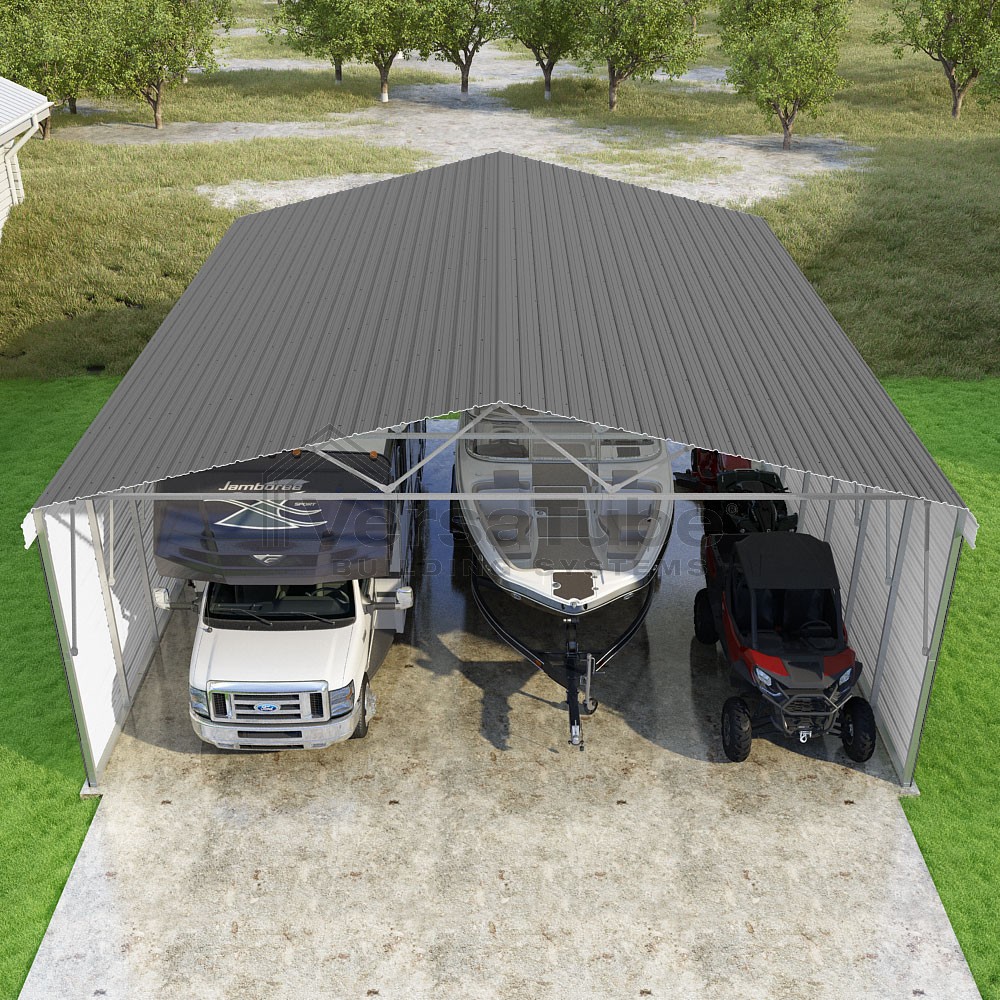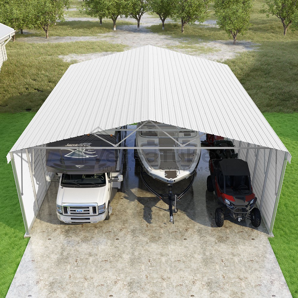 "I was very impressed with the installation instructions and quality of the material. My son-in -law and myself completed this installation in 2 days. I just purchased a new RV and I like that I don’t have to worry about sun rot or weather damage . This building was a 30’X30’ with a back wall. Going to enjoy it for years to come.