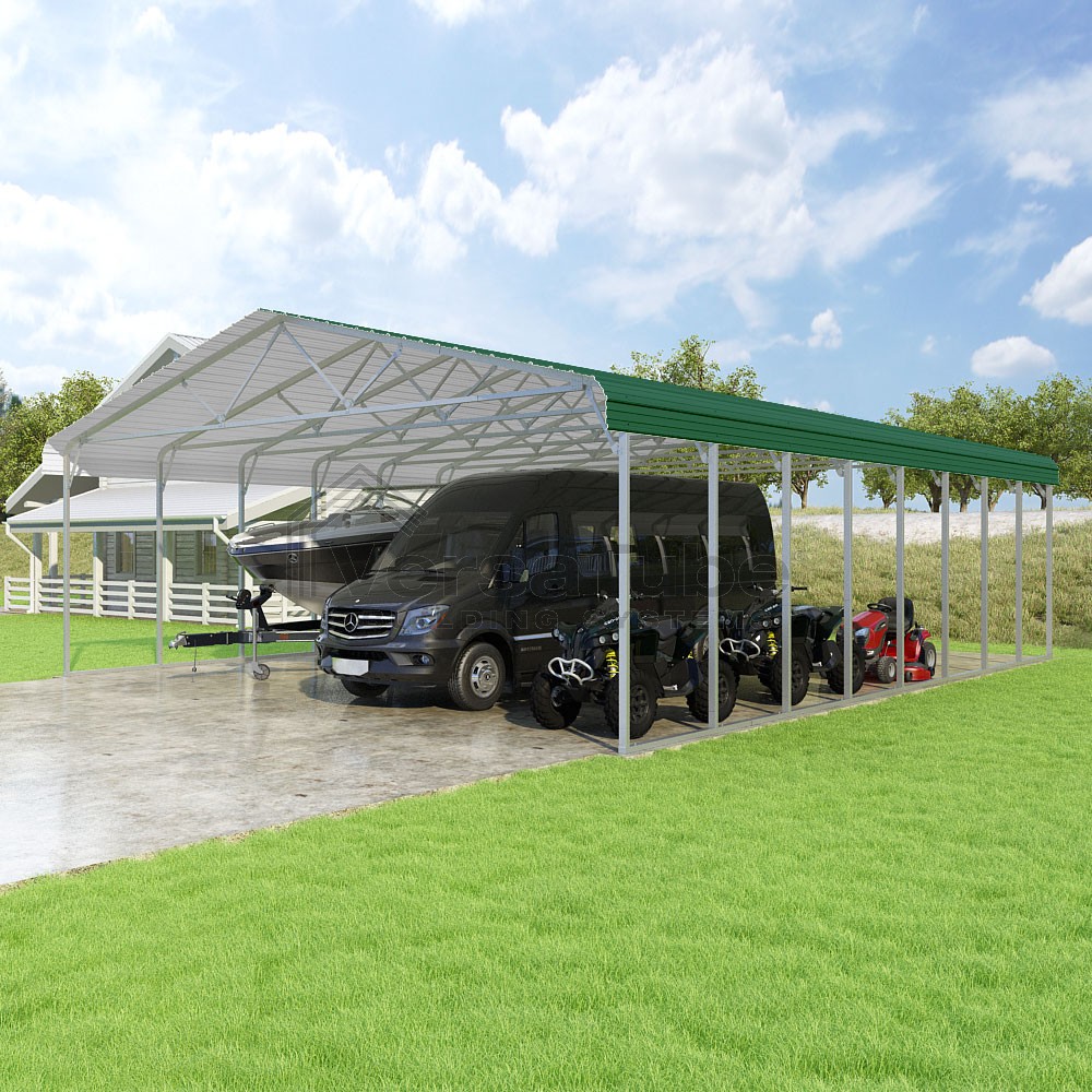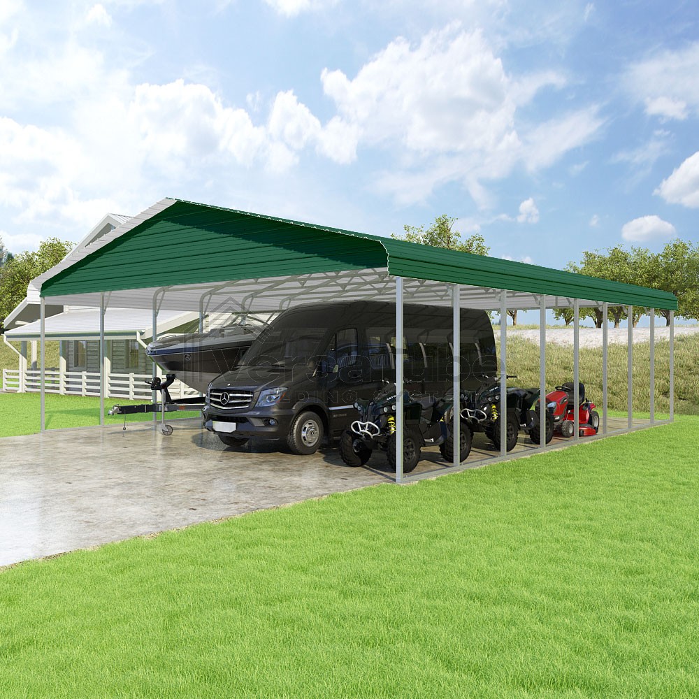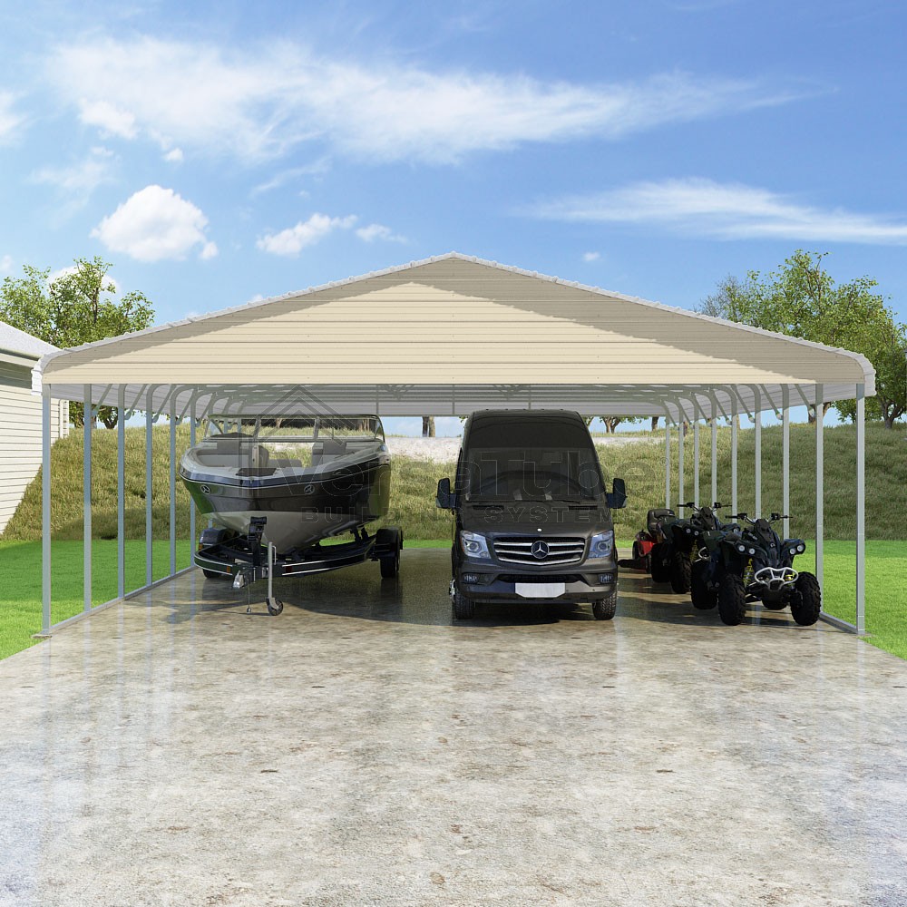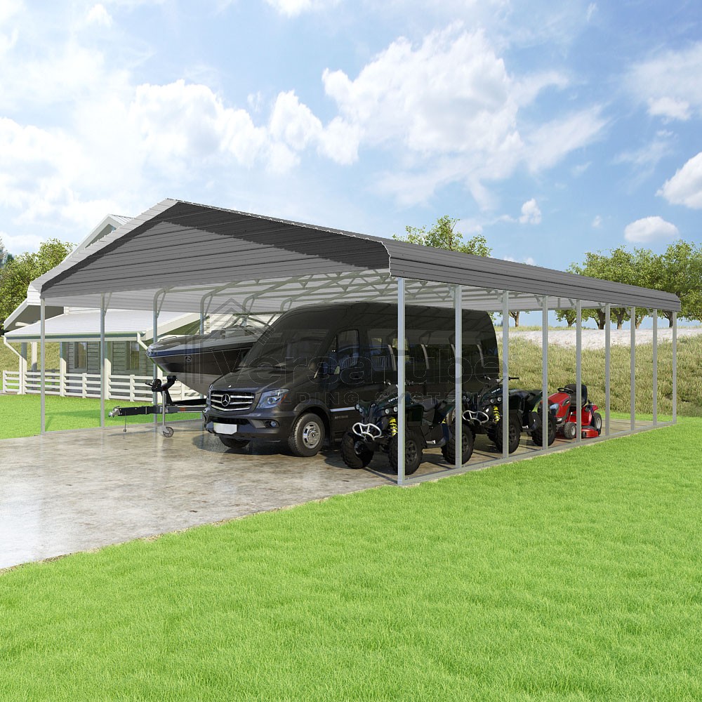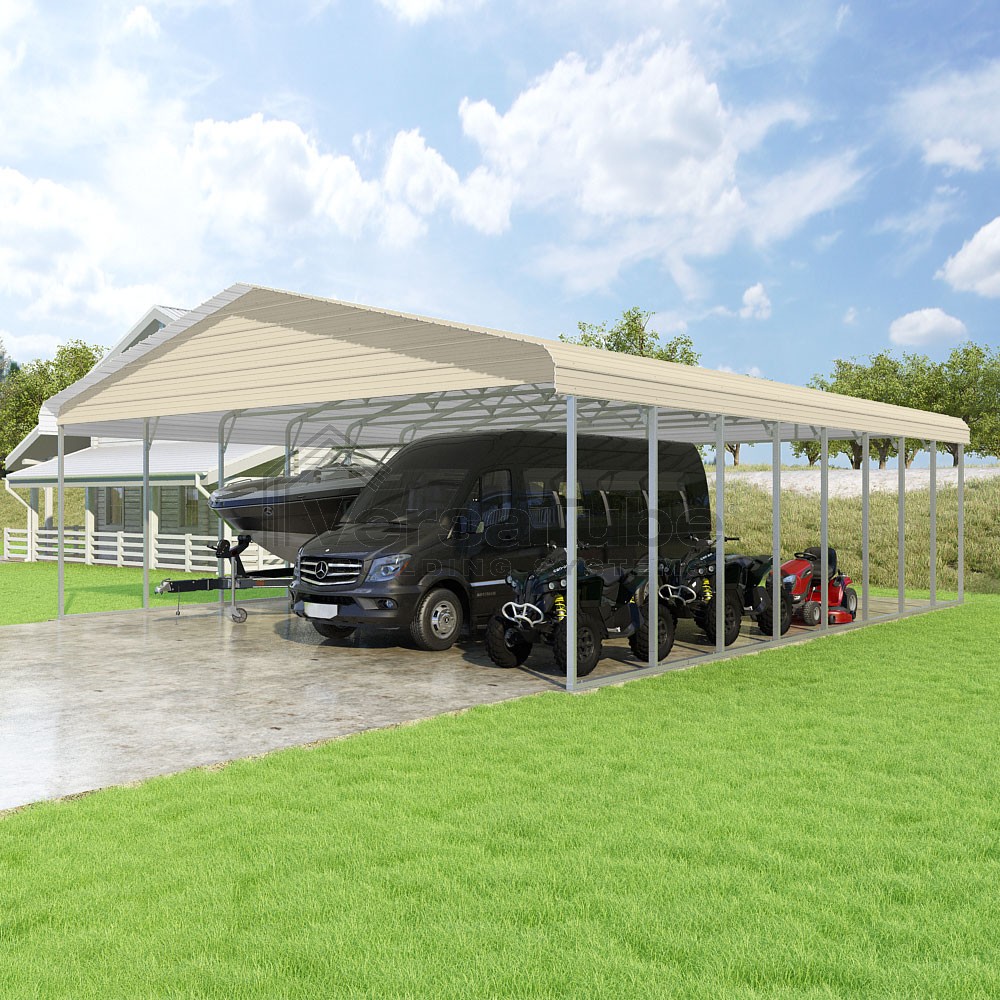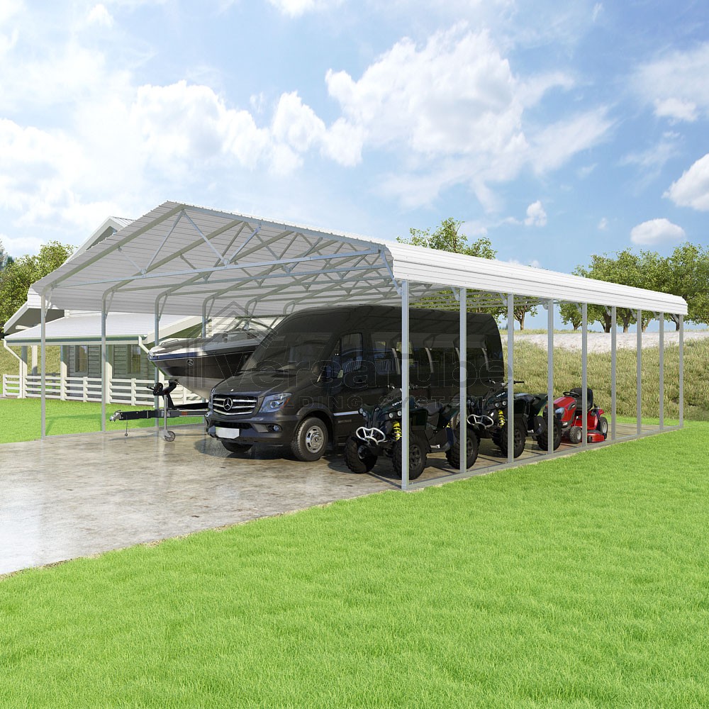 Classic Series DIY carport kit features horizontal application of sheet metal panels with the extra protection of rounded eaves.