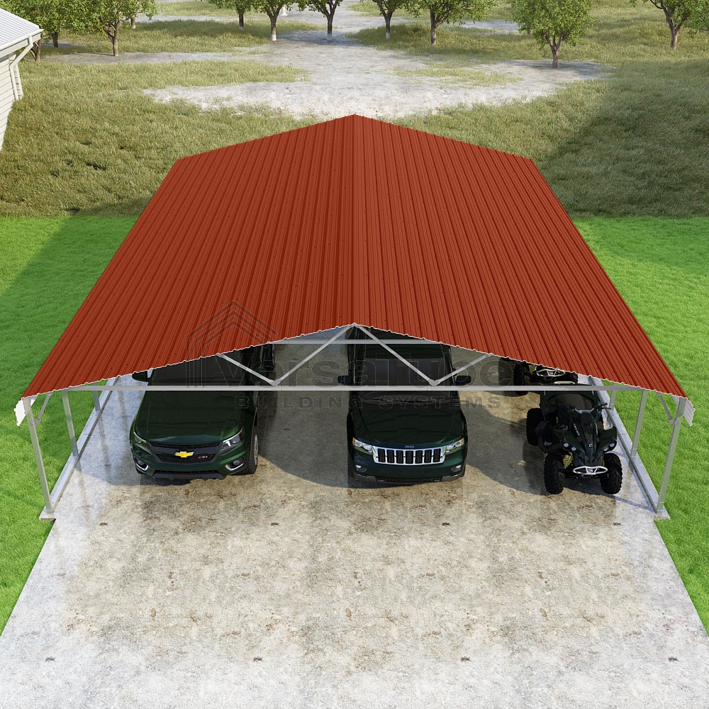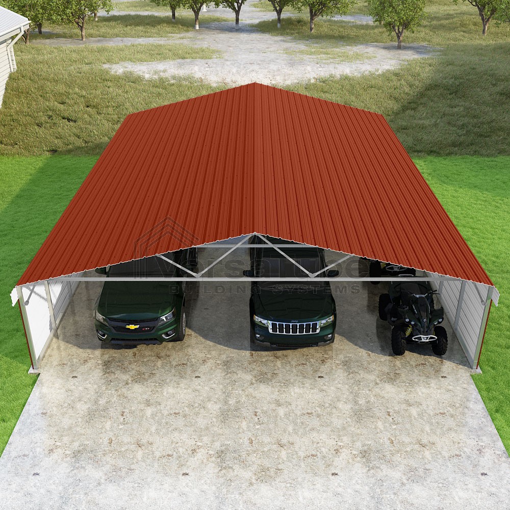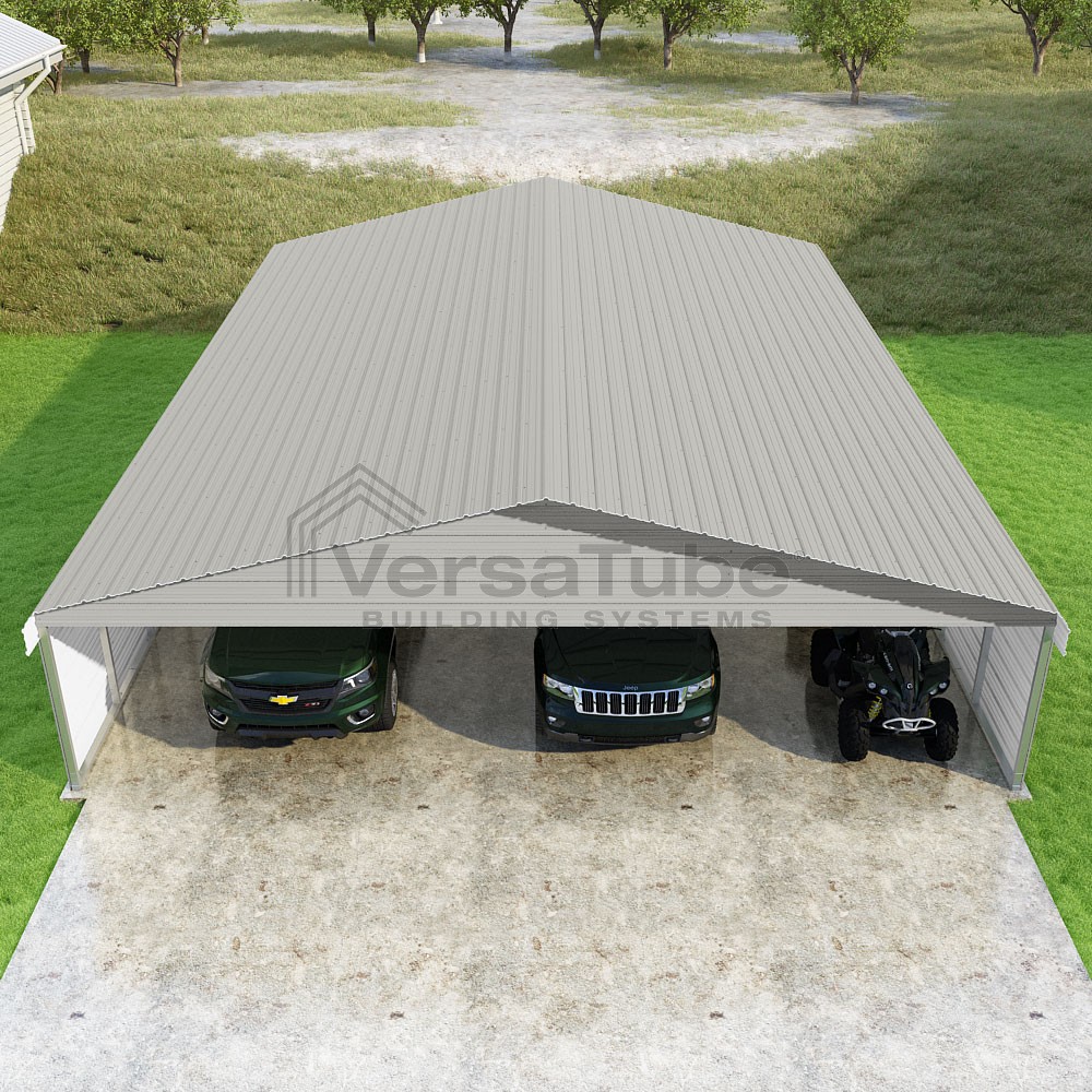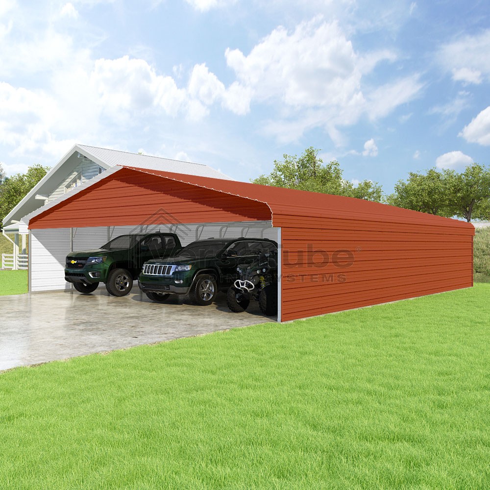 Classic Series DIY carport kit features horizontal application of sheet metal panels with the extra protection of rounded eaves.