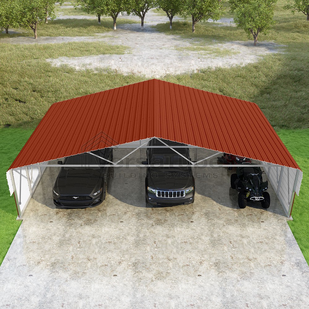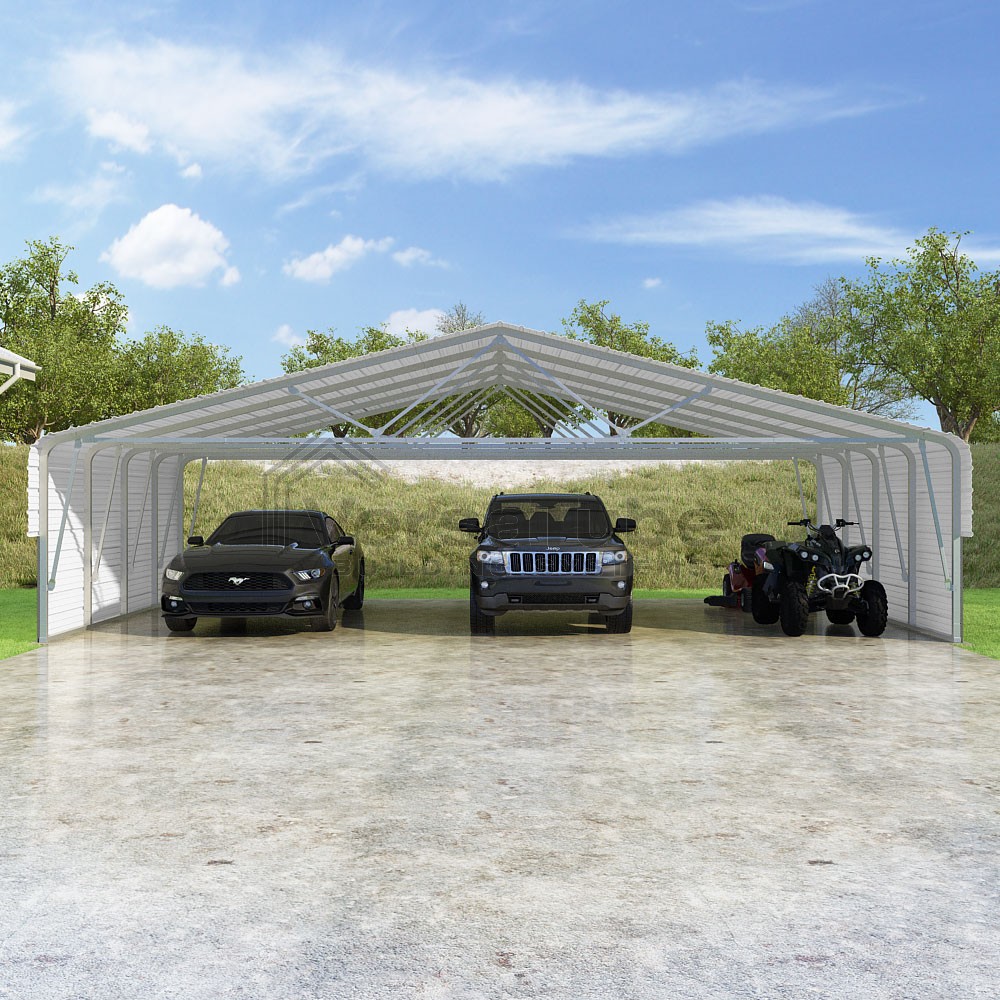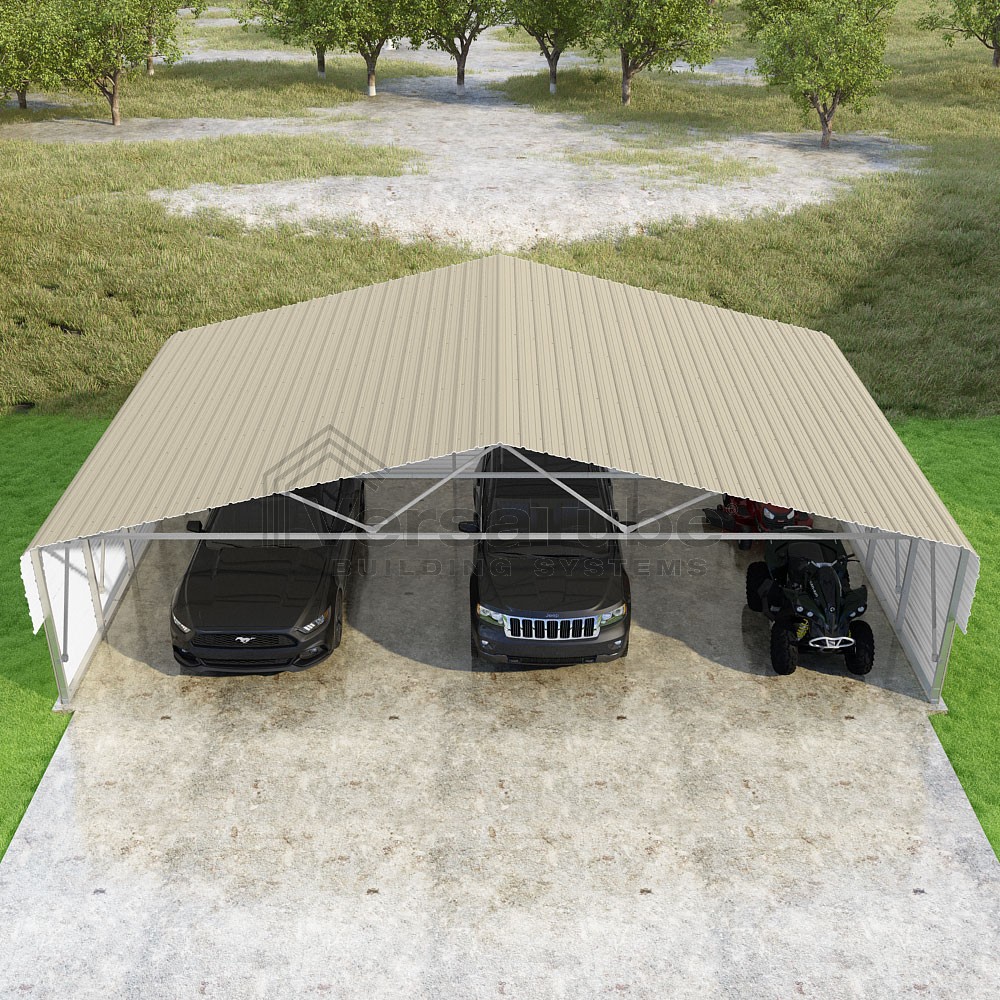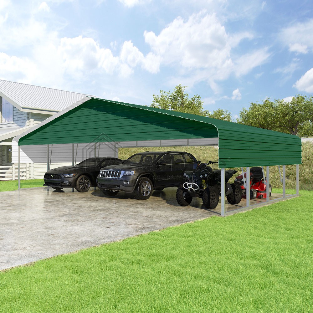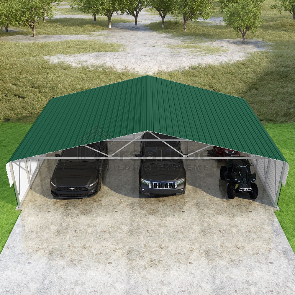 Classic Series DIY carport kit features horizontal application of sheet metal panels with the extra protection of rounded eaves.