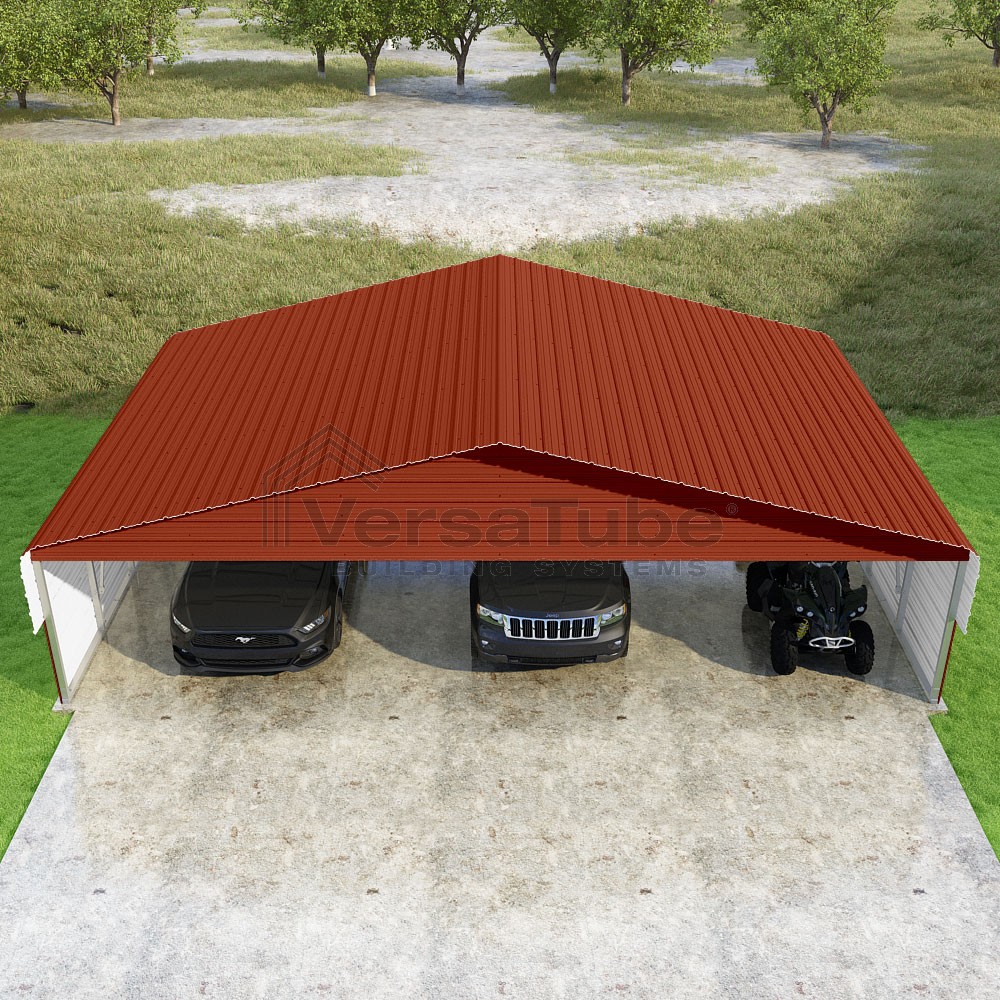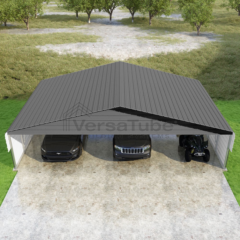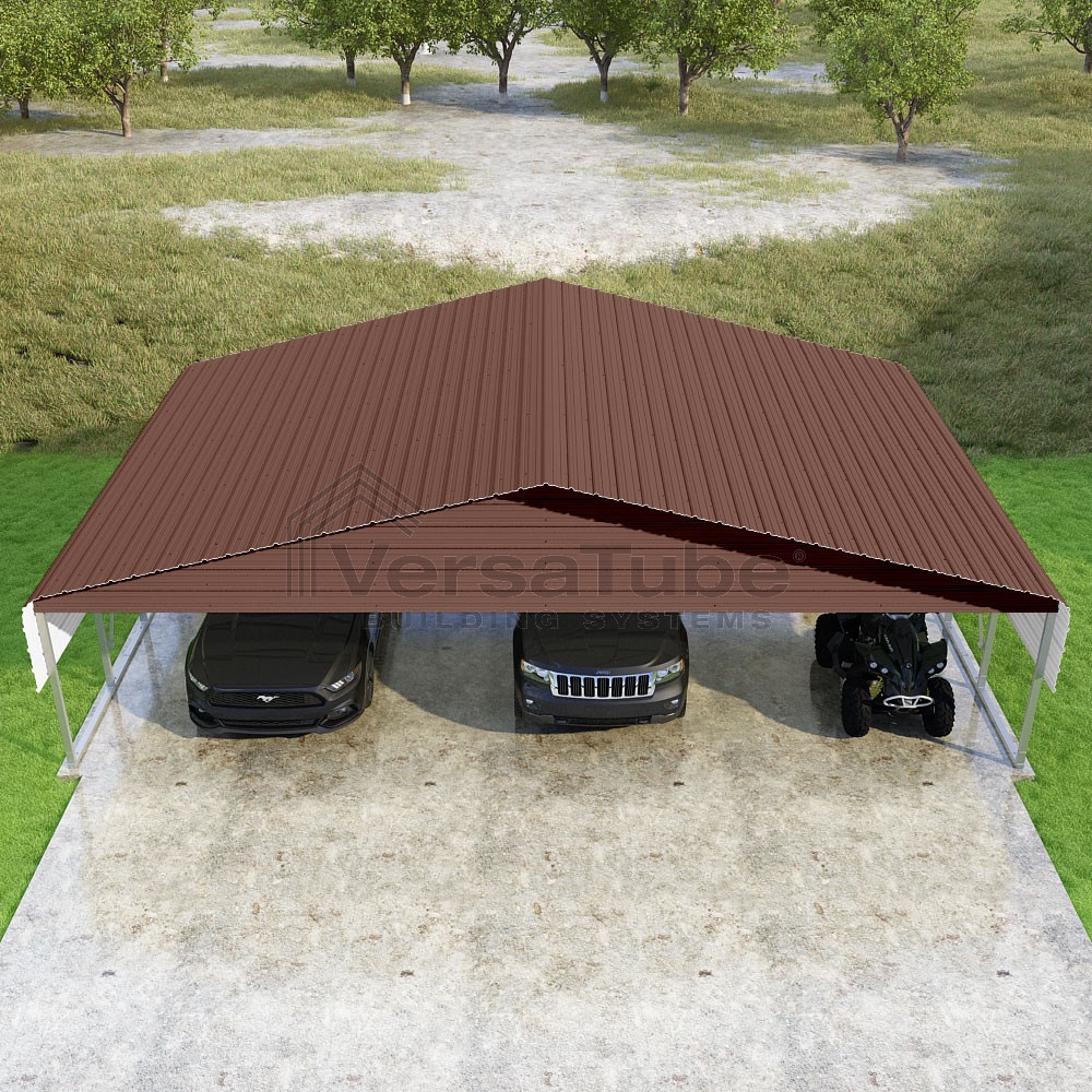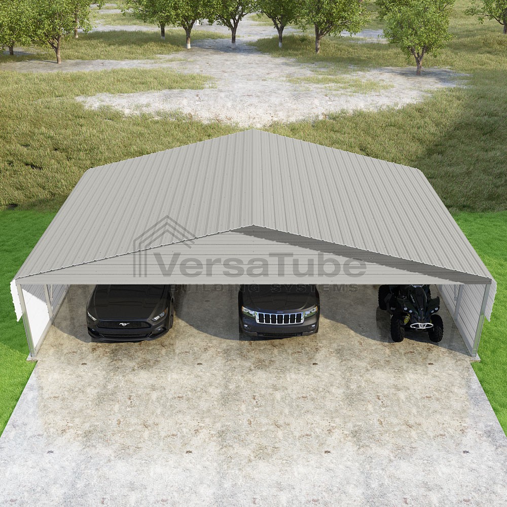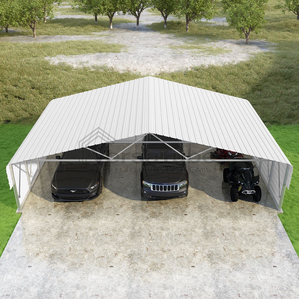 Classic Series DIY carport kit features horizontal application of sheet metal panels with the extra protection of rounded eaves.